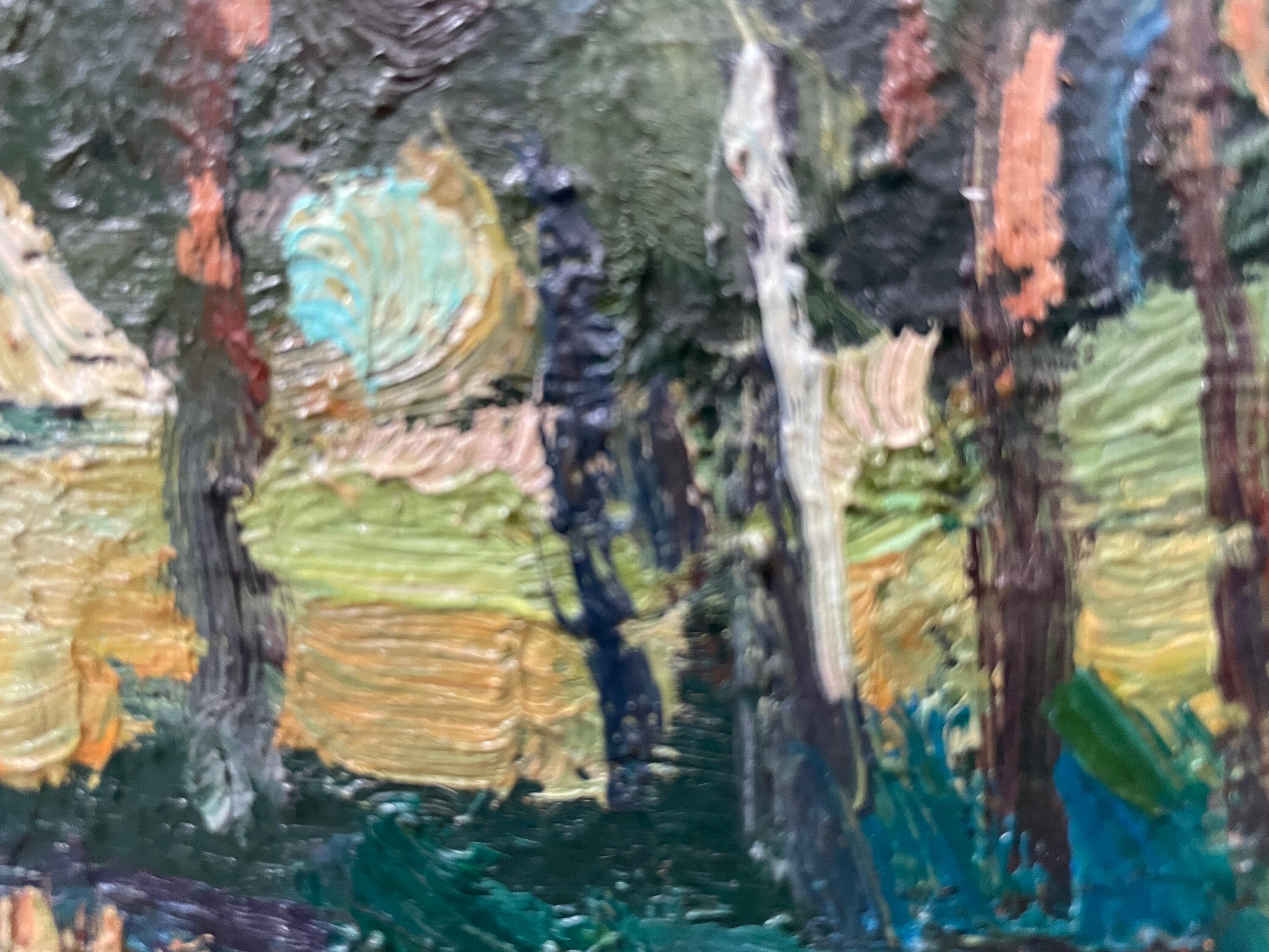House in the Forest Landscape, Impressionismus, Original-Ölgemälde, fertig zum Hängen