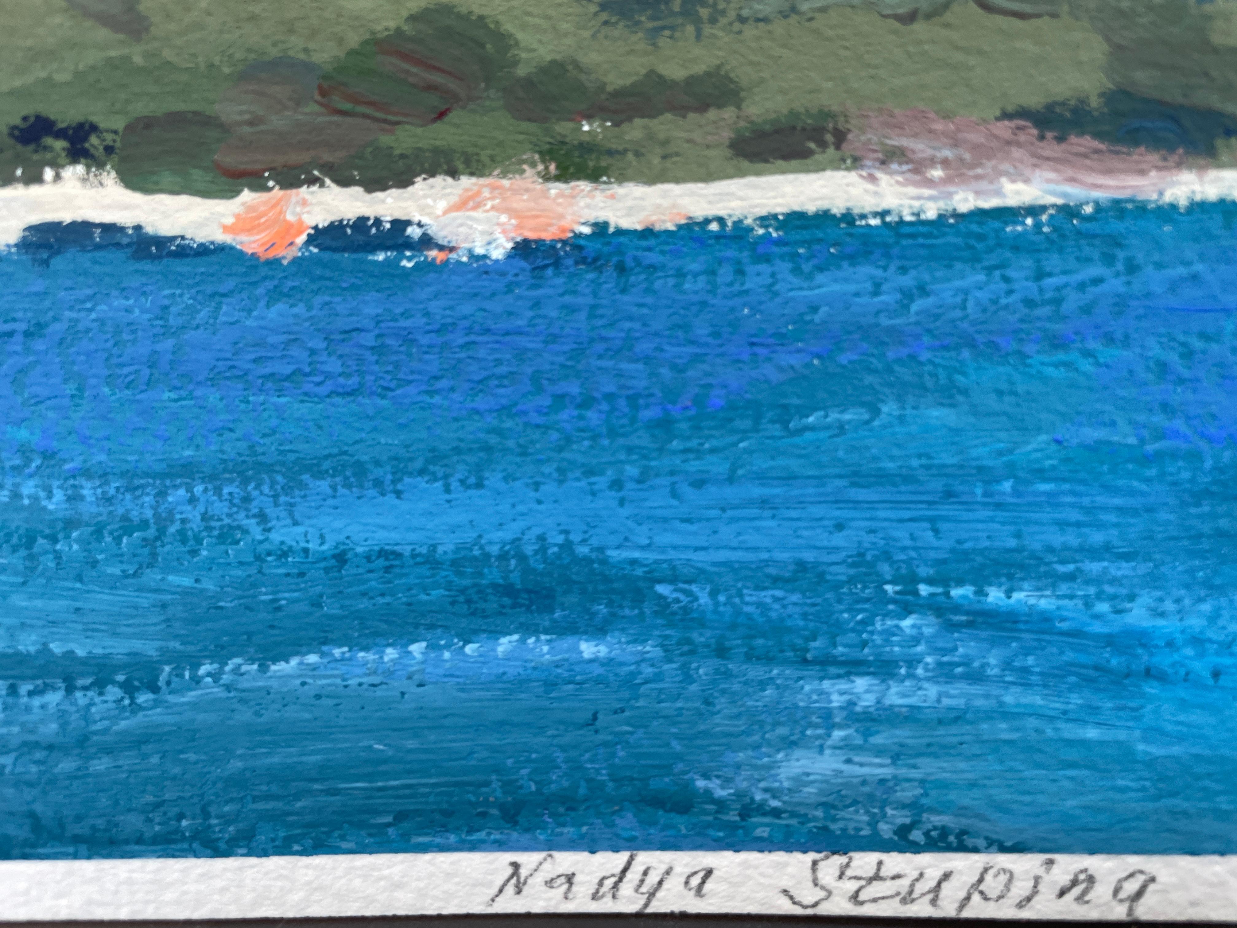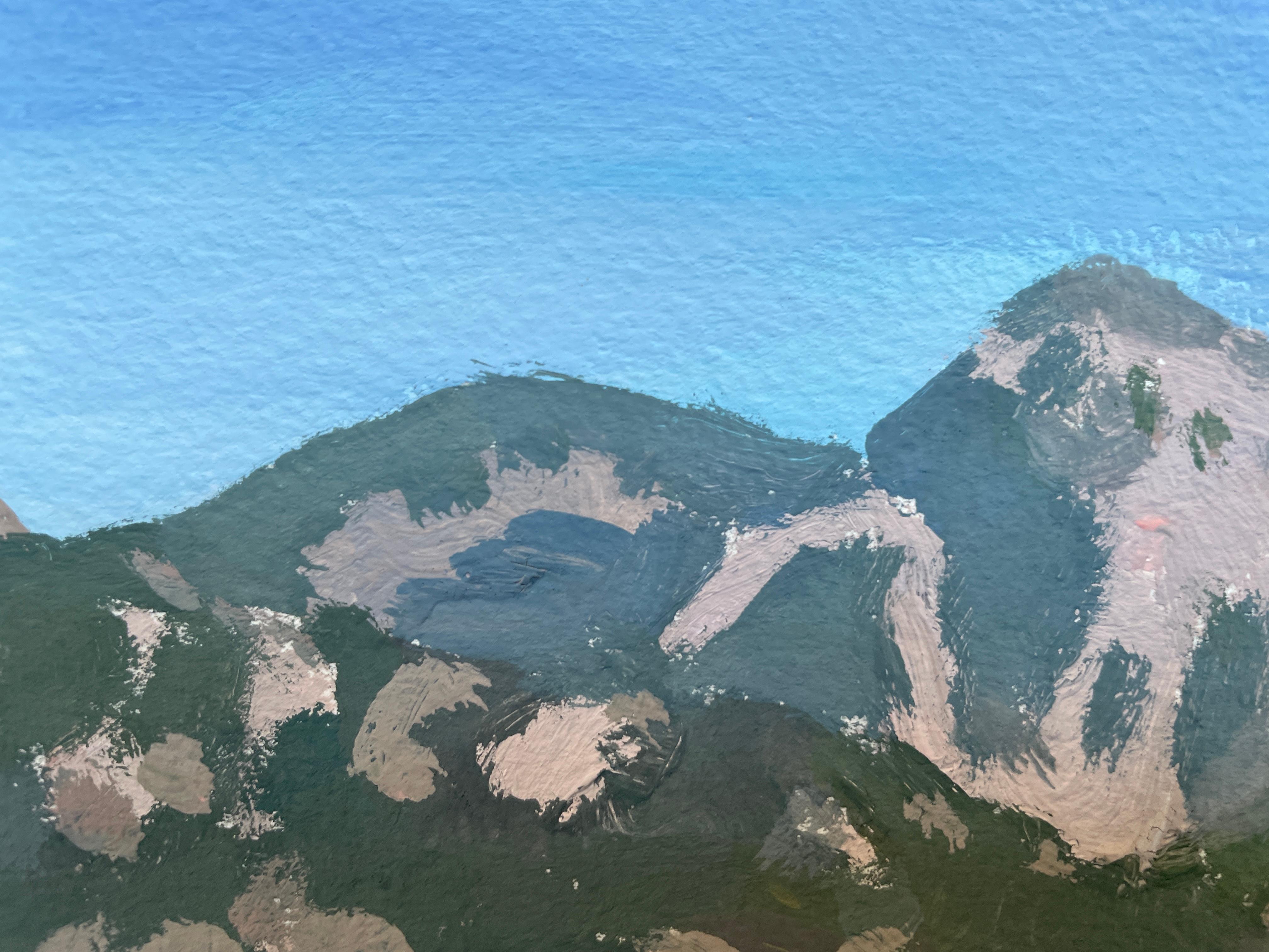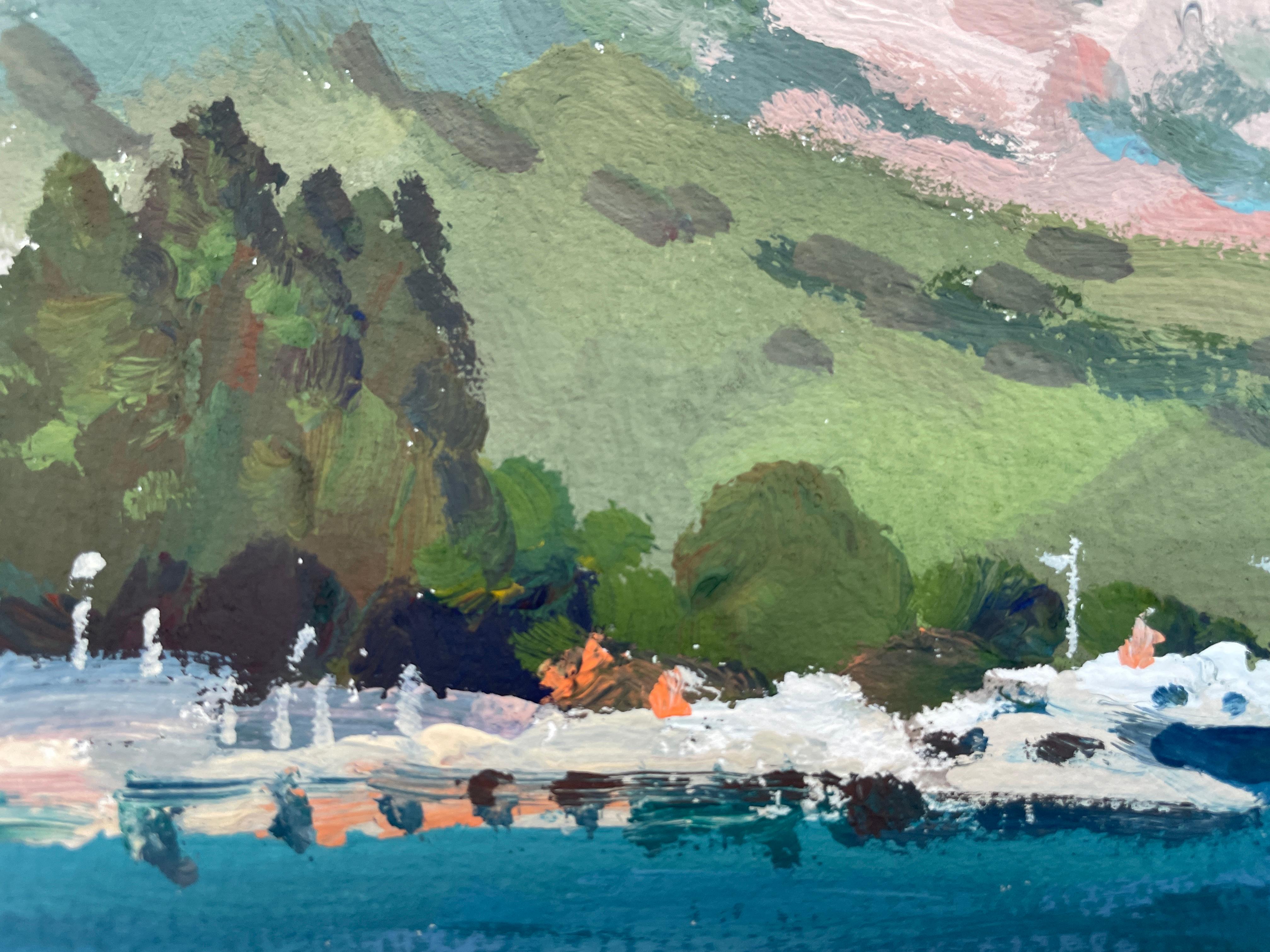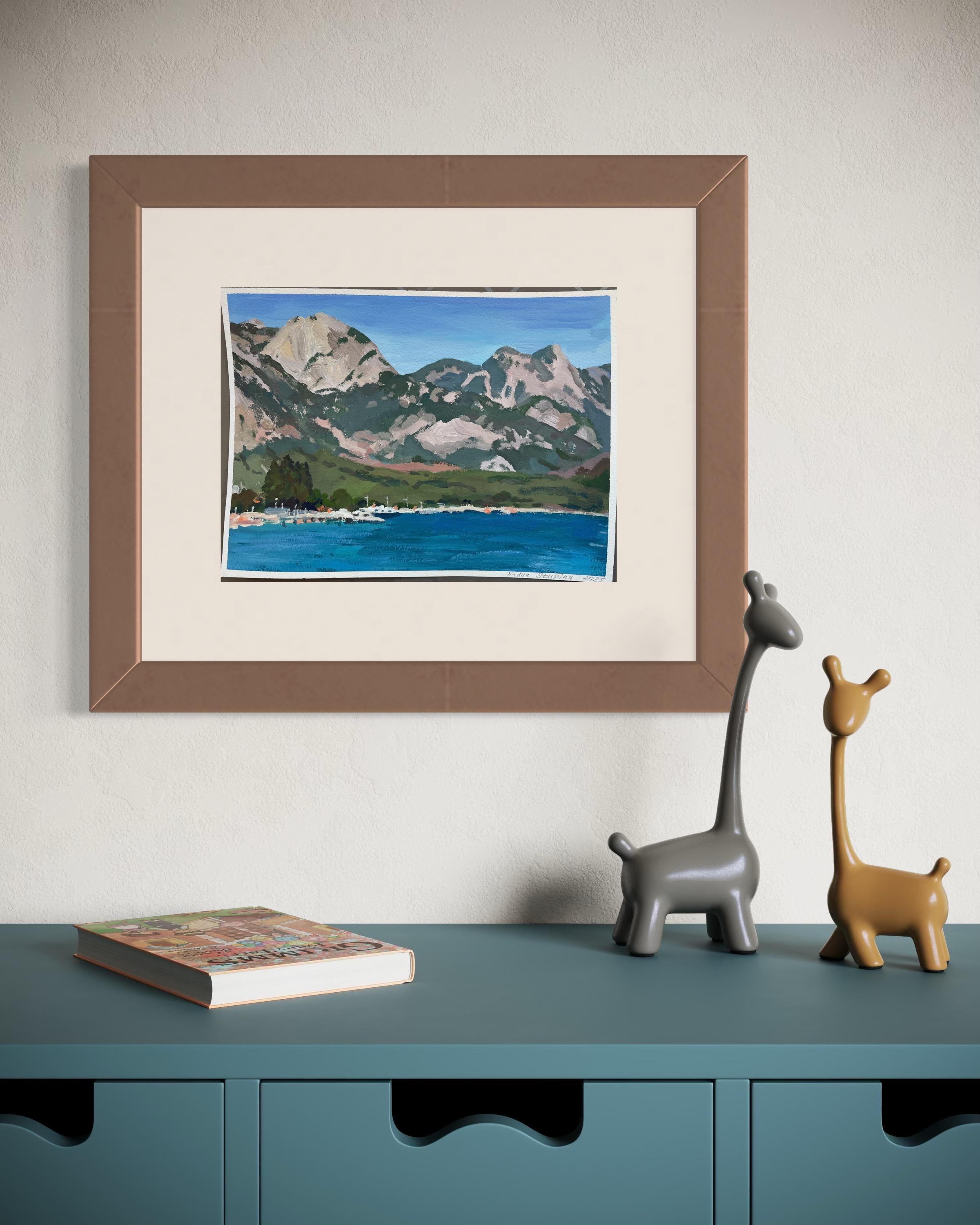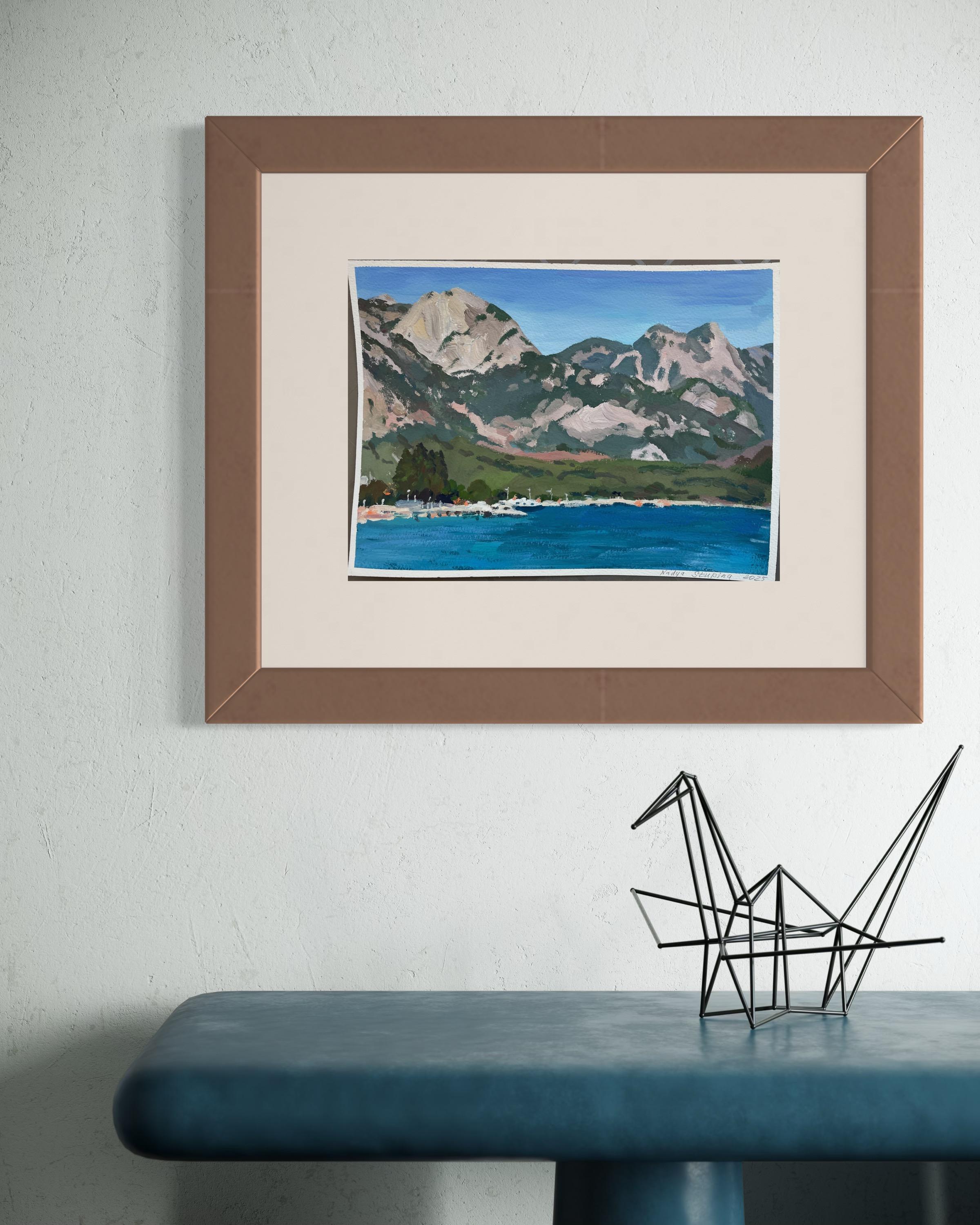 Nadezda Stupina"Das Meer am Fuße der rosa Berge" Original Landschaftsgemälde, klein .2025