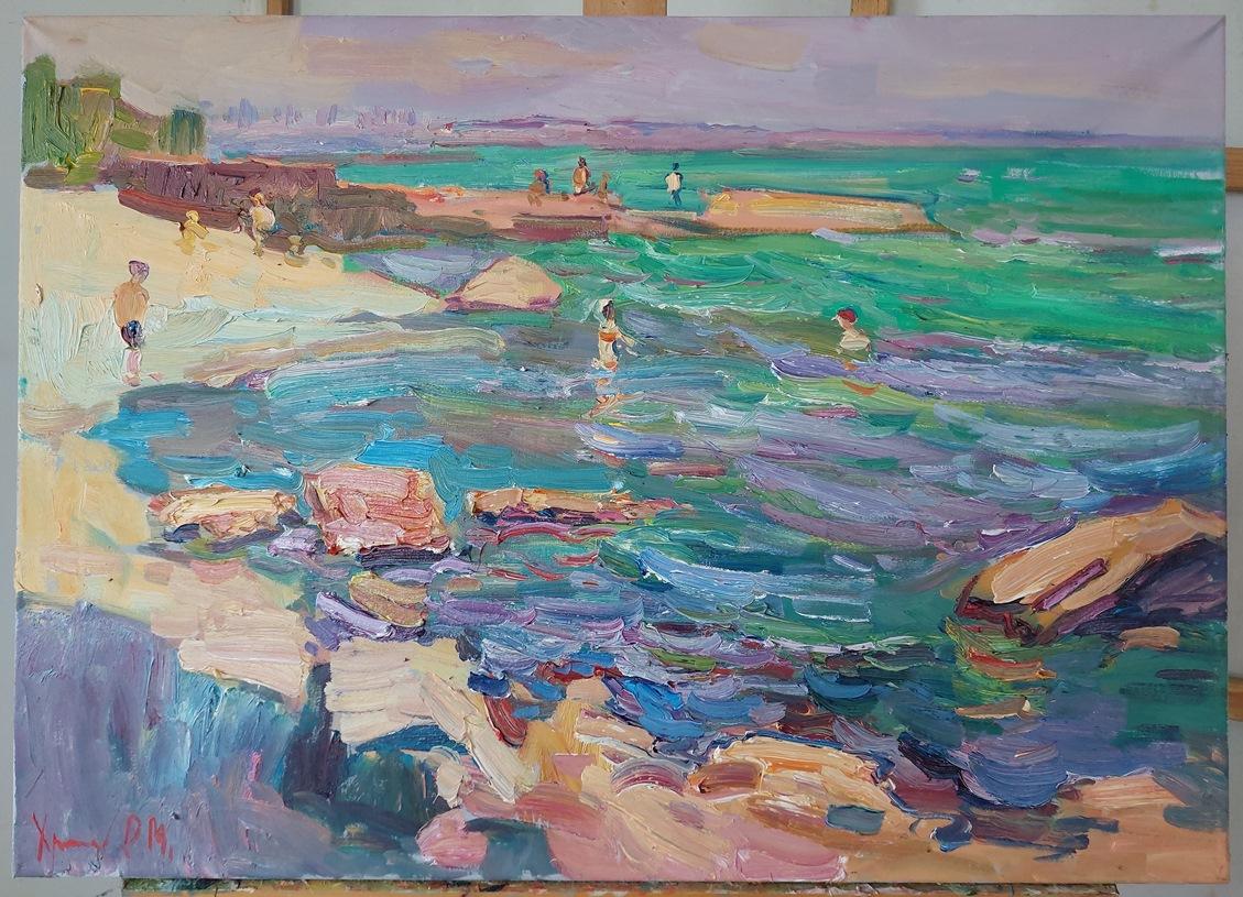 Original Ölgemälde des ukrainischen Künstlers Evgeny Chernyakovsky "Am Meeresufer" 70,0 X 90,0 CM / 27,5 X 35,4 IN HIGH QUALITY Öl auf Leinwand Signiert auf der Vorder- und Rüc...