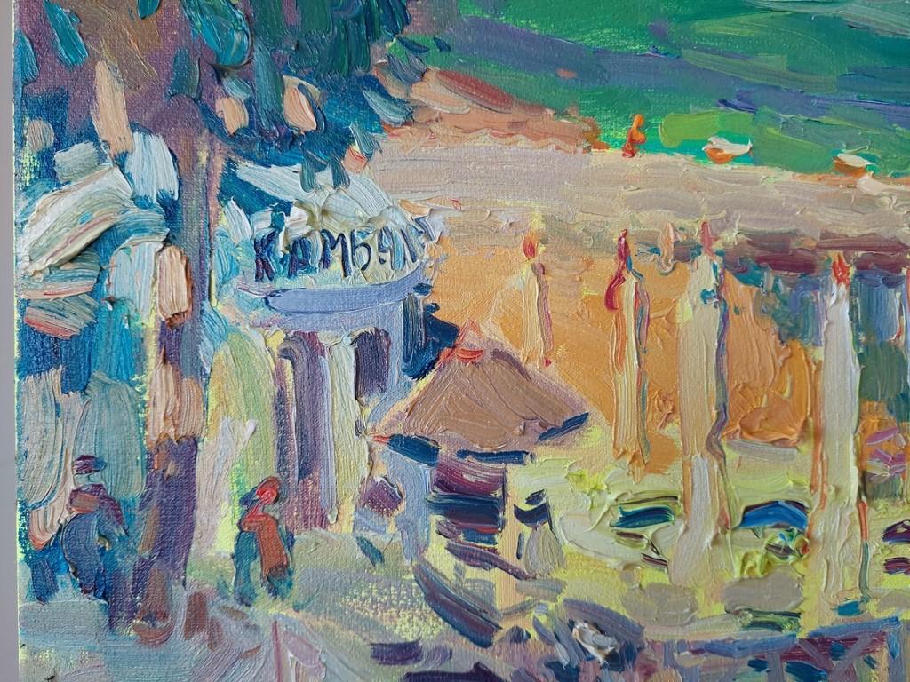 Die Authentizität des Augenblicks. Das Werk entstand während einer Pleinair-Session im Jahr 2025 und bewahrt die lebendige Energie des Ortes. Es handelt sich nicht um eine Rekonstruktion des Studios, sondern um einen echten Dialog zwischen dem Künstler und dem Meer, der Sonne und der Atmosphäre des legendären Odessa. Für diejenigen, die Odessa lieben, ist dieses Bild voller Erinnerungen. Für diejenigen, die von einem Besuch träumen, ist es eine Einladung zum Reisen. Für alle anderen ist es ein Fenster in eine Welt, in der es immer Sommer ist, immer warm, und in der es immer Platz für Freude gibt.