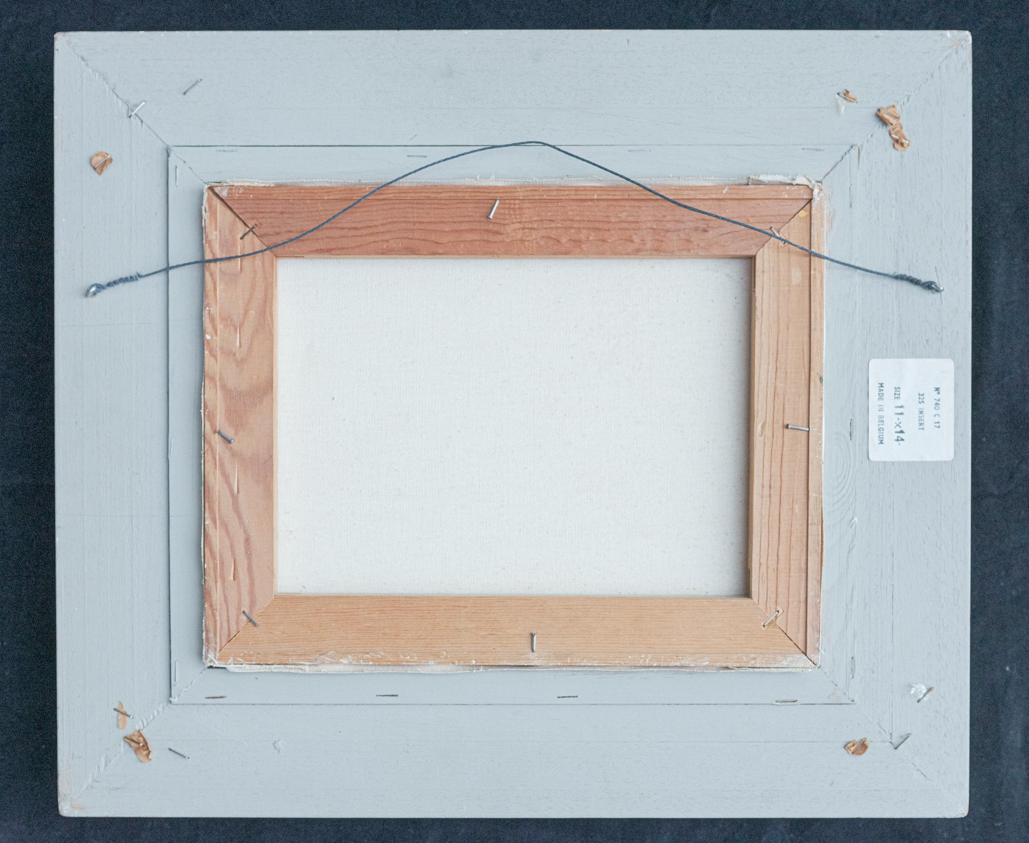 - Zustand:Kleine Verfärbung auf der Leineneinlage des Vintage-Rahmens, unten rechts. Siehe Fotos.