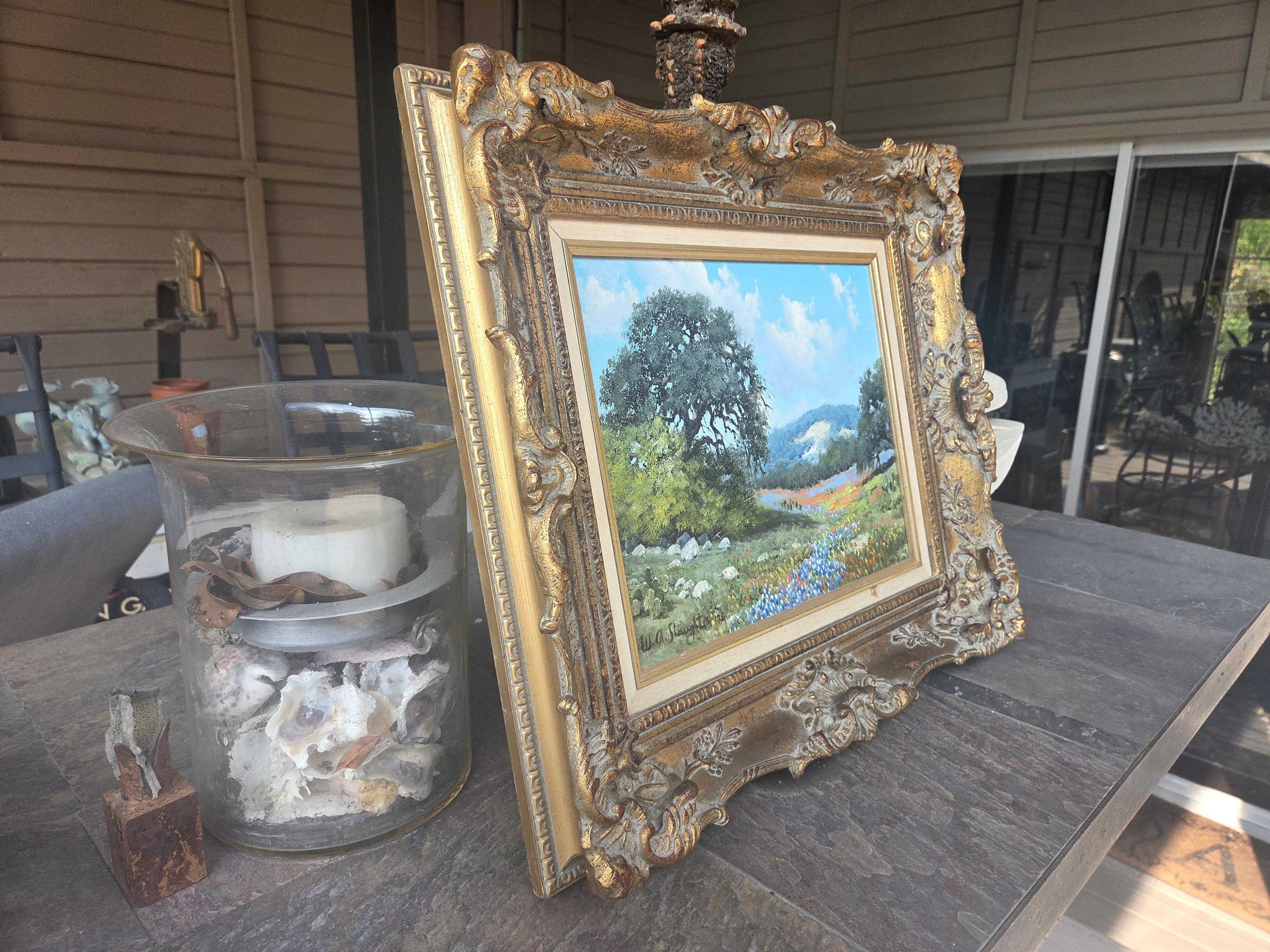 "Texas Pastoral Bluebonnet Scene" Gerahmtes Ölgemälde Frühling Wildblumen Bauernhof