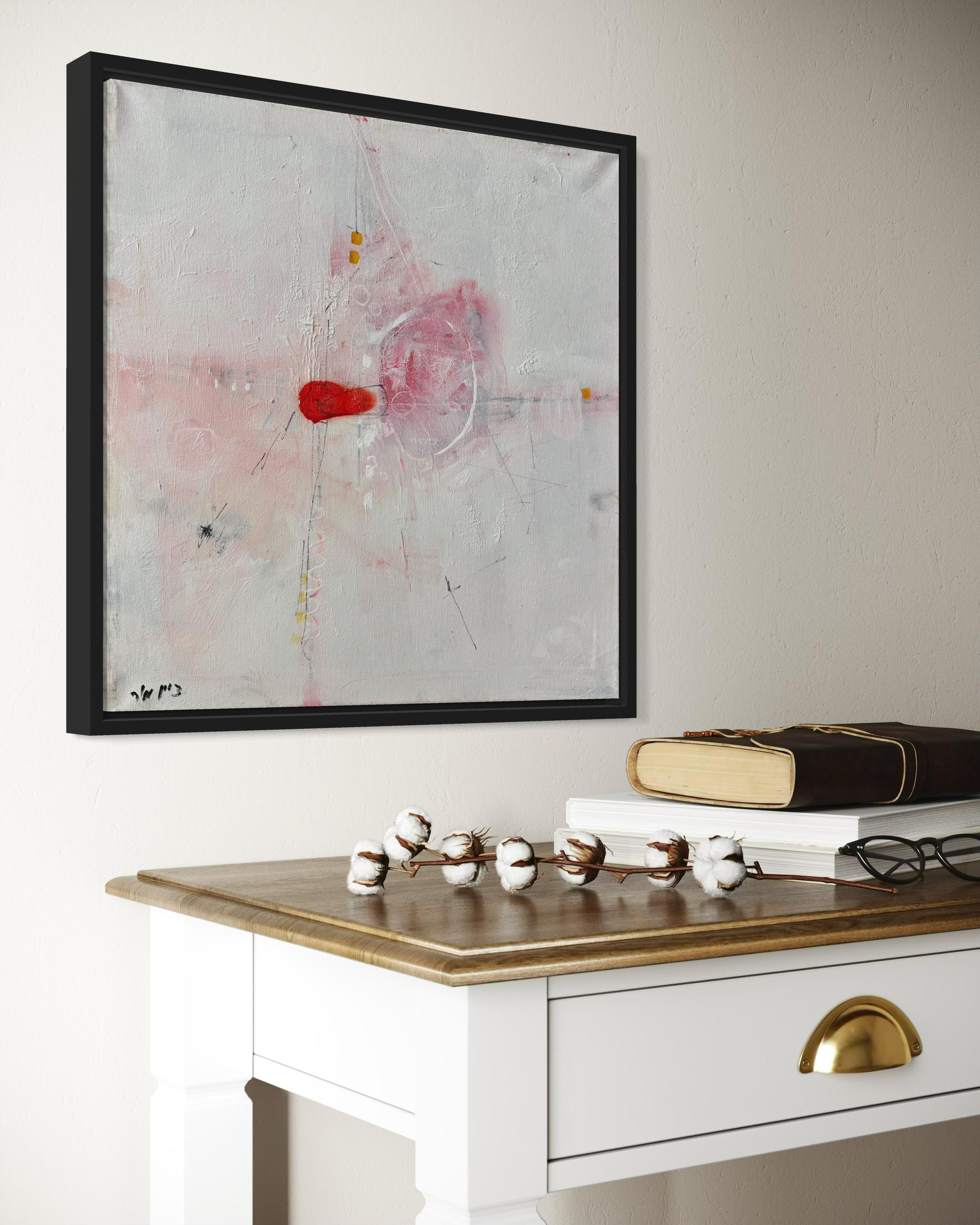 ""Weiß/Rote Eleganz" 1224, Abstraktes Gemälde, 21. Jahrhundert, Acryl