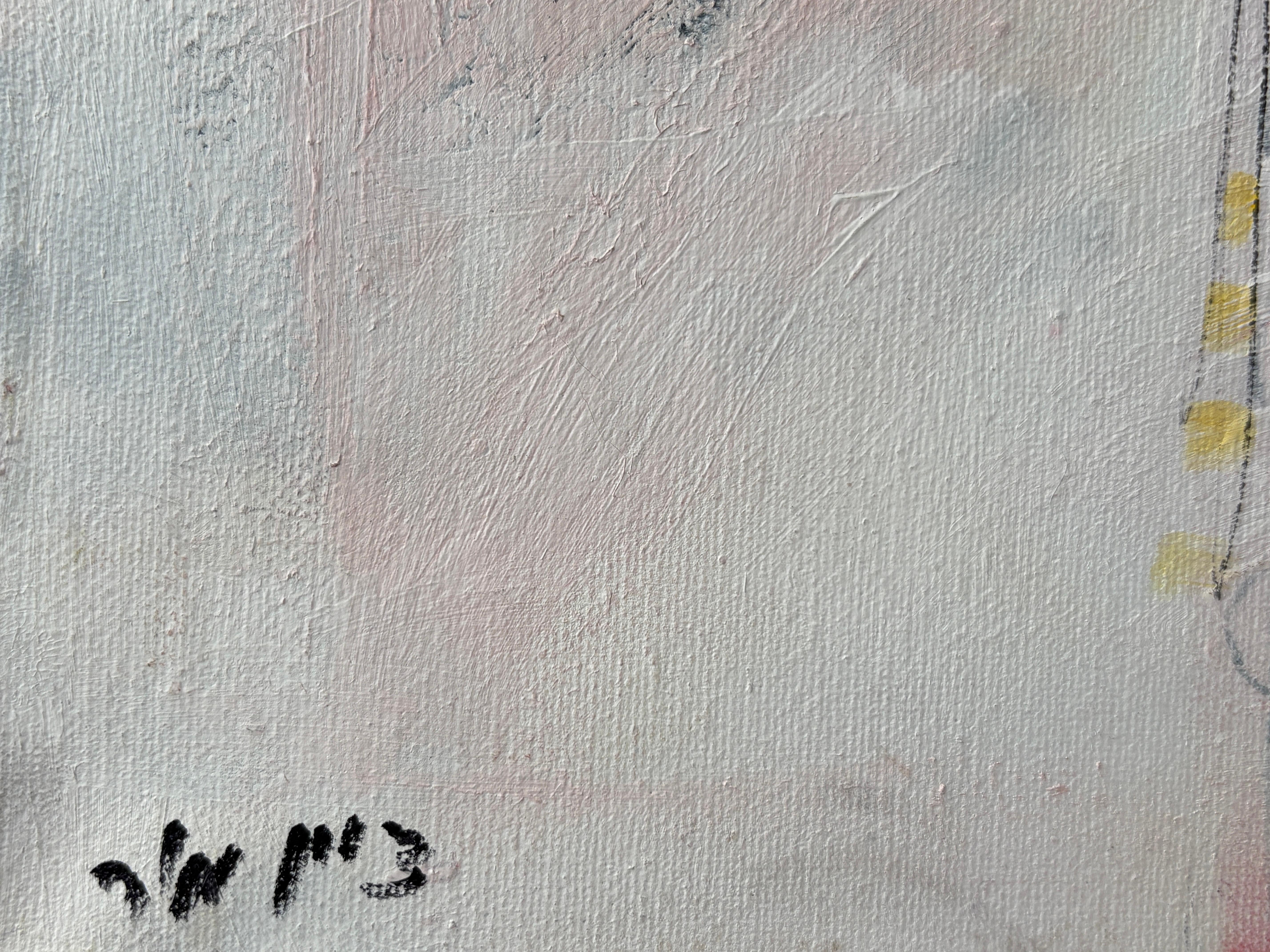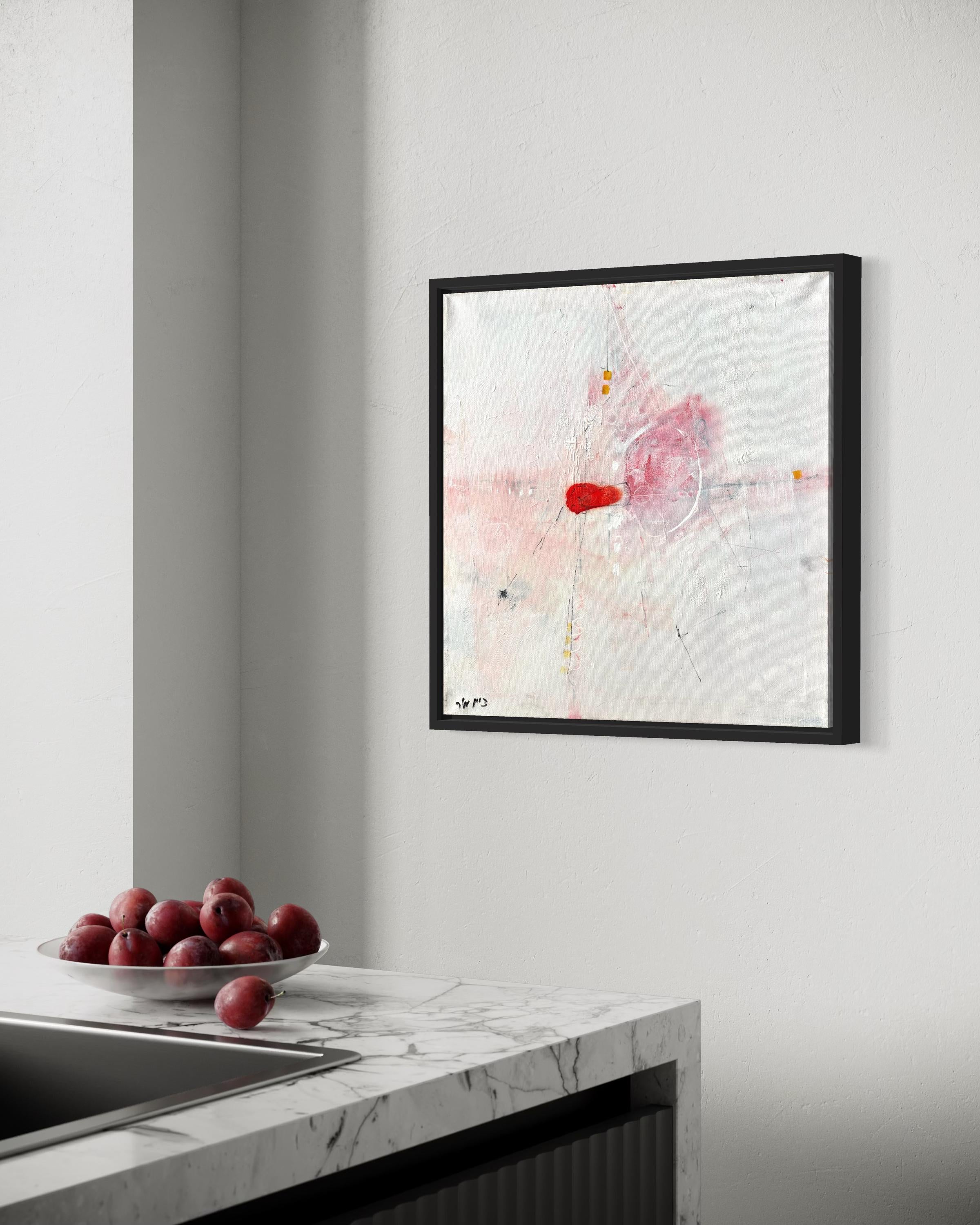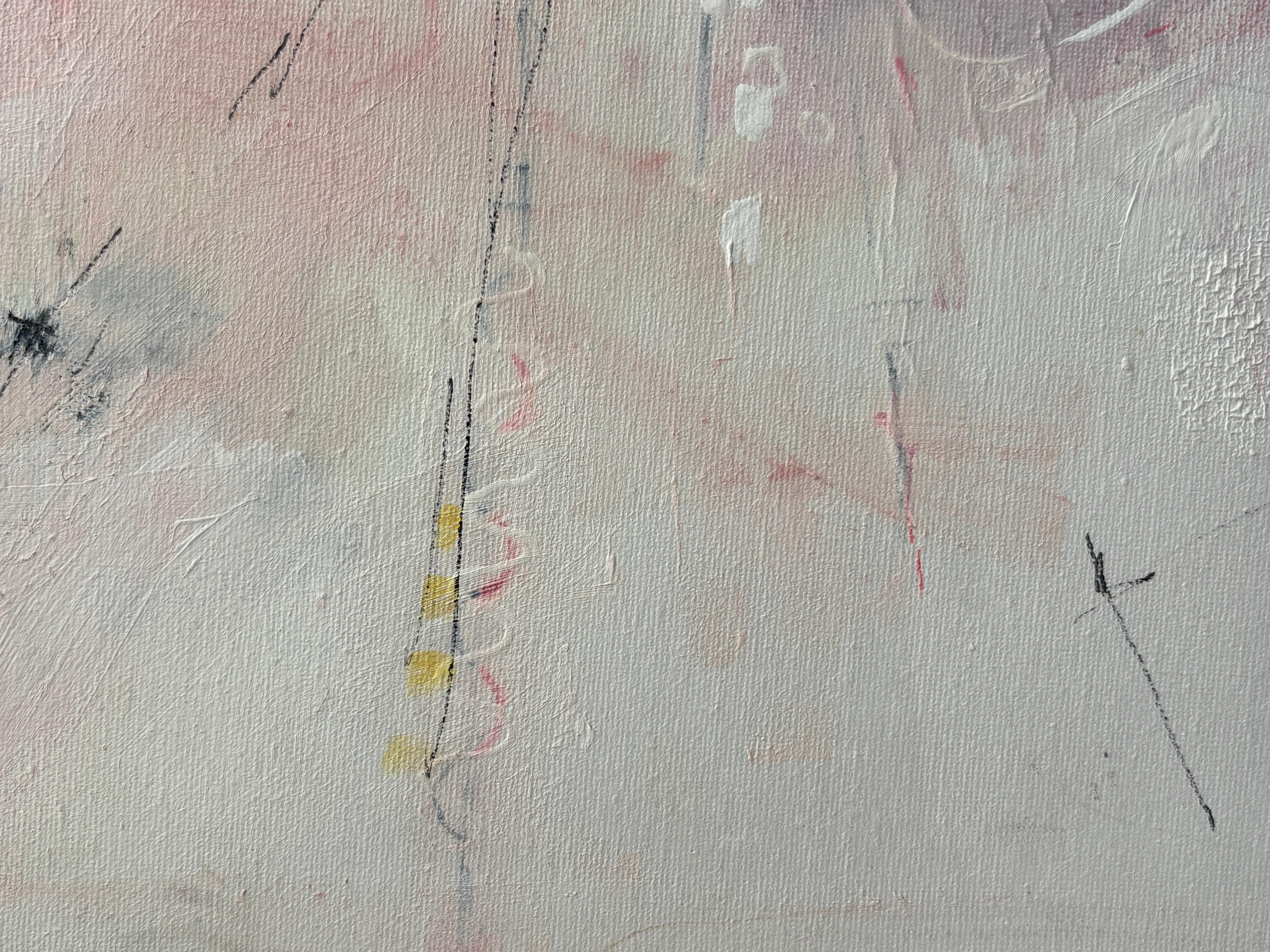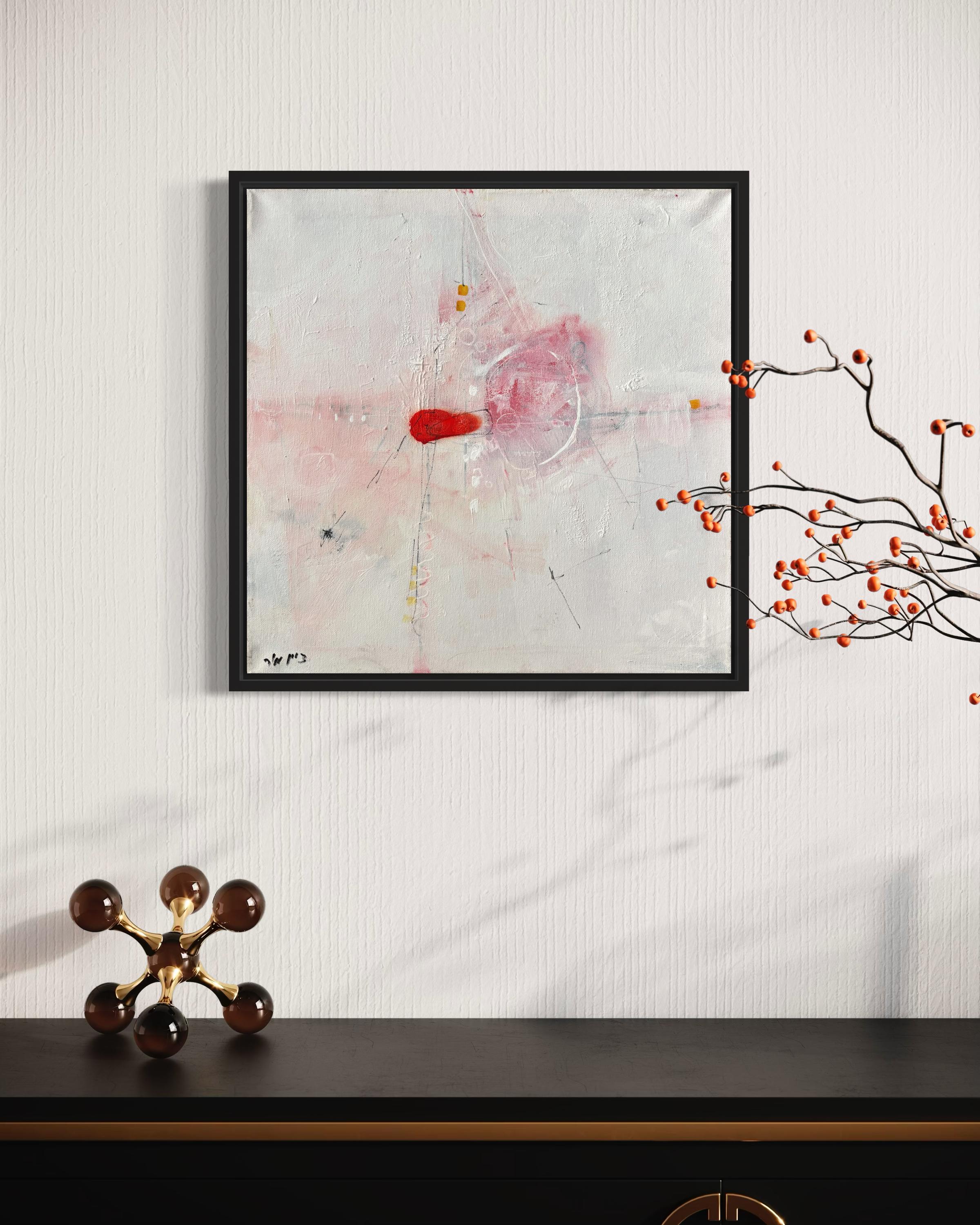 Zion Mor's 16" x 16" große Leinwand strahlt eine ätherische Aura aus, in der die Sanftheit von Pastelltönen nahtlos mit der Durchsetzungskraft von markanten Linien und Formen verschm...