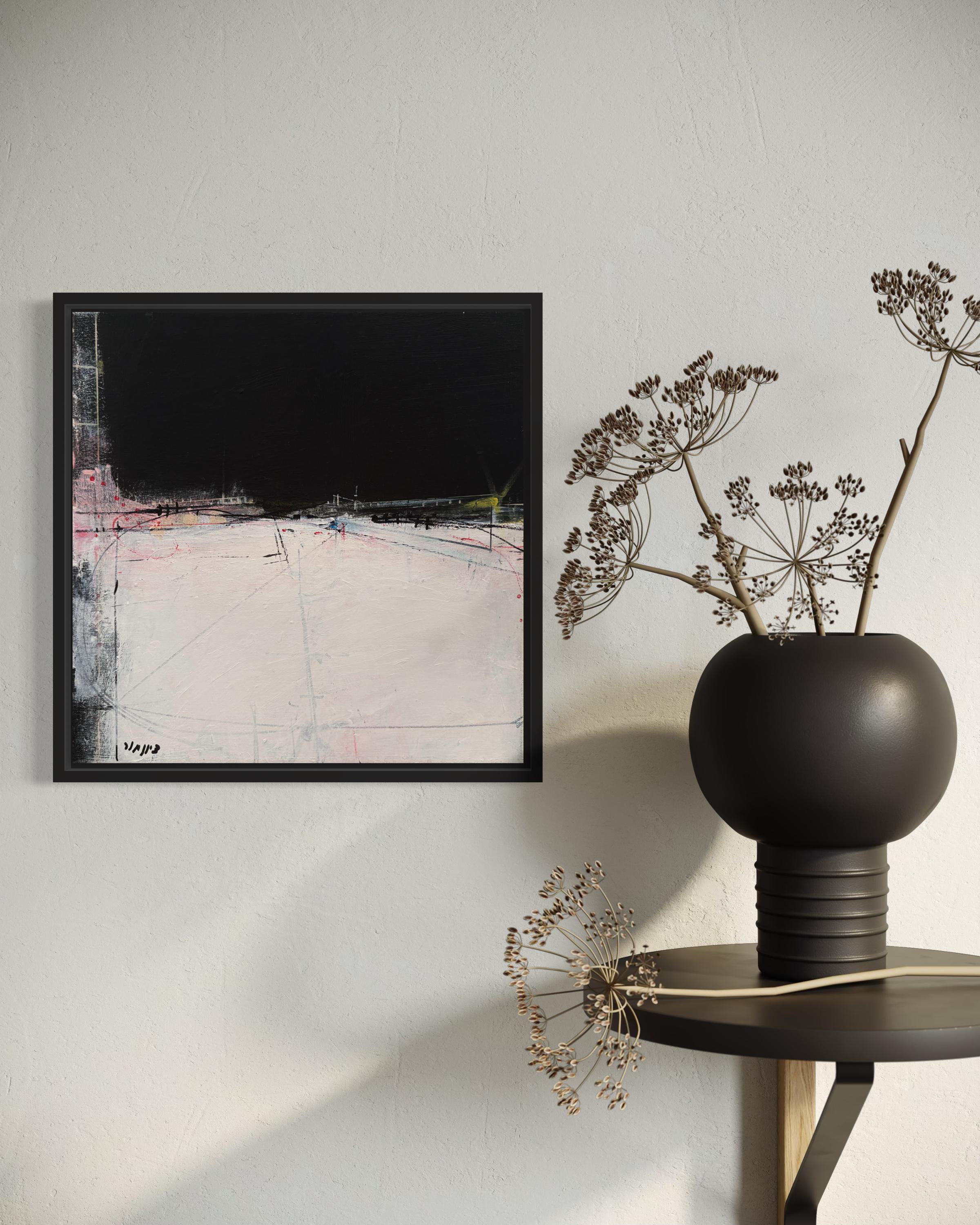 "Early Sunset" von Zion Mor ist eine faszinierende 16" x 16" große Darstellung des faszinierenden Tanzes zwischen dem Greifbaren und dem Ungreifbaren. Die Leinwand erzählt Geschichte...
