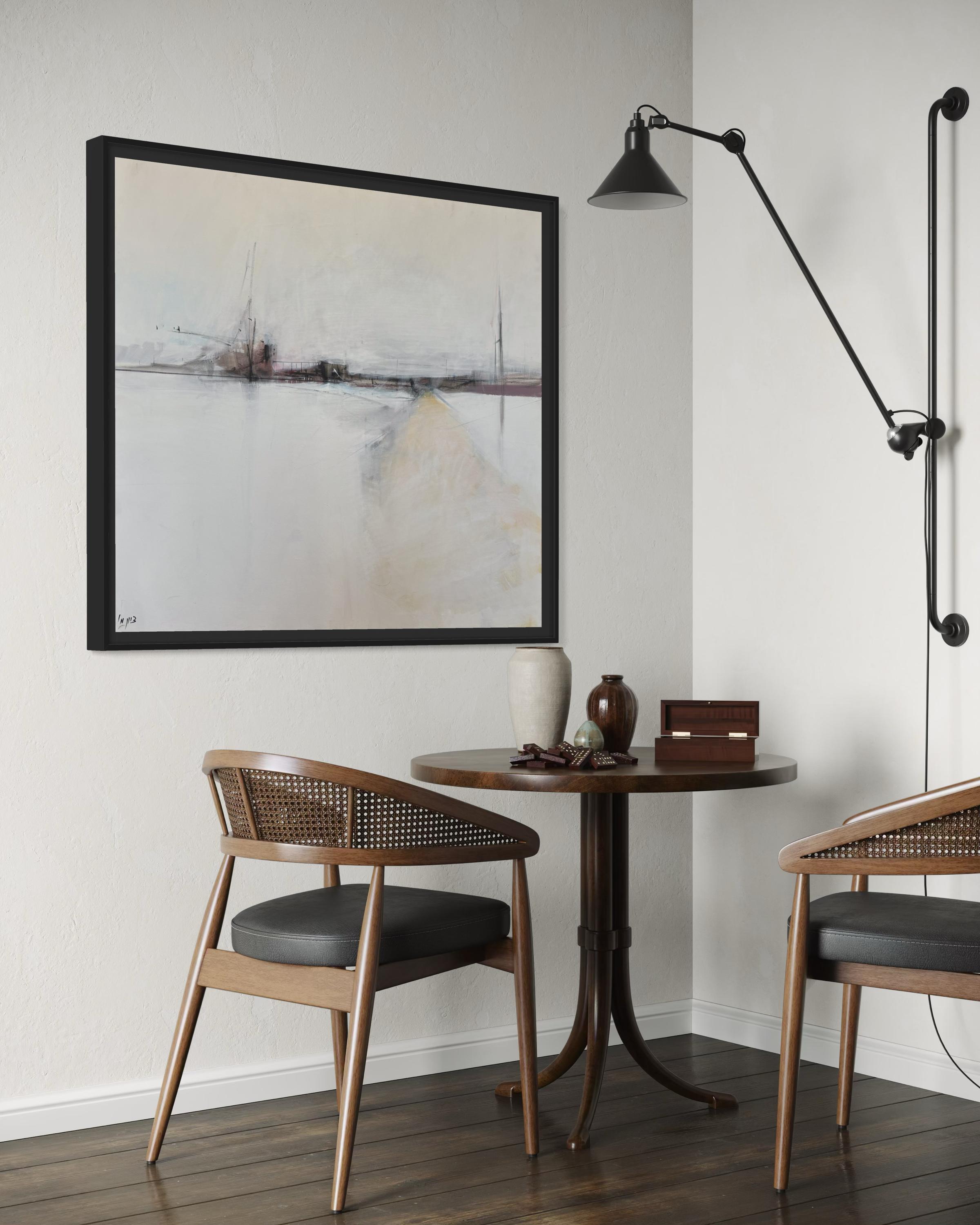 "Early Sunset" von Zion Mor ist eine faszinierende 16" x 16" große Darstellung des faszinierenden Tanzes zwischen dem Greifbaren und dem Ungreifbaren. Die Leinwand erzählt Geschichte...