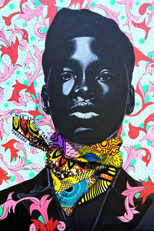 Affen Segun wurde 1993 in Lagos, Nigeria, geboren. Der aus dem Bundesstaat Bayelsa stammende Künstler entdeckte schon in jungen Jahren seine Liebe zur Kunst und ließ sich später in einer Kunstwerkstatt am Straßenrand einschreiben, um seine Fähigkeiten zu verbessern. Affen ist ein zeitgenössischer Künstler, der von der schwarzen Kultur motiviert ist und die schwarze Kultur, seine Kultur, als Inspirationsquelle für seine Kunst sieht. Seine Leidenschaft für die Schaffung von Porträts, die durch die Verwendung von Acrylfarben und afrikanisch gemusterten Stoffen zum Leben erweckt werden, und seine Fähigkeit, Emotionen im Gesicht seiner Musen einzufangen, hat ein großes Publikum für seine Werke angezogen. Affen hat Gemälde für mehrere nigerianische Berühmtheiten wie Mayorkun, Skiibii, Zlatan, Davido, Wizkid und andere geschaffen. Affen ist ein aufstrebender Künstler, der für sein Talent international anerkannt und ausgezeichnet wurde. Seine Arbeiten sind in Online- und Einzelhandelsgalerien sowie in Privatsammlungen in Großbritannien, Nigeria, den Vereinigten Staaten, den Philippinen, Frankreich und anderen Ländern zu sehen.