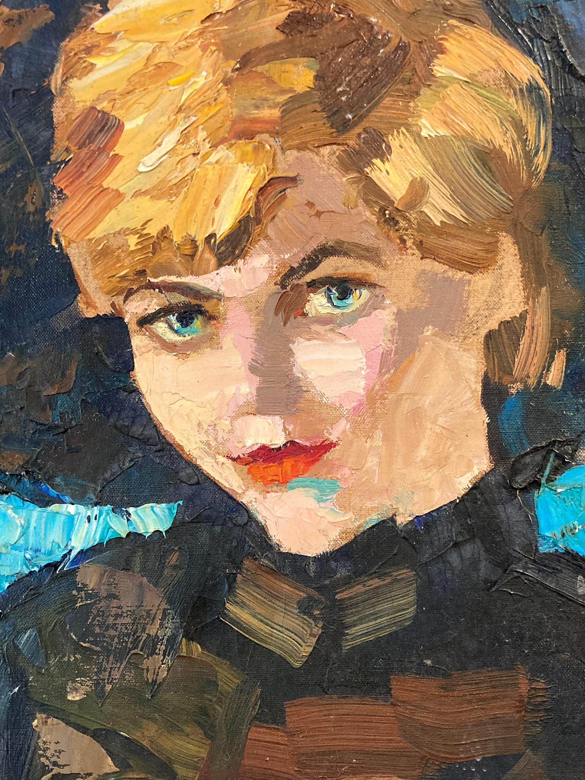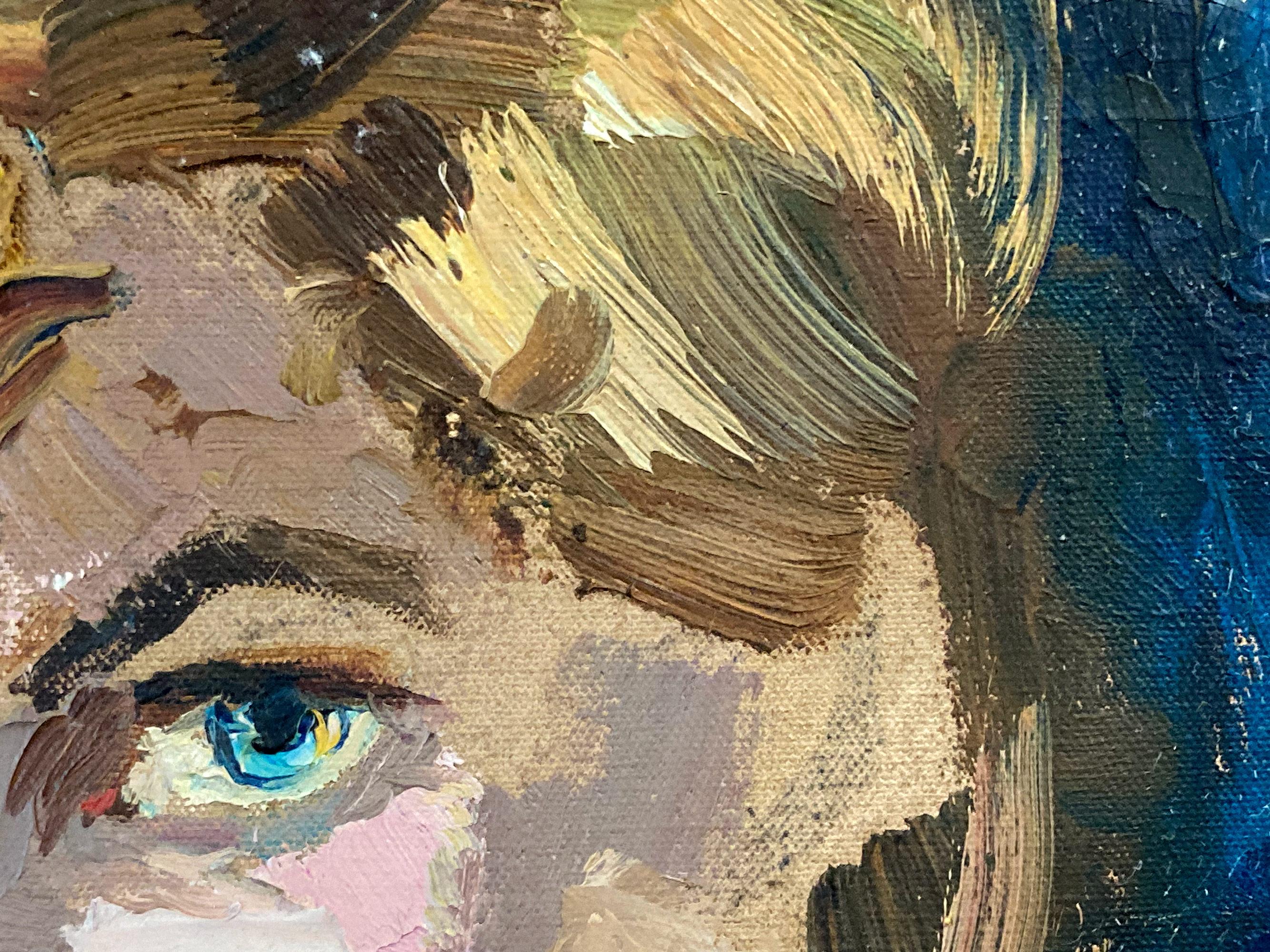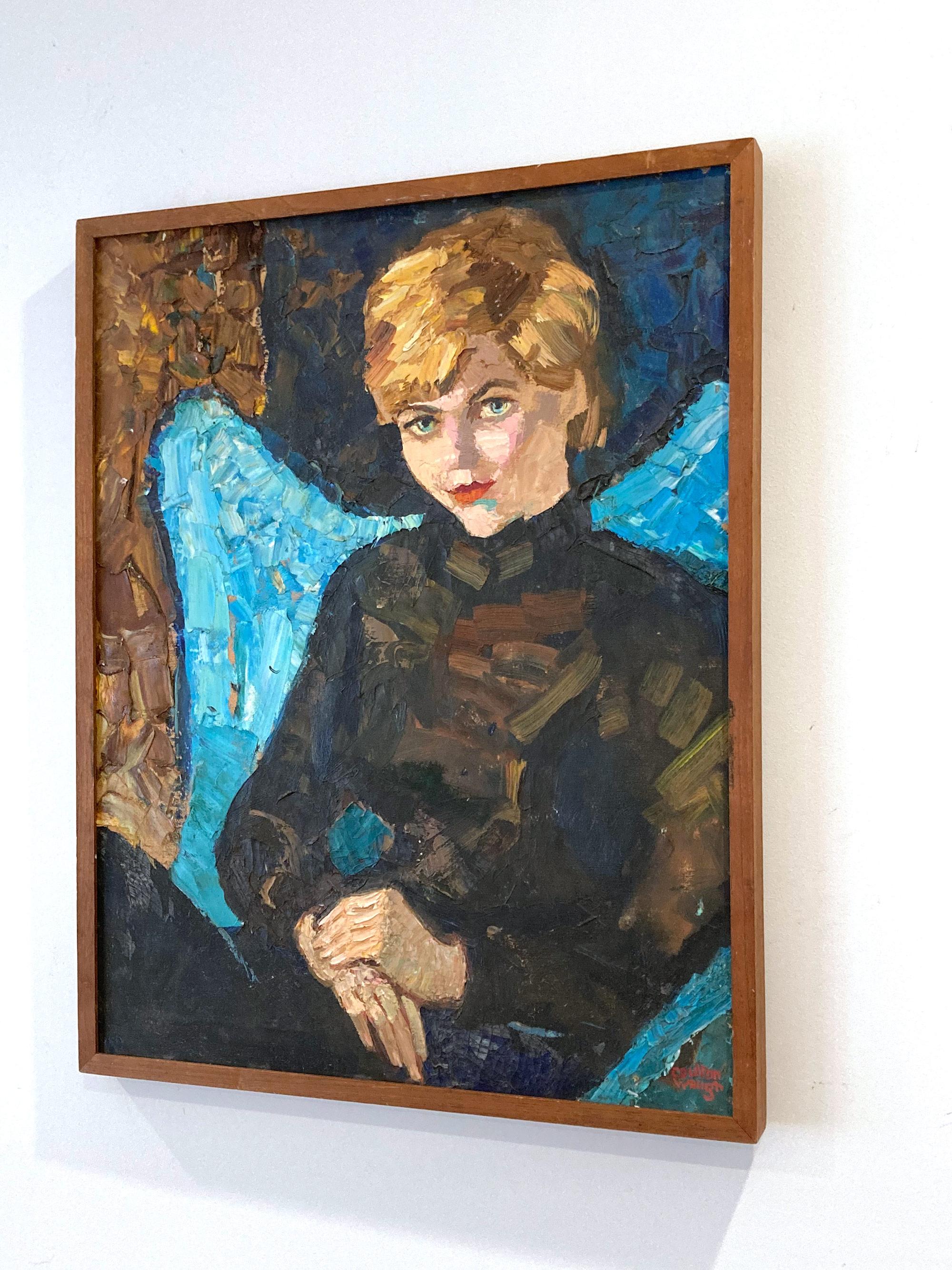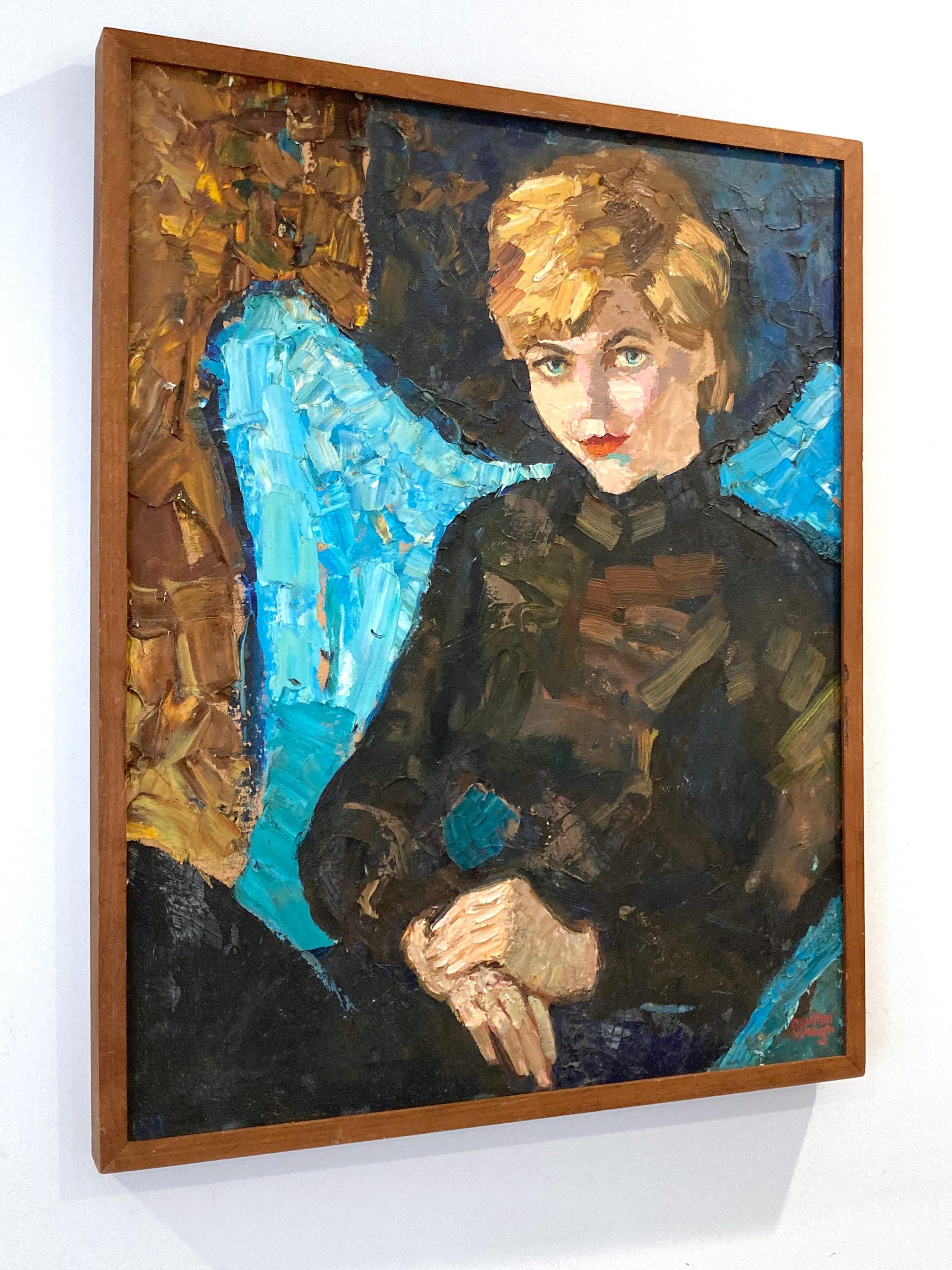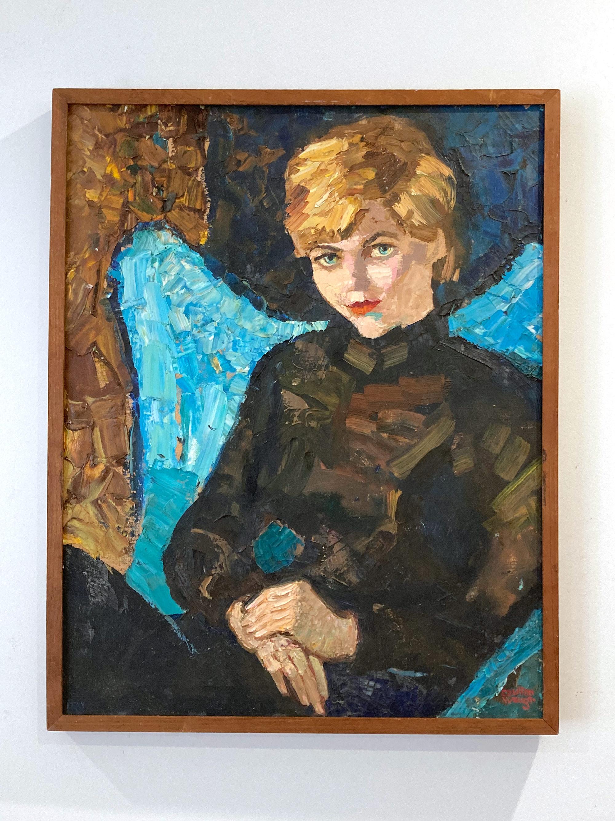 Coulton Waugh"Porträt in Blau und Orange" Impressionistisches strukturiertes Ölgemälde aus der Mitte des Jahrhunderts1942