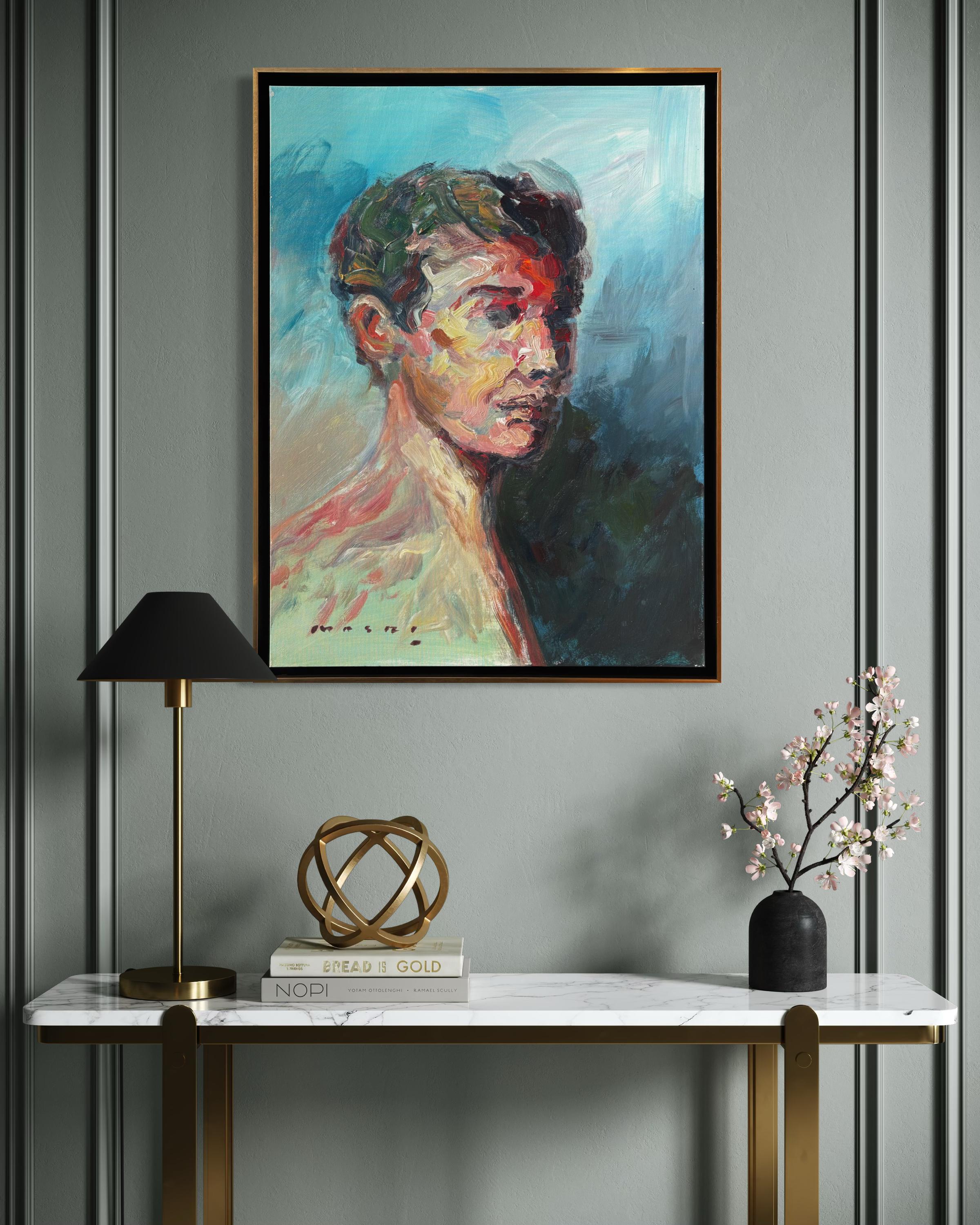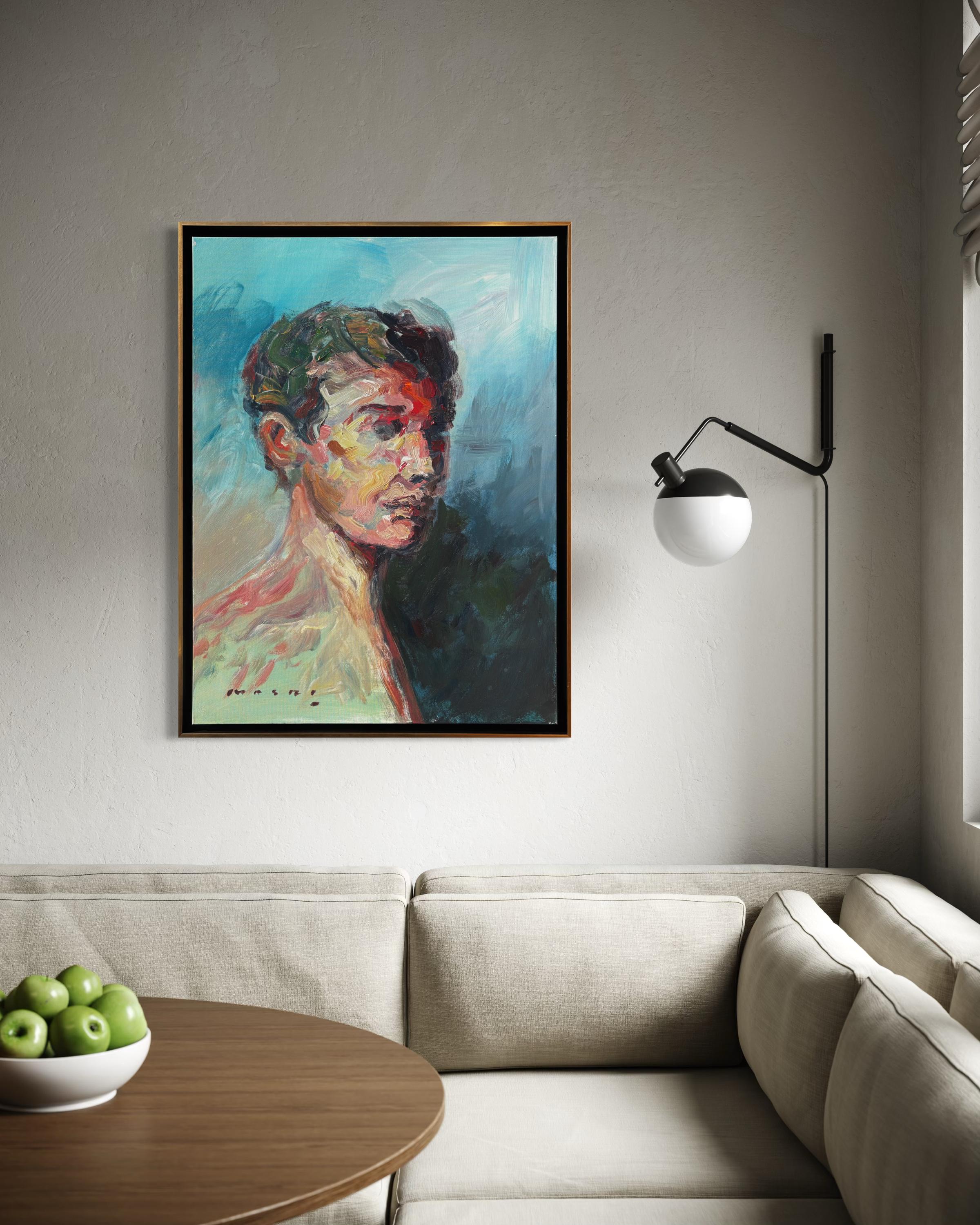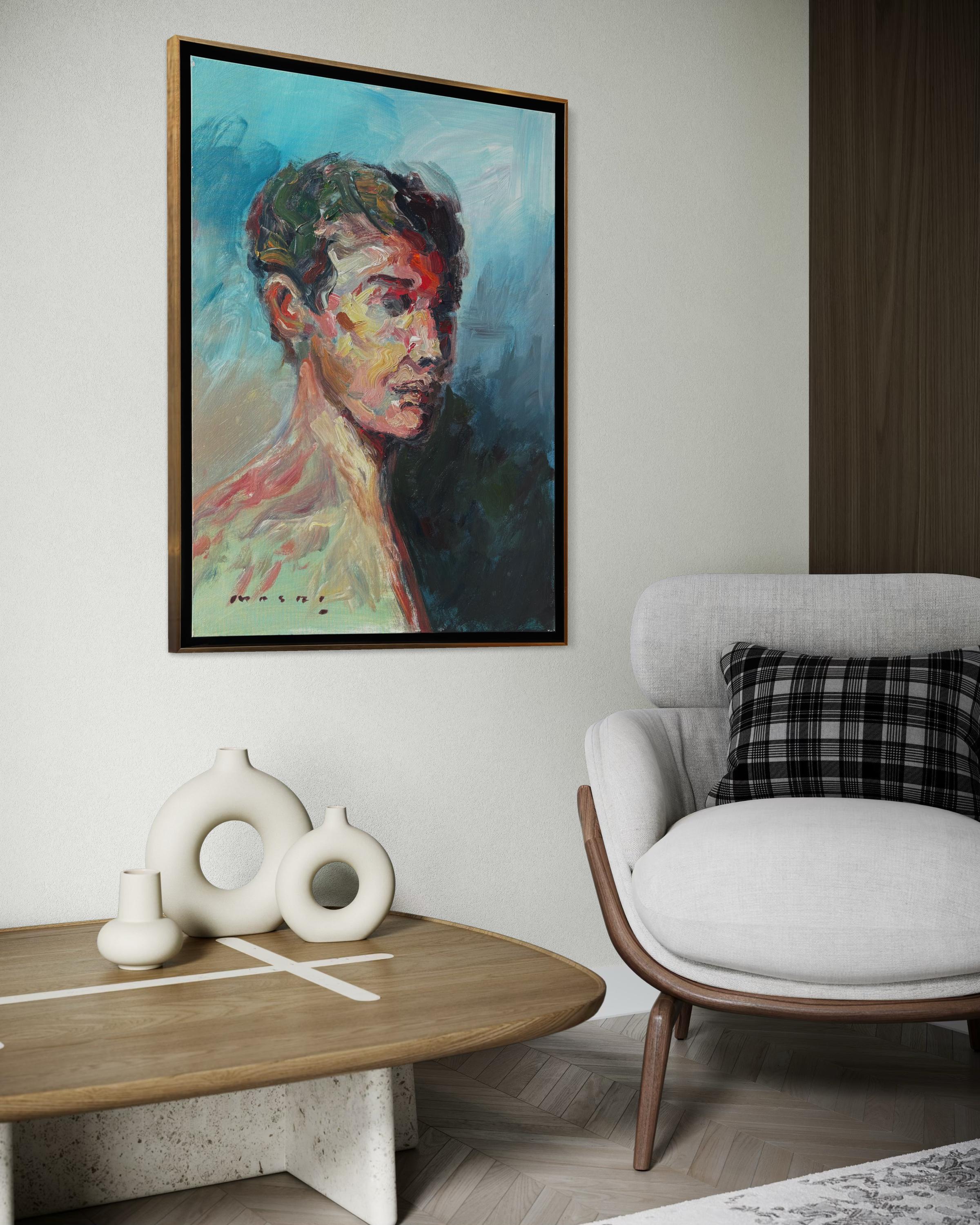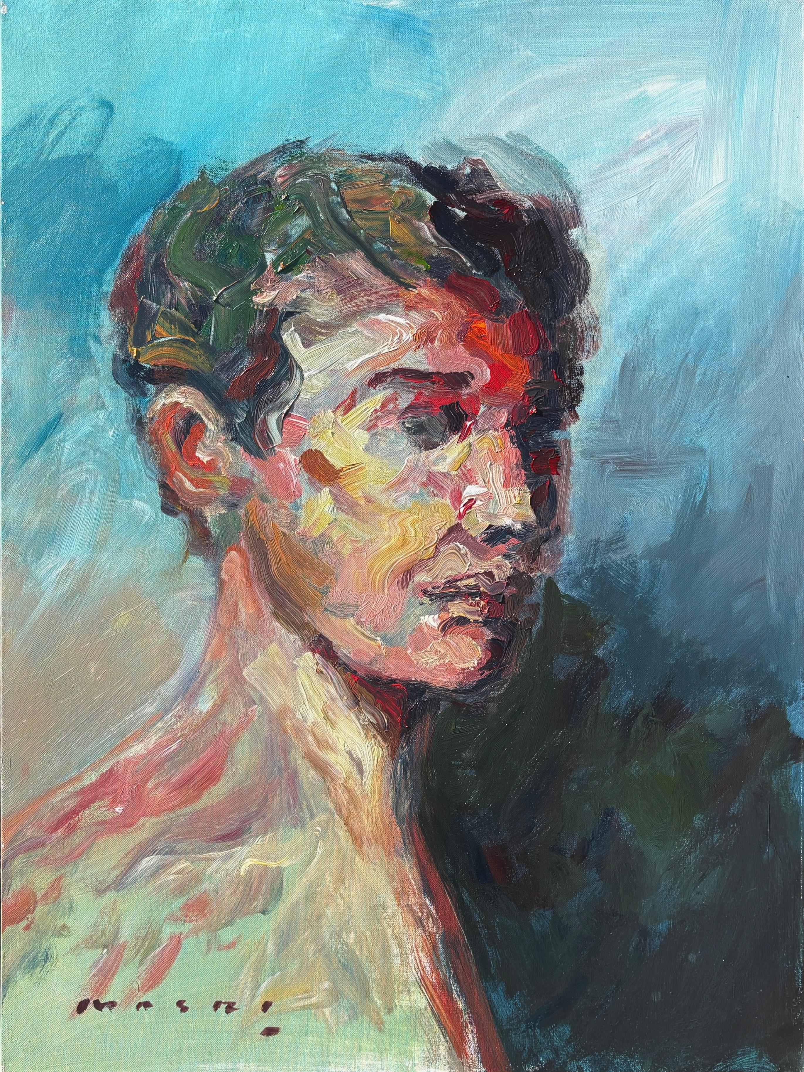 Masri Hayssam"Ohne Titel" - Auffallend farbenfrohes, emotionales, expressionistisches männliches Porträtgemälde2025