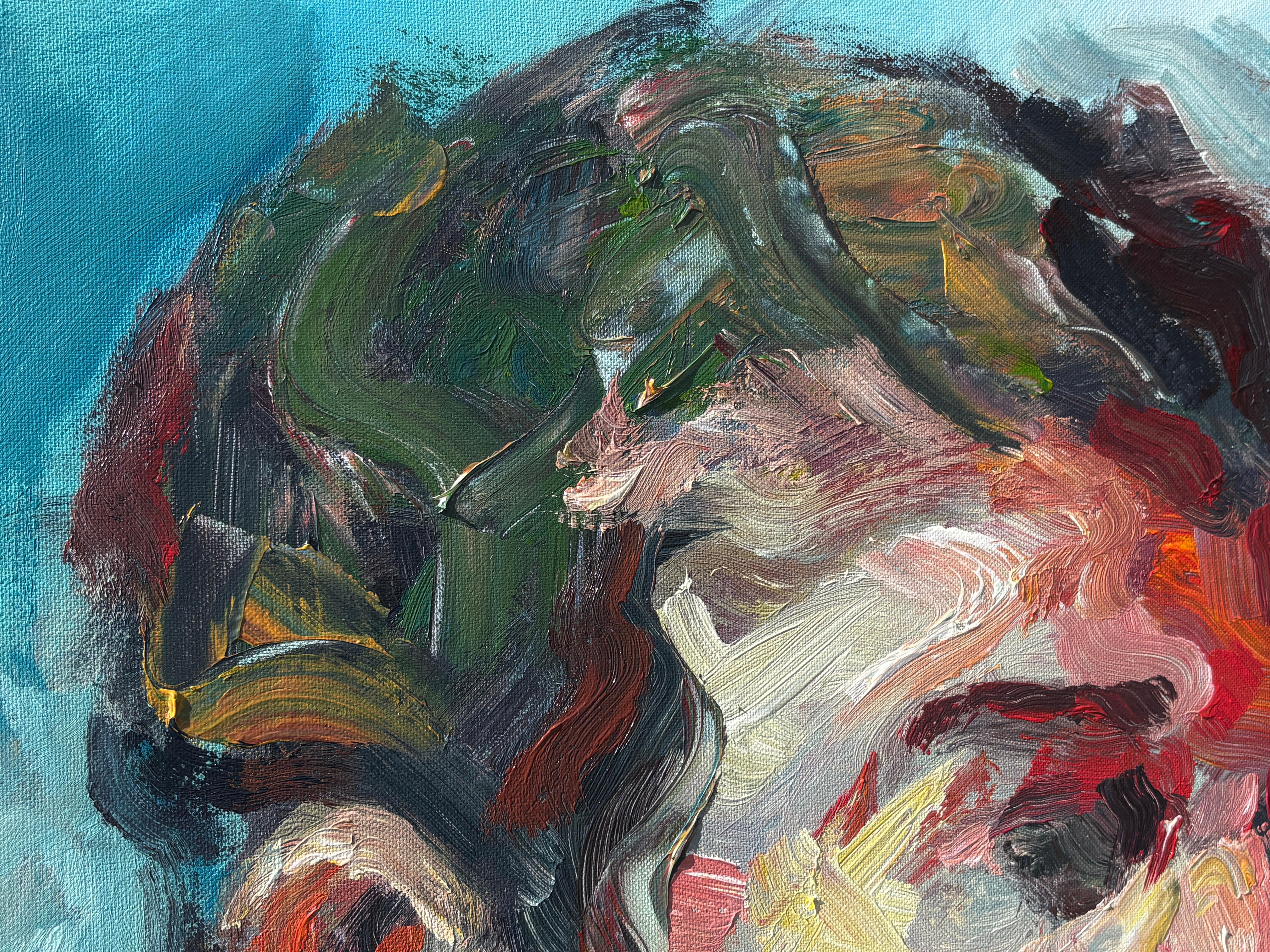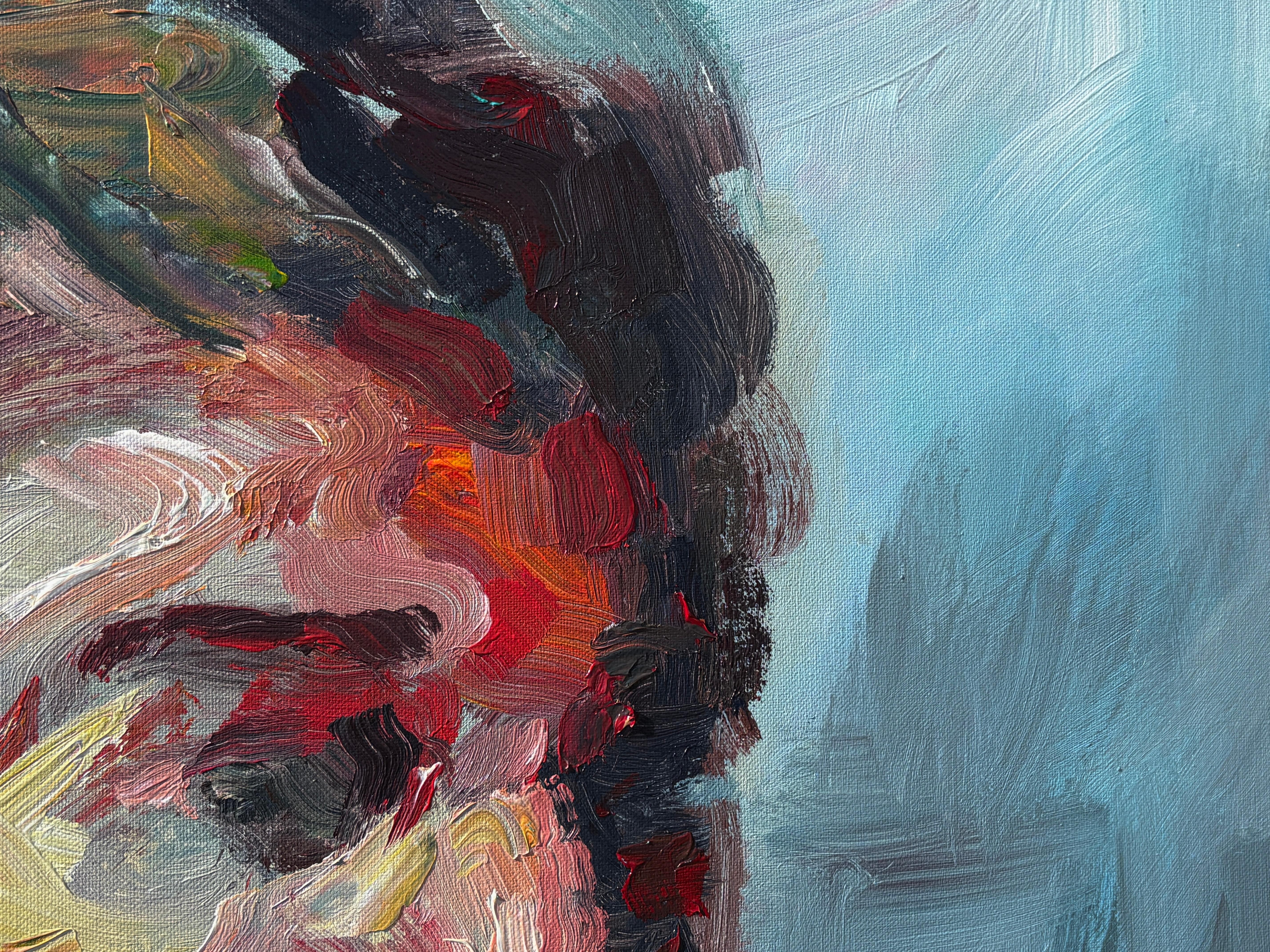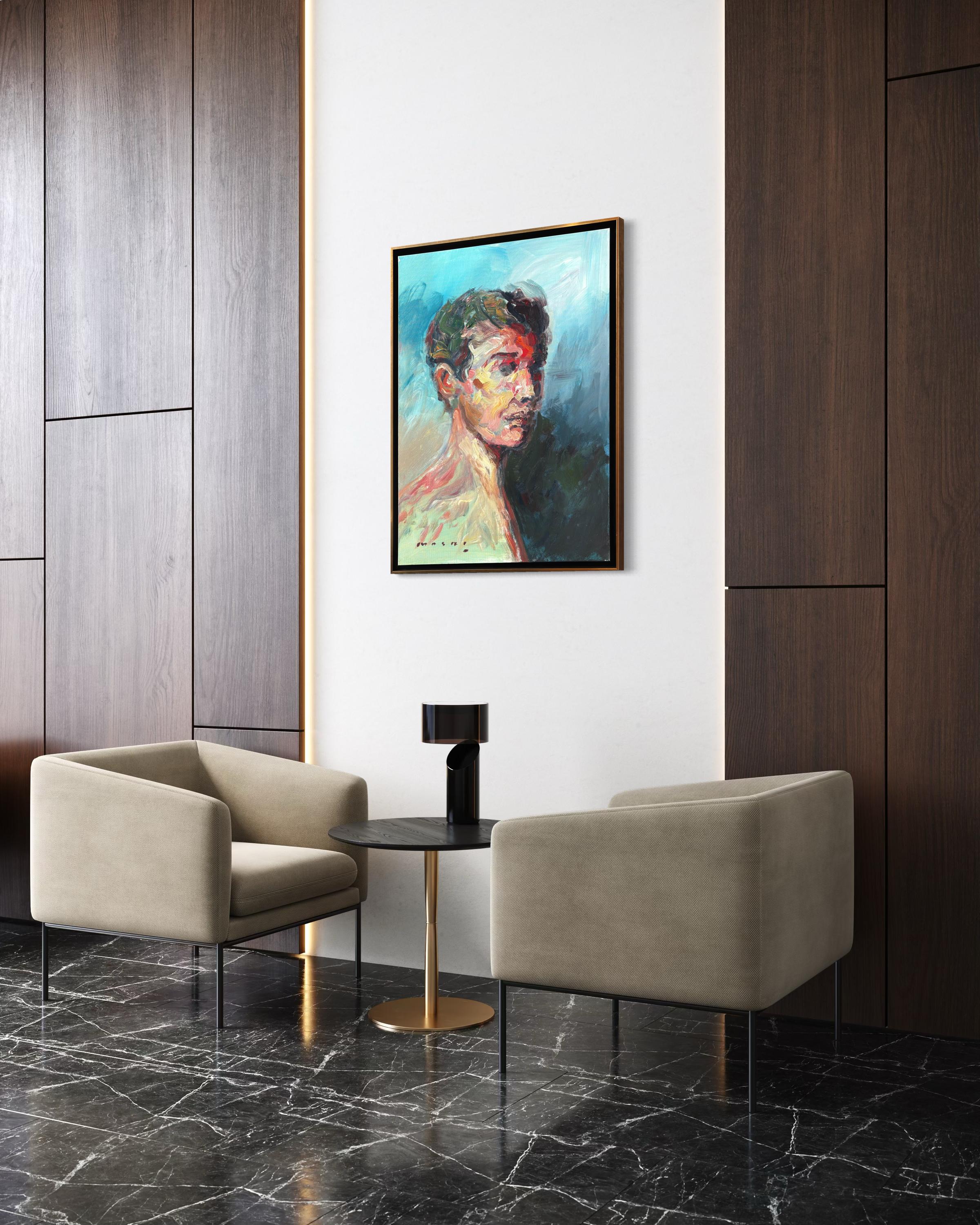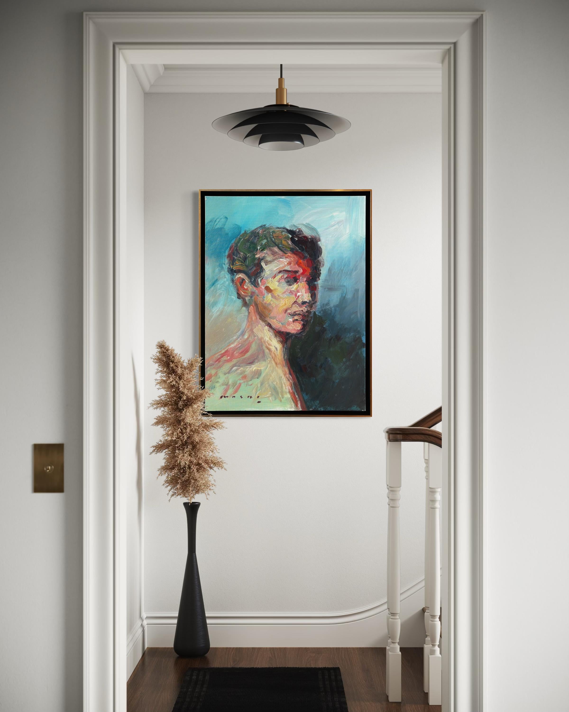 Masri Hayssam"Ohne Titel" - Auffallend farbenfrohes, emotionales, expressionistisches männliches Porträtgemälde2025