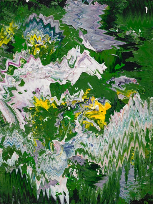 Die abstrakten Gemälde bieten dem Betrachter eine Erfahrung des visuellen Schwindels. Flecken, Spritzer, Pinsel, Texturen u...