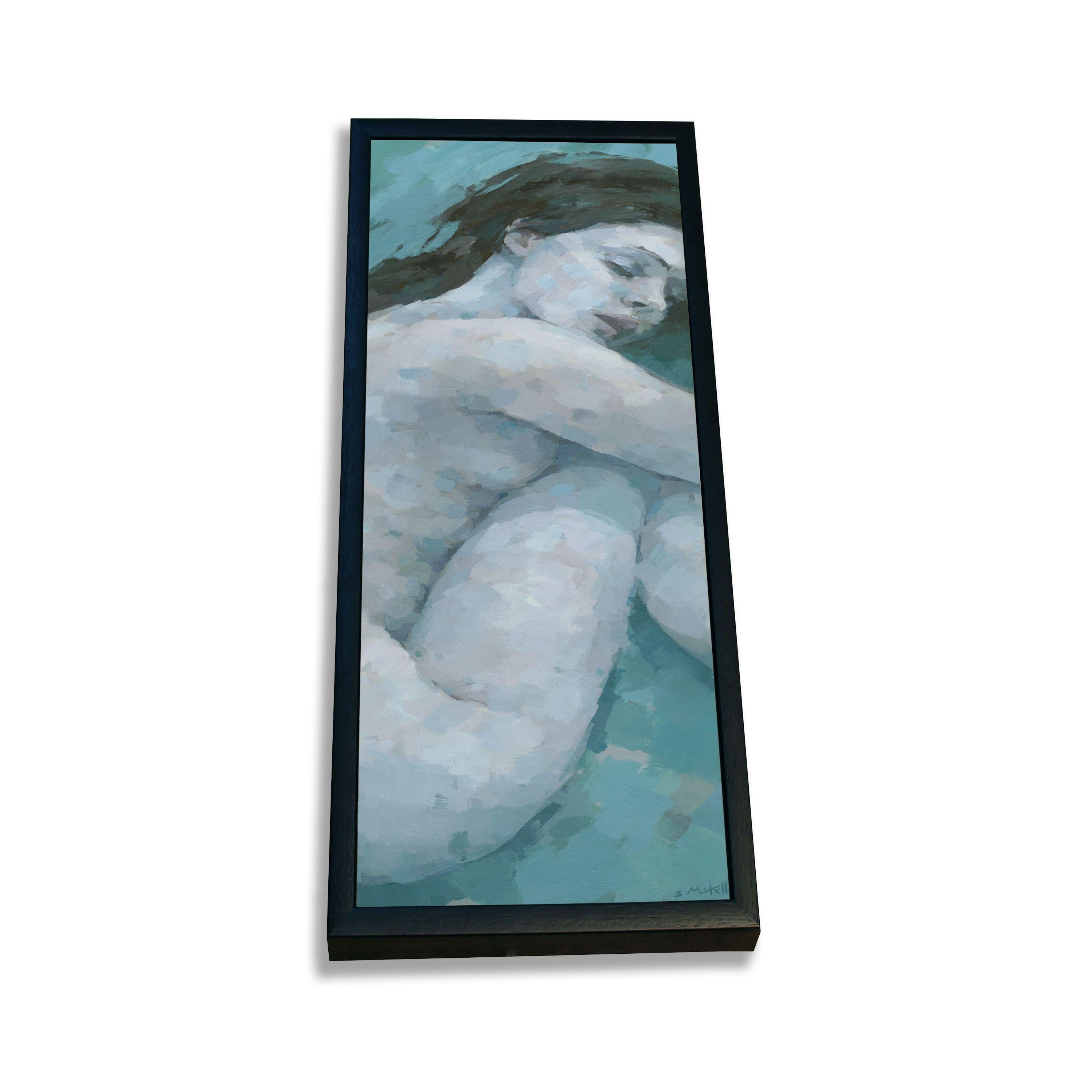 Ich habe diese weibliche Figur in einer Palette von gedämpften grün-blauen Farben gemalt, um die melancholische Stimmung zu verstärken. Das Gemälde ist in einem schwarzen Holzrahmen mit tiefem Profil hängefertig gerahmt. :: Gemälde :: Impressionist :: Dieses Werk wird mit einem offiziellen, vom Künstler unterzeichneten Echtheitszertifikat geliefert :: Bereit zum Aufhängen: Ja :: Signiert: Ja :: Position der Signatur: Vorderseite :: MDF-Platte :: Porträt :: Original :: Gerahmt: Ja :: Gerahmte Größe 37.8 "h x 13.0 "b x 2.0 "d