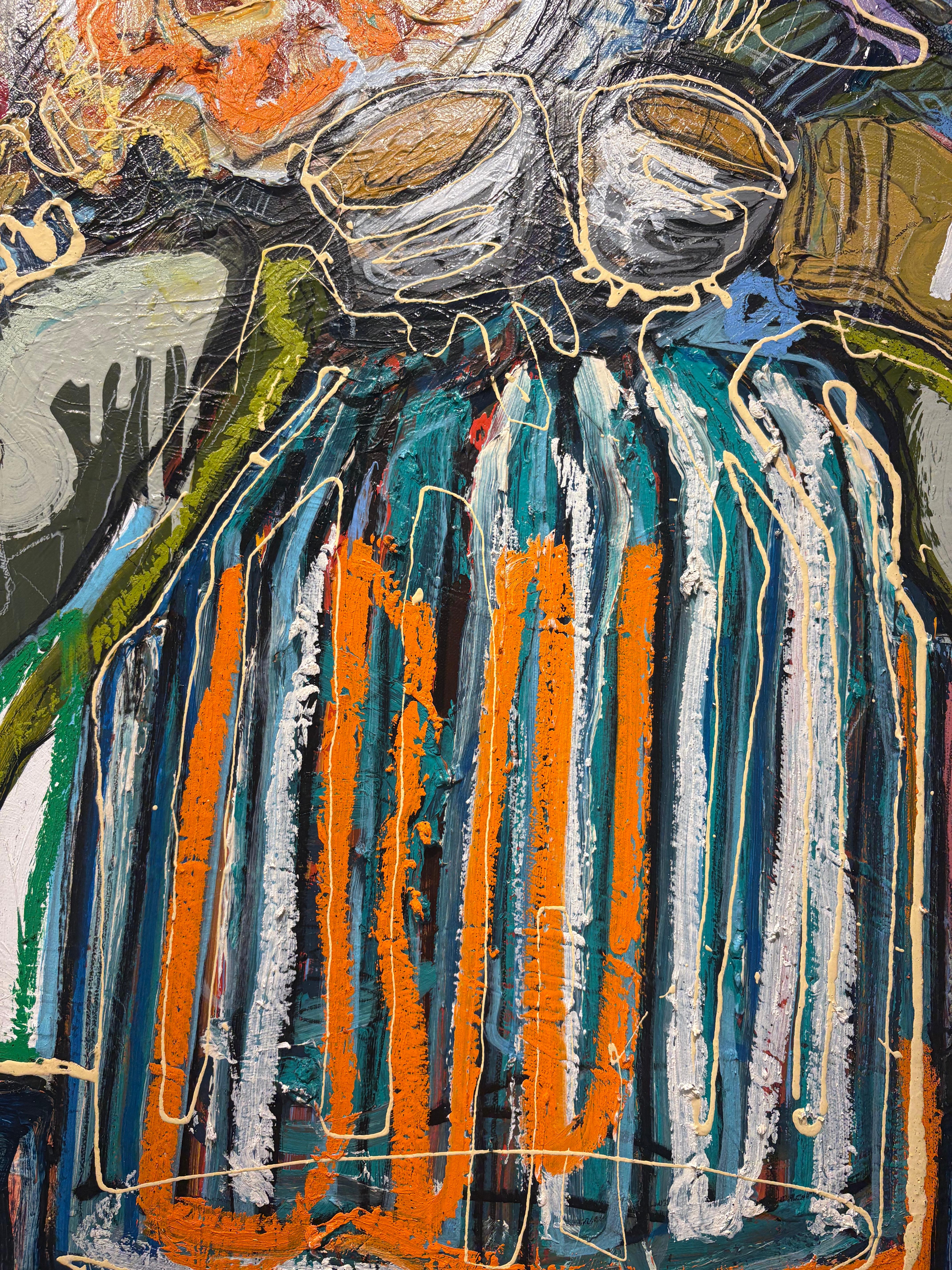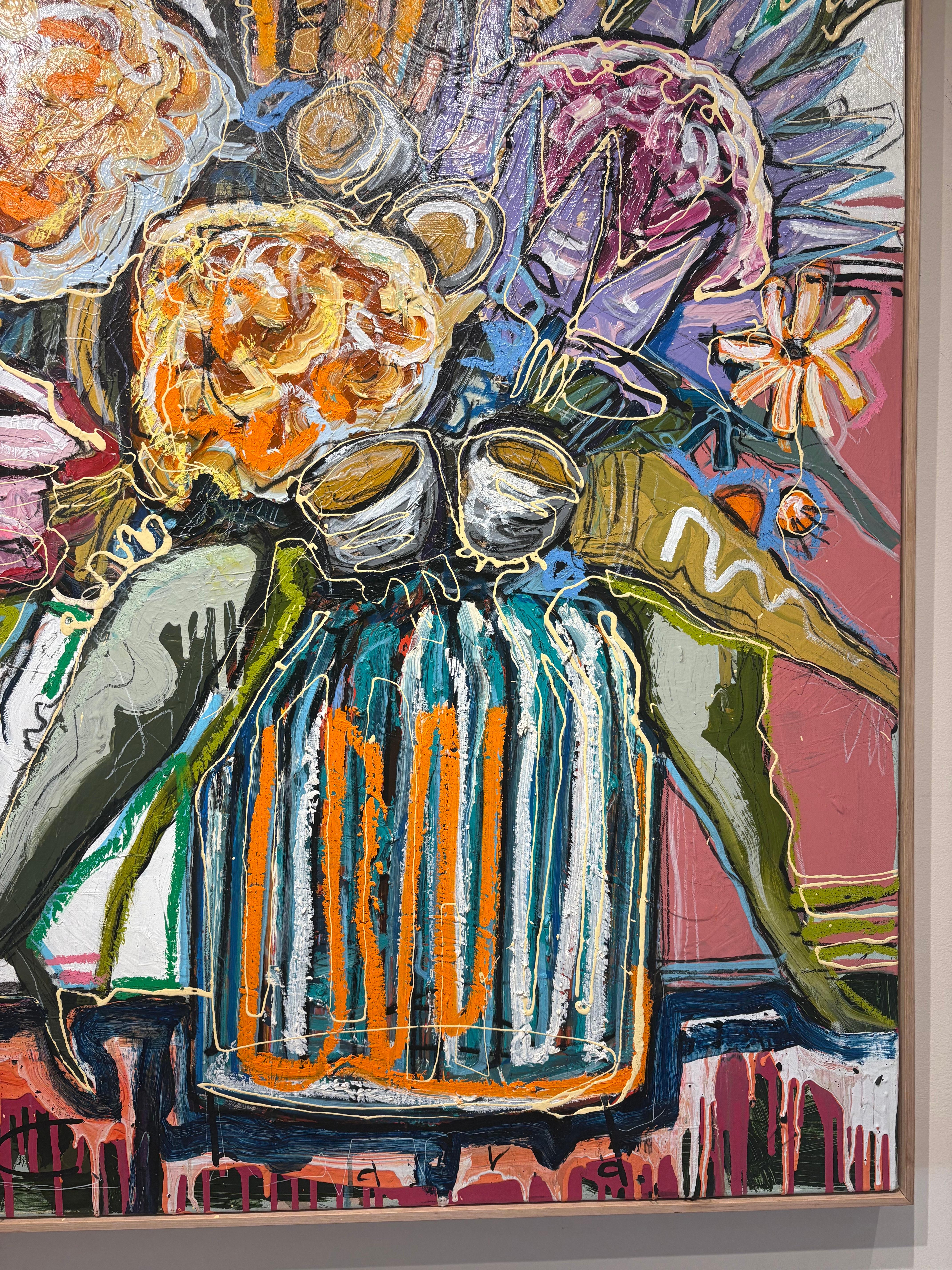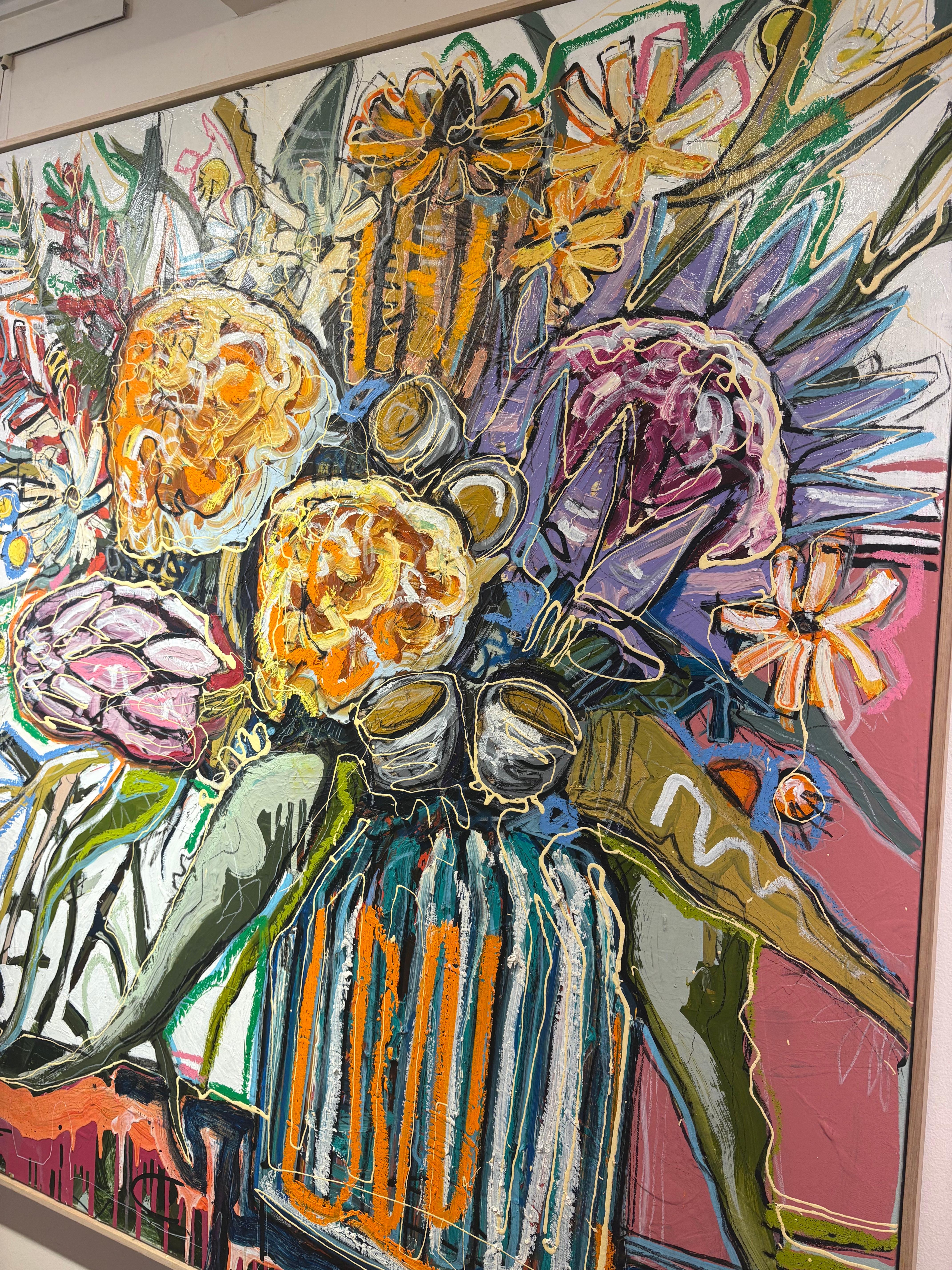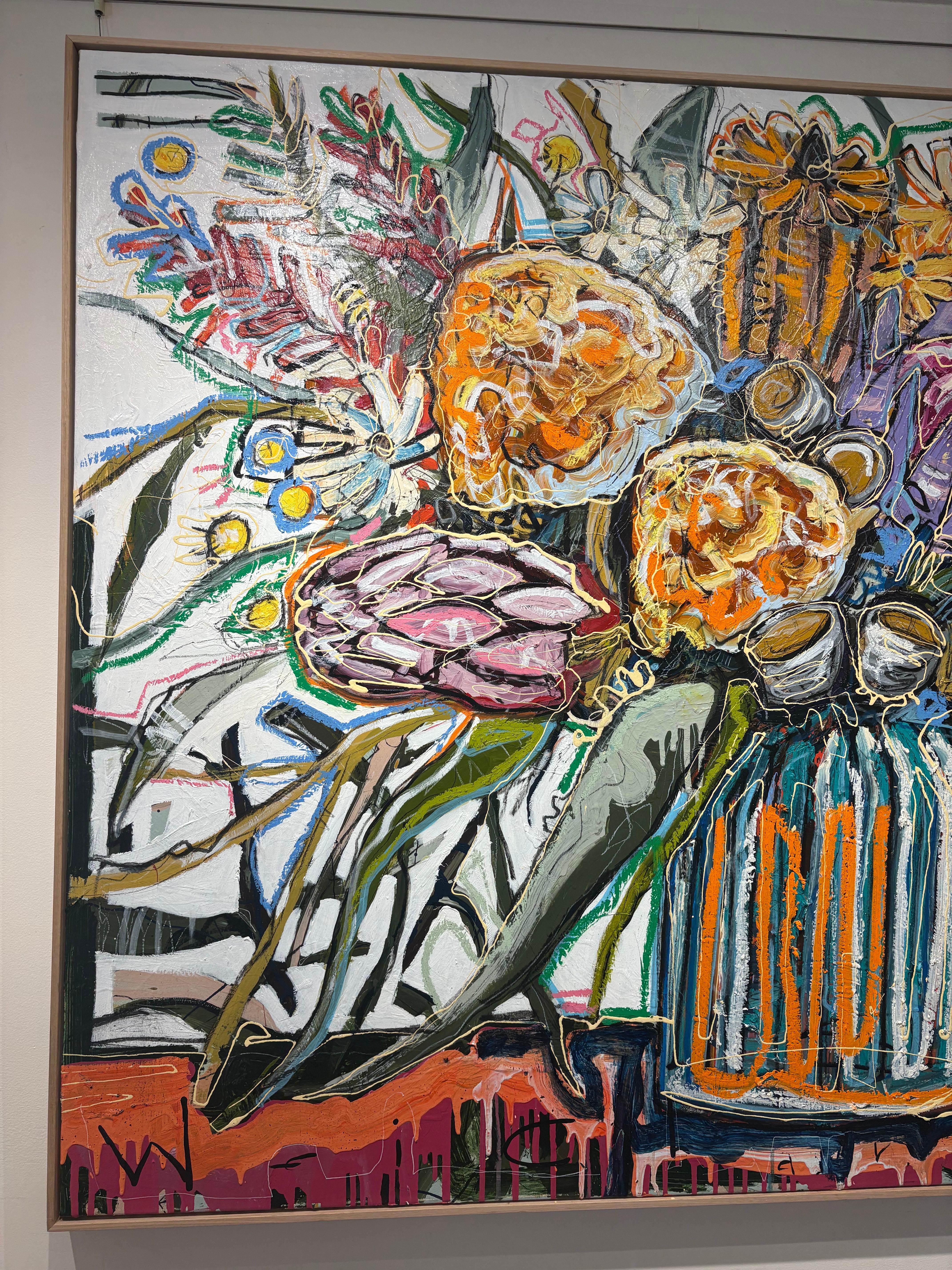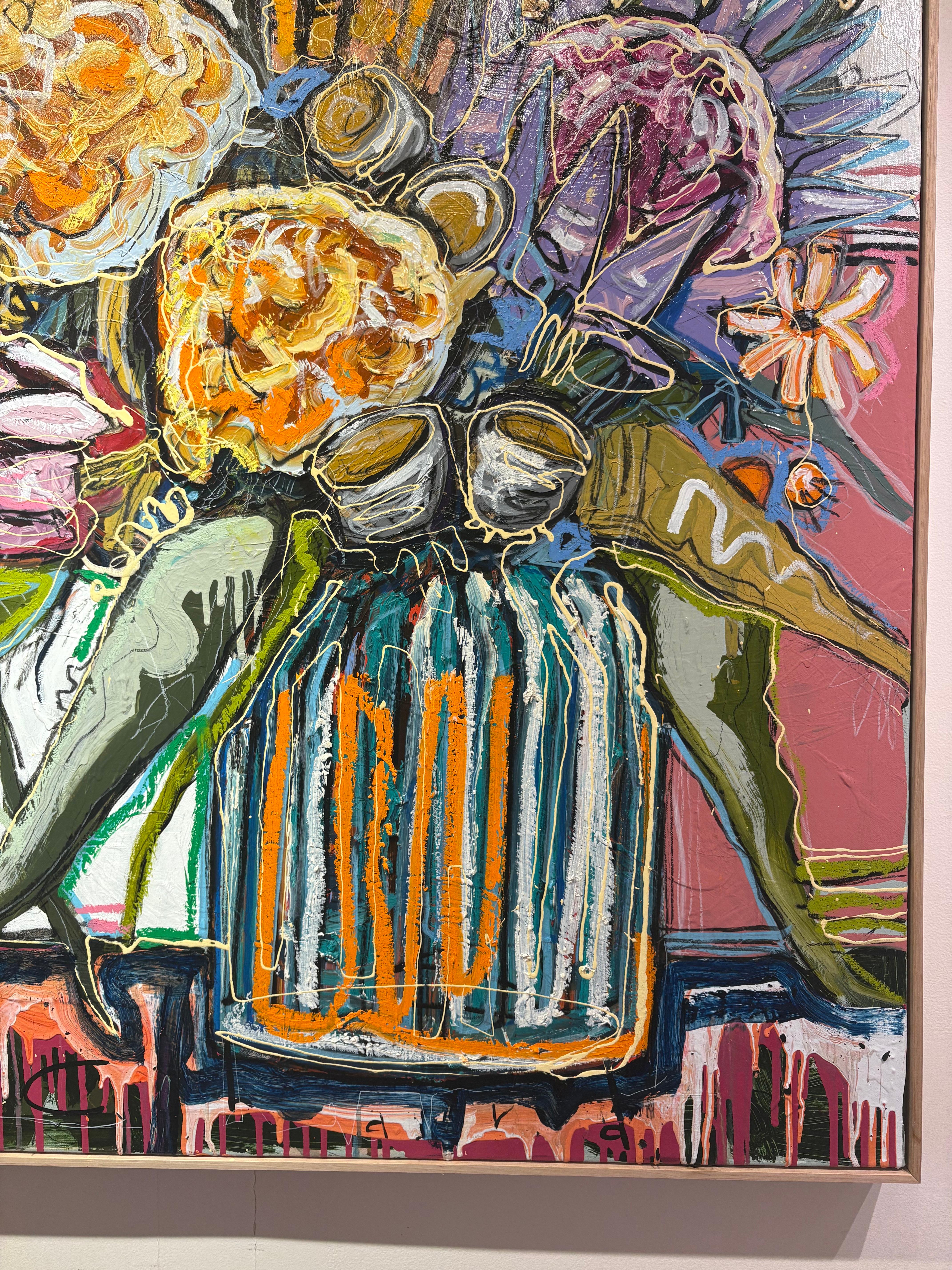"Native Study #3" Buntes, leuchtendes, abstrahiertes Blumenbouquet in einer Vase