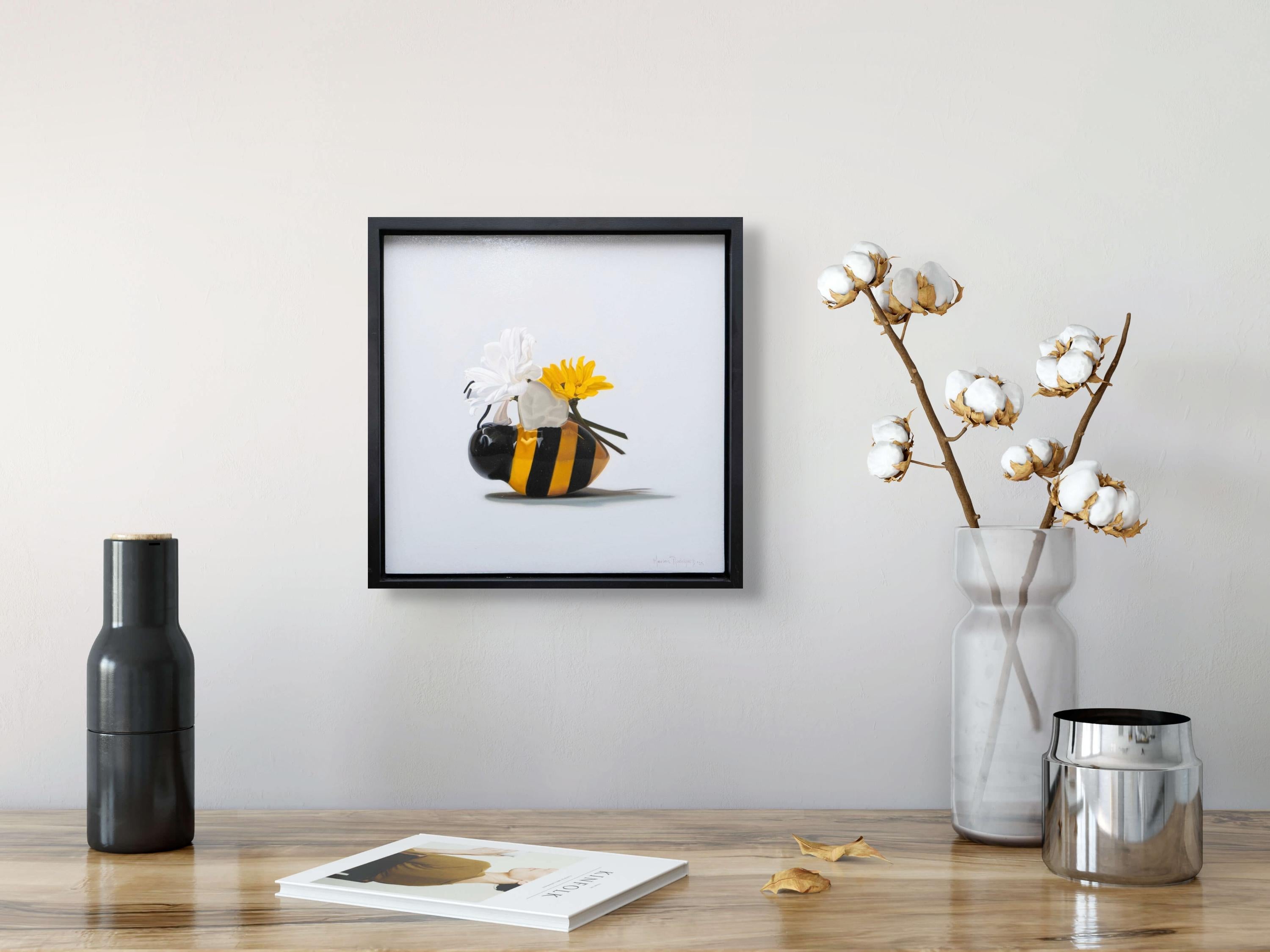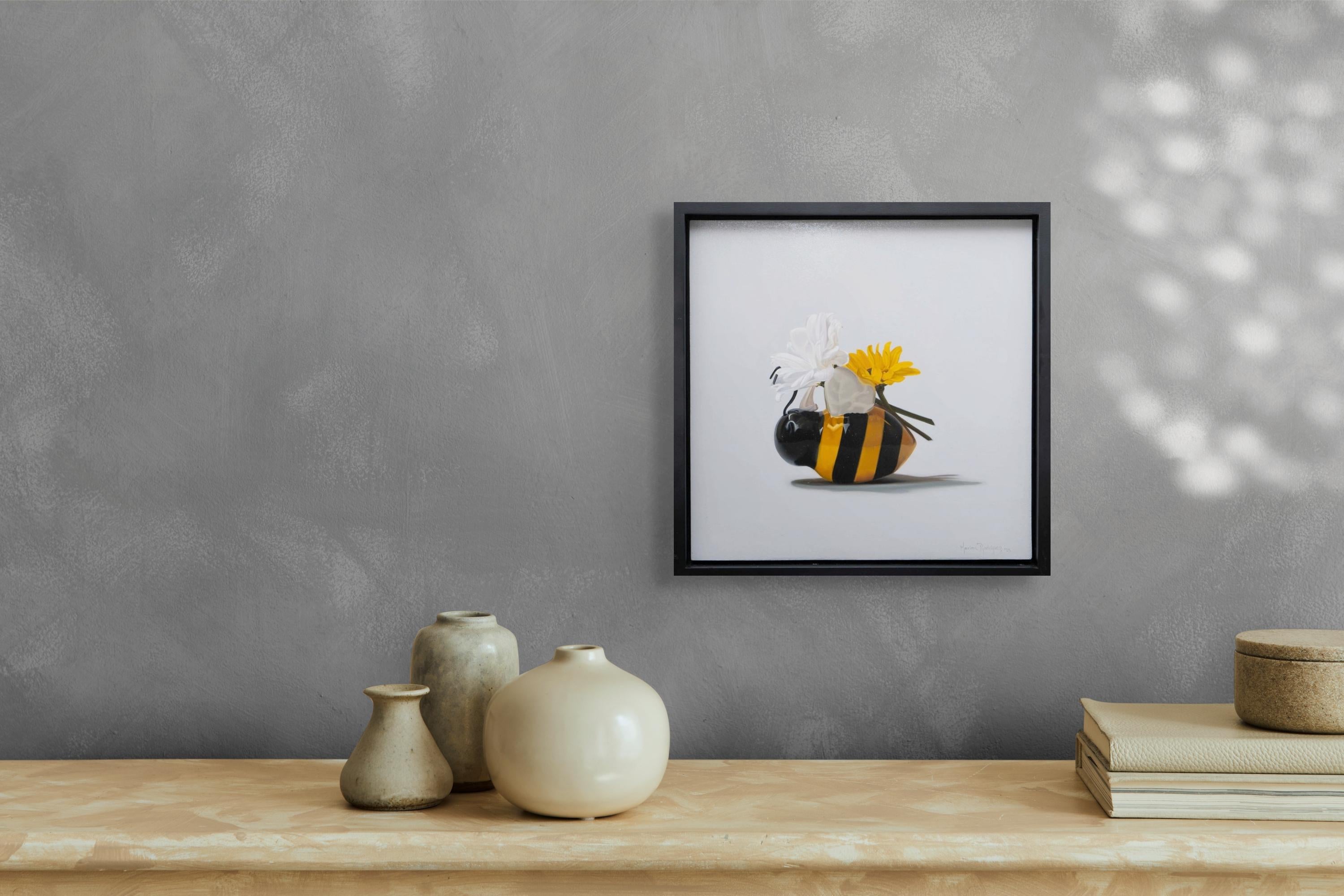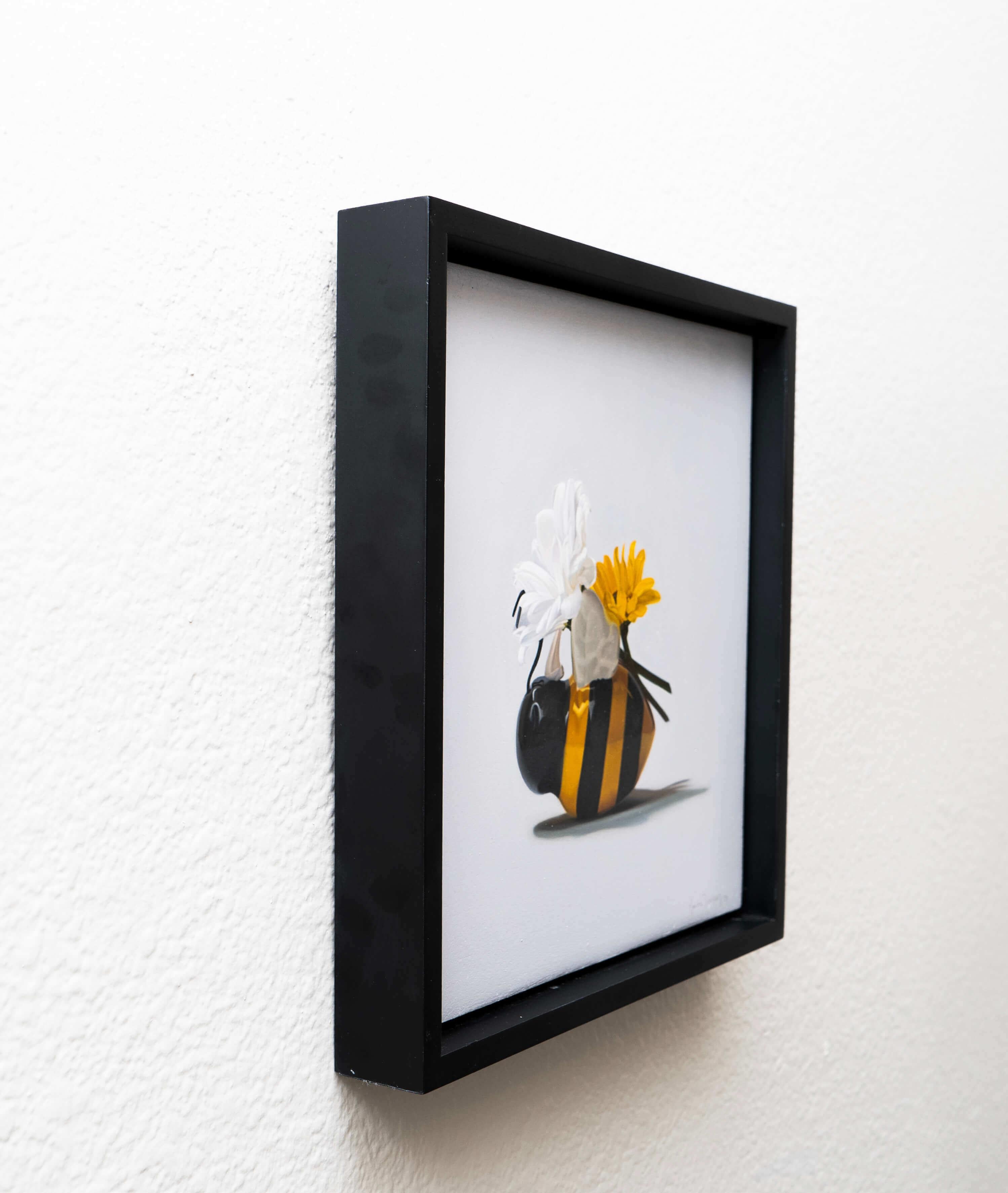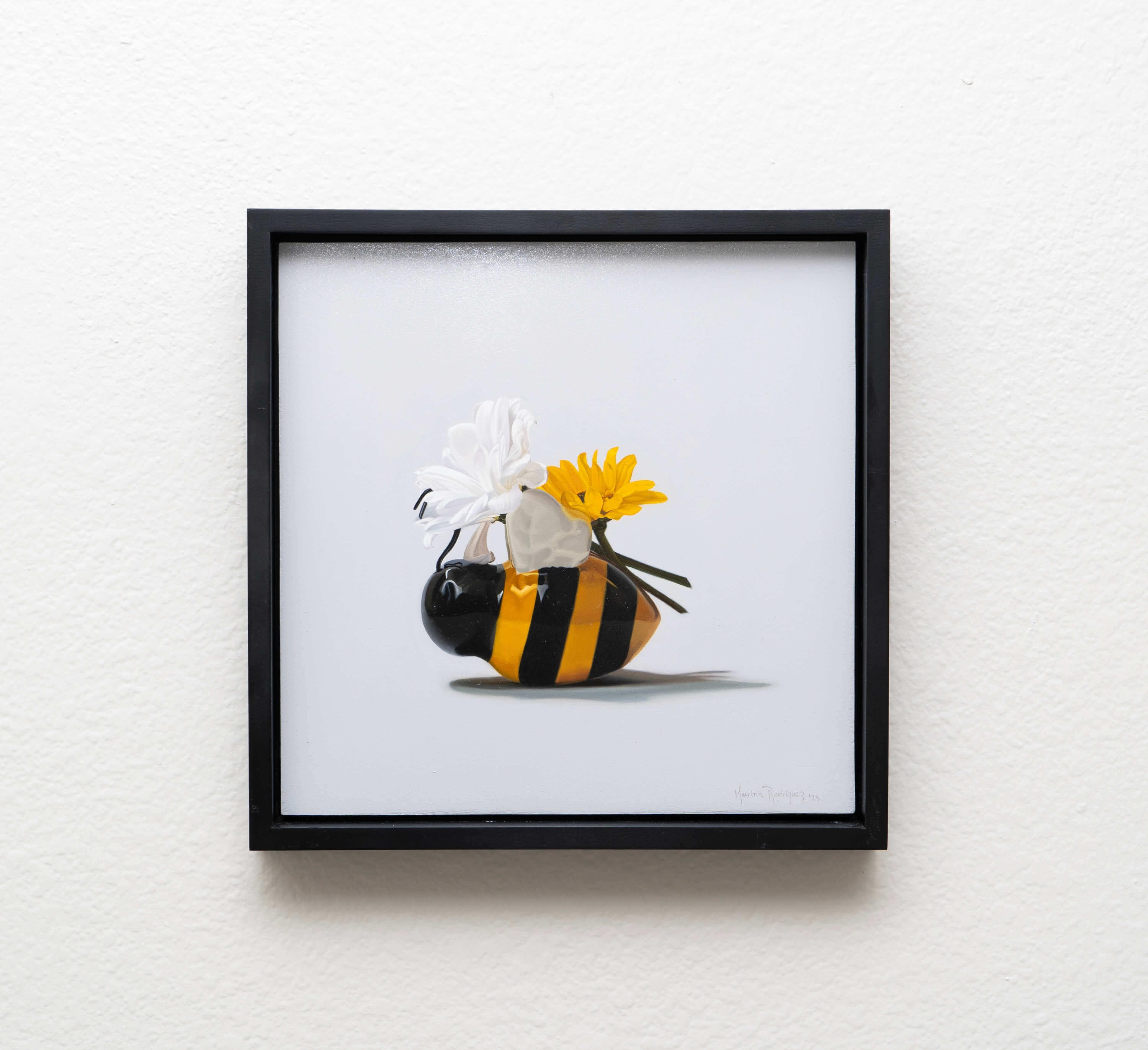 "Die unermüdliche Biene" ist ein exquisit detailliertes zeitgenössisches Stillleben von Karina Rodríguez, das 2025 in Öl auf Holzplatte gemalt wurde. Dieses Kunstwerk ist in einem einfachen, schwarzen Rahmen gerahmt und kann aufgehängt werden.