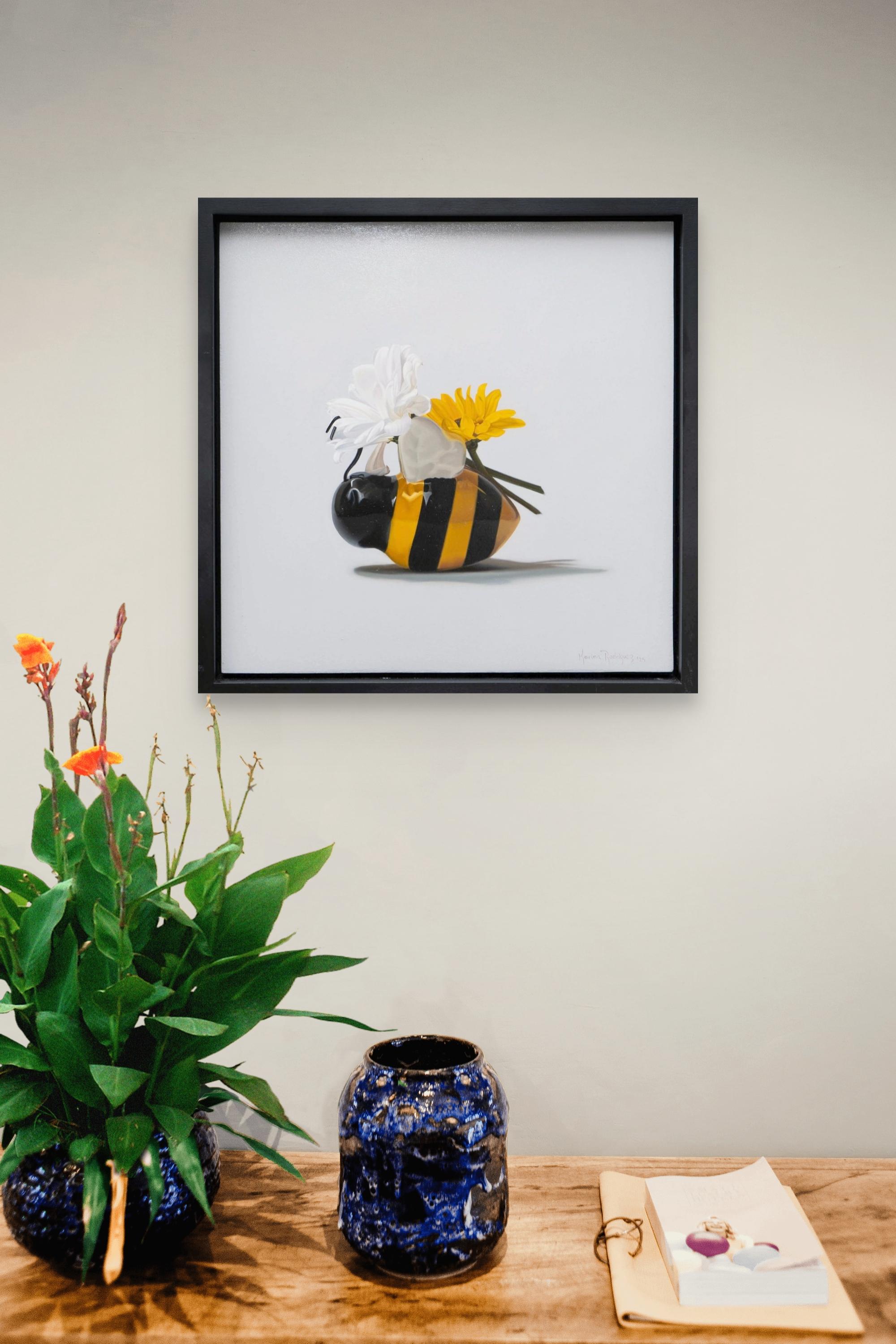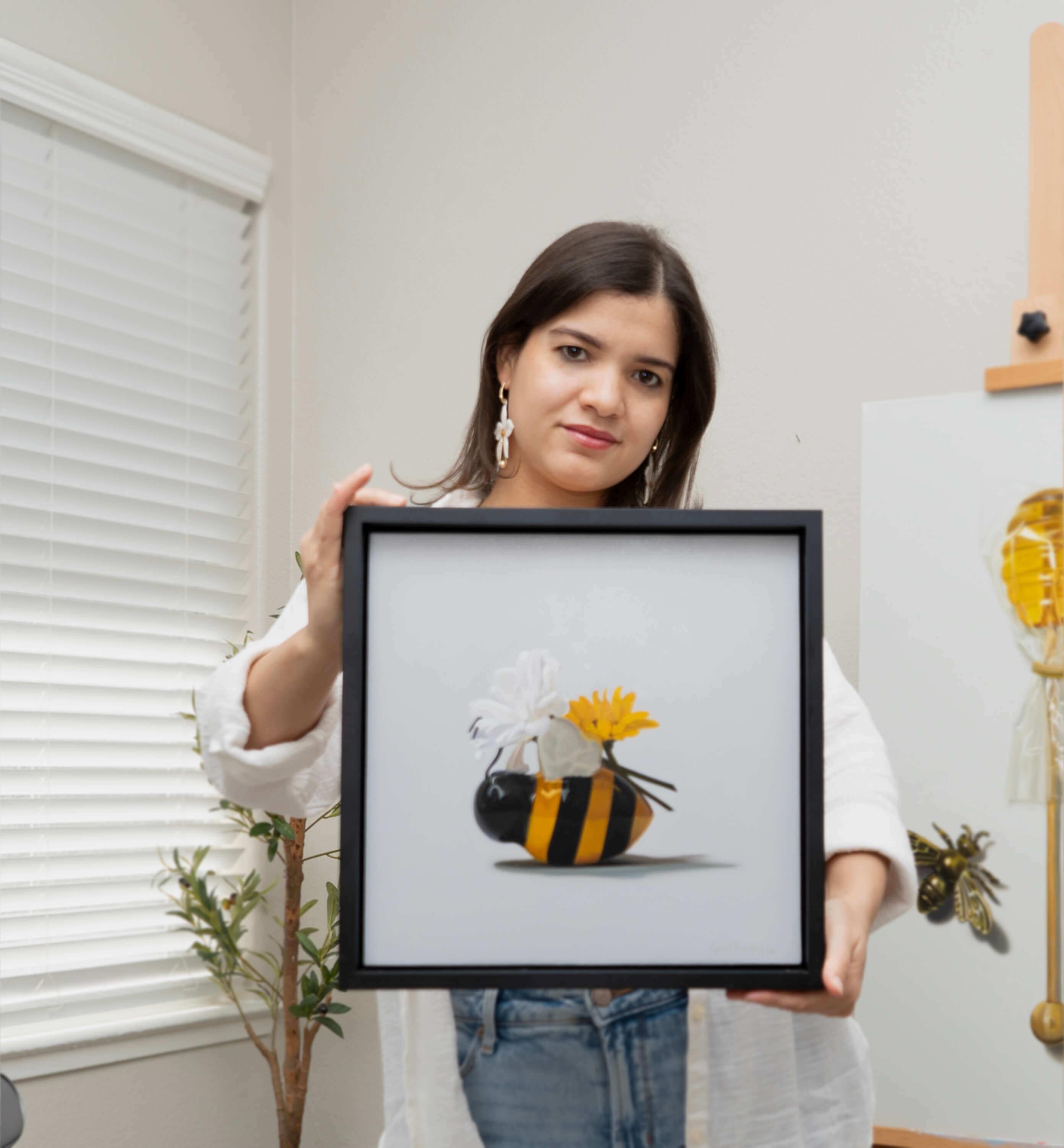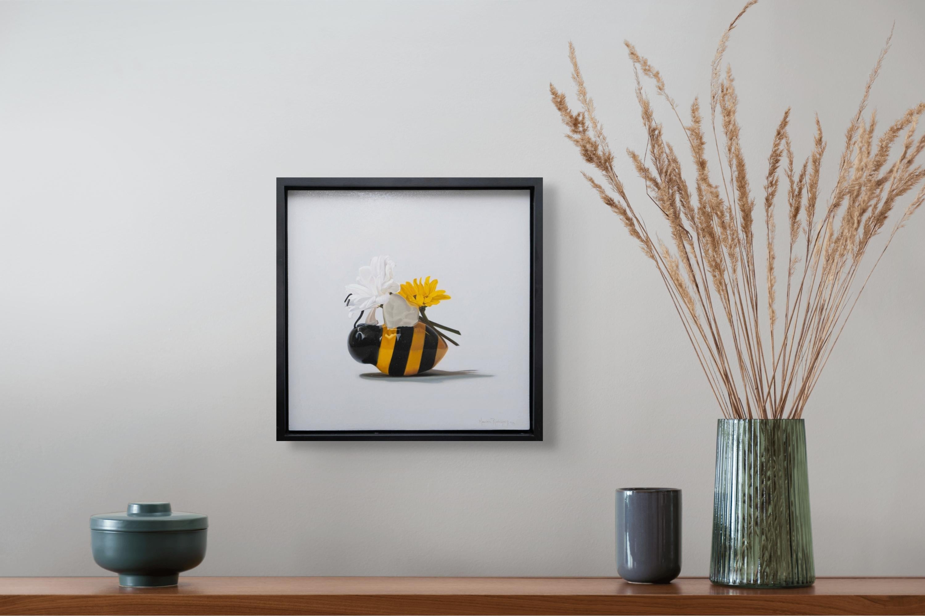 Karina Rodríguez"Die unermüdliche Biene" - Zeitgenössisches Stilleben Ölgemälde auf Holzplatte2025