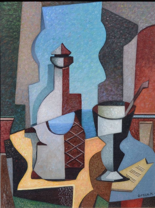 Der in Lettland geborene Maler Maurice Green hat sich in den letzten Jahren bei Kunstsammlern durch seine bemerkenswerten Stillleben-Gemälde einen Namen gemacht, die sowohl Einflüsse des Surrealismus als auch des Kubismus widerspiegeln.