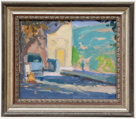Er studierte Bildende Kunst an der Universität Reading und arbeitete später als Gemälderestaurator für den National Trust und andere namhafte Kunden, wobei er sich auf die Restaurierung mittelalterlicher Werke vor Ort spezialisierte. Als Malerin stellte sie im New English Arts Club, in der Royal Society Of British Artists, im Royal Institute of Oil Painters und in der Pastel Society sowie in zahlreichen kommerziellen Galerien aus. Sie lebte in North Walsham, Norfolk. Dieses Werk mit Labels für die Ausstellung des New English Arts Club von 1965.