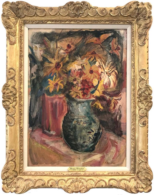 Blumen in einem blauen Krug, Öl auf Leinwand, signiert, um 1933.