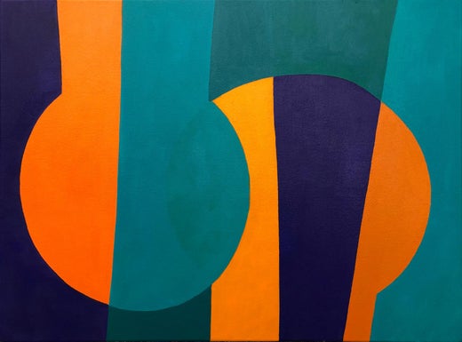 Die geometrischen Abstraktionen von Lilly Muth sind farbenfrohe Werke voller Figuren, die den Raum, die Entfernung, die Form, die Größe und die relative Position der Figuren berücksi...