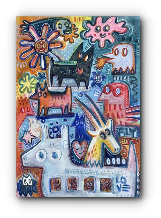 In diesem Original mit Acrylfarbe und Vinyl auf Papier der Art Angler Gallery stellt Jose Palacios einen abstrakten Pop-Art-Stil dar. Freundschaft fühlt sich an wie ein Spielplatz fü...