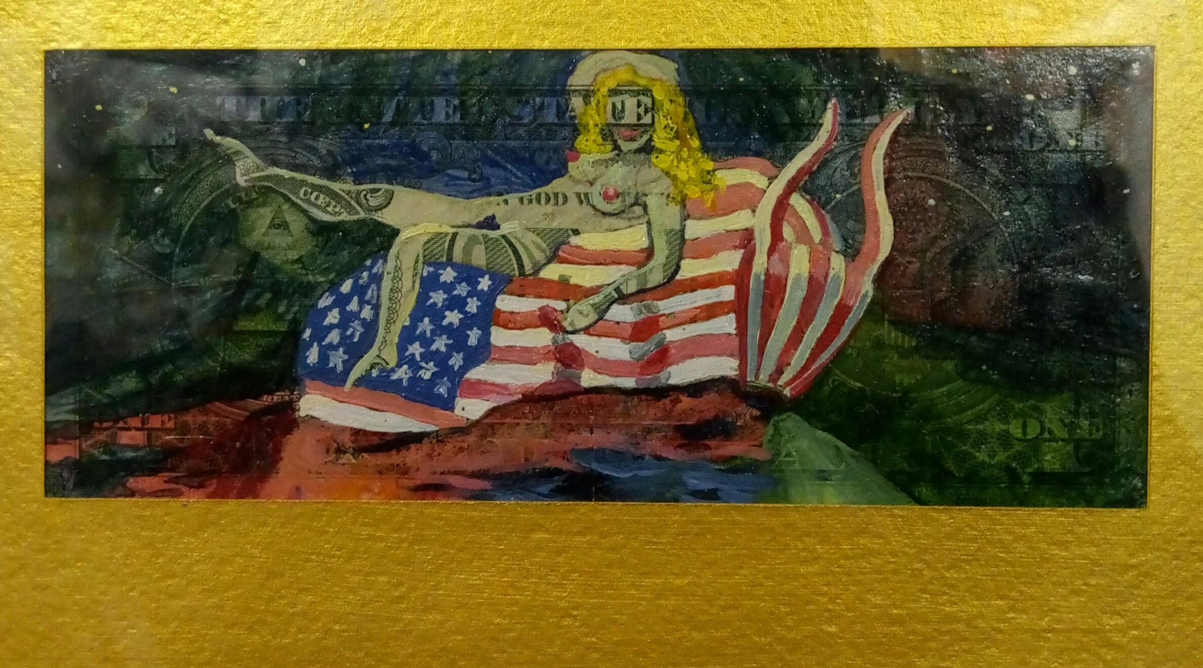 Das Bild wurde auf Geld gemalt. Dies ist eine neue Welt der Kunst. Sie ist in 40 Ländern erschienen. Meine Bilder befinden sich in den Sammlungen von Museen in aller Welt. Dies ist eine großartige Investition in zeitgenössische Kunst. Dieses Gemälde ist ein Sammlerstück.