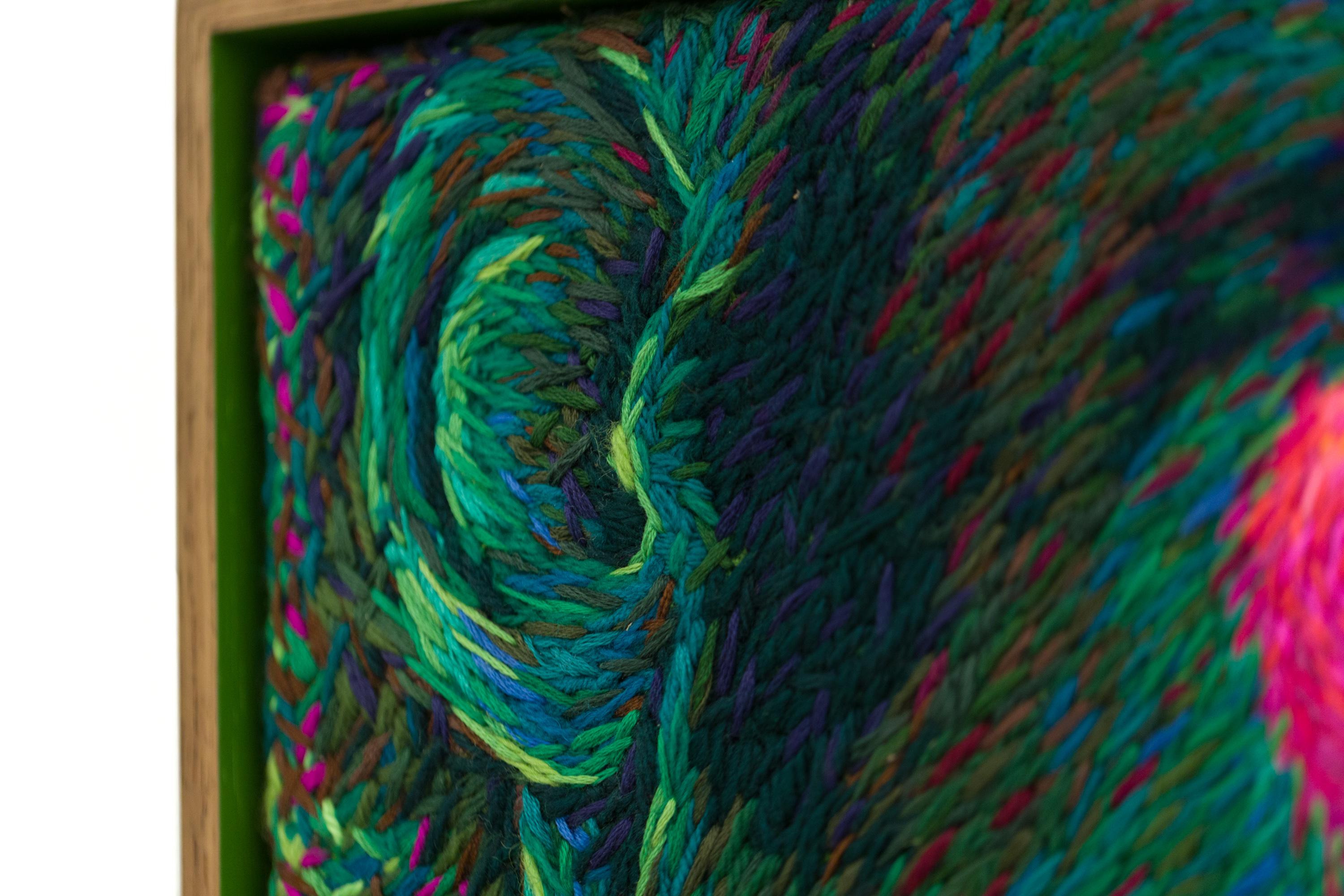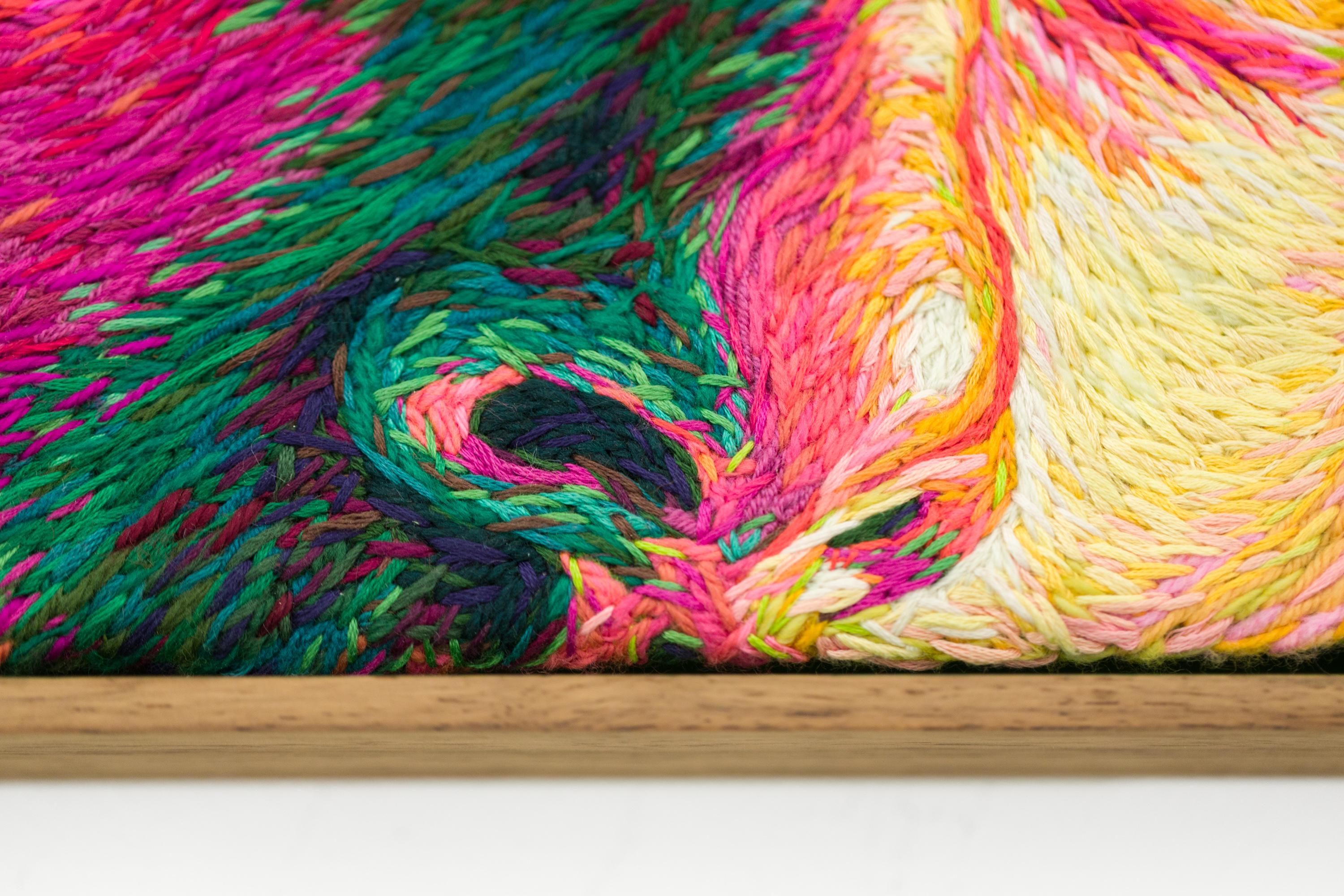 Diese Arbeit mit dem Titel "The Yarn We Spin" ist eine Originalarbeit von Danielle Clough, die Teil ihrer jüngsten Einzelausstellung "Crewel Intentions" ist und stark strukturierte u...