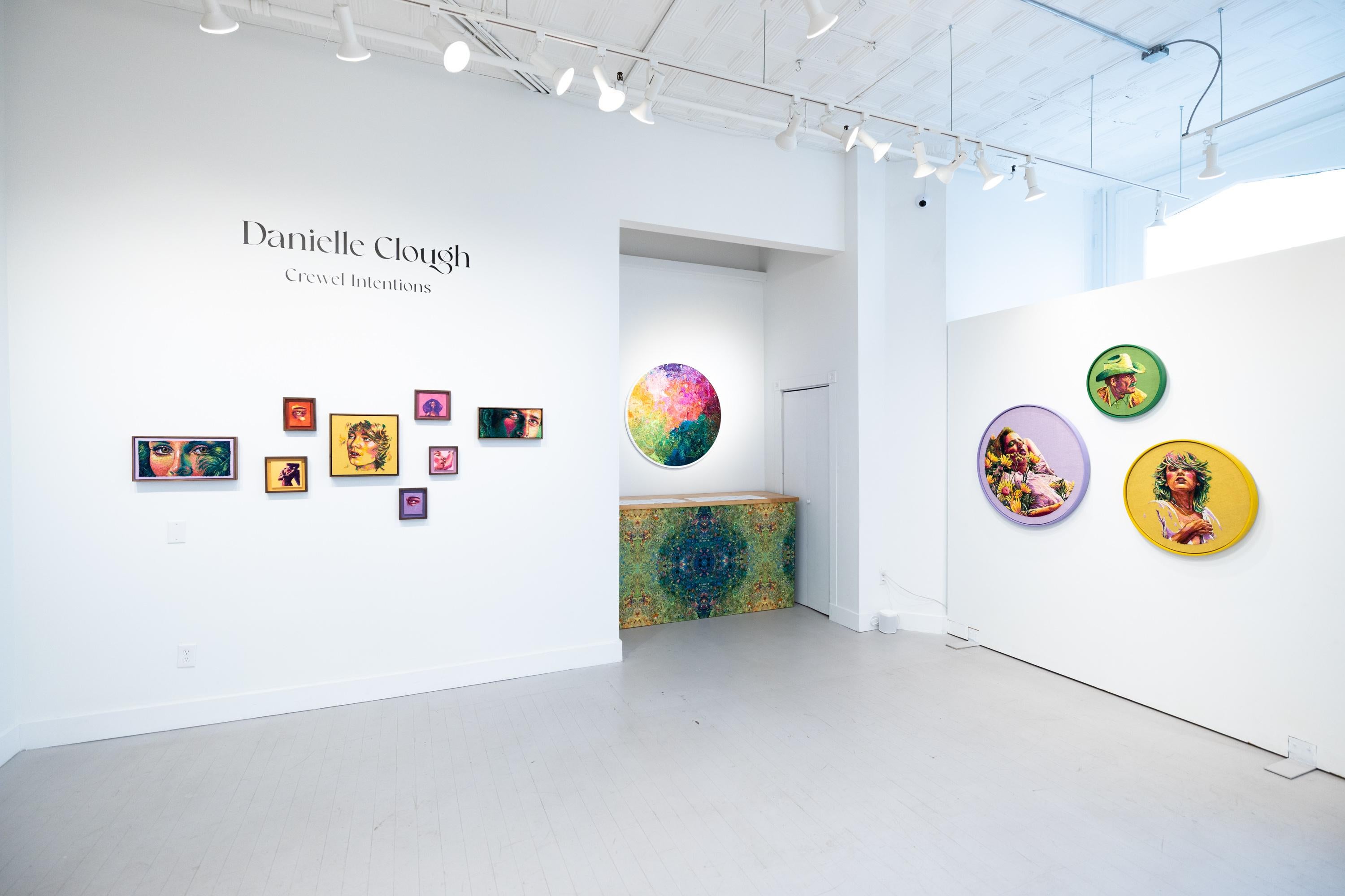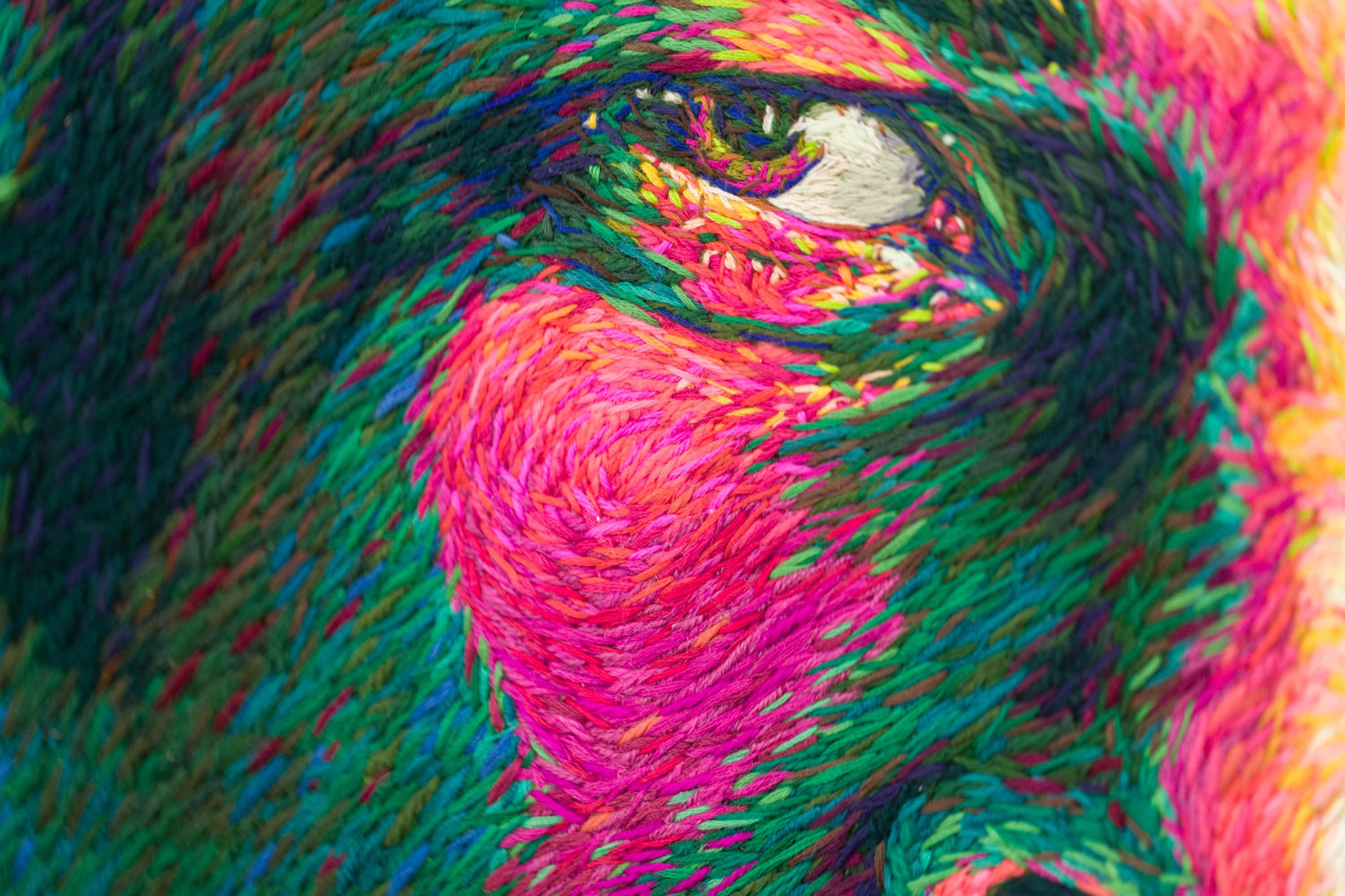 Crewel Intentions wird Cloughs neueste Kollektion von texturierten und gesättigten Porträts vorstellen, die auf Anzeigen in Playboy-Magazinen aus den 1970er Jahren basieren. Ihr wertvolles Archiv wird in 12 gestickten Werken und überdimensionalen Bannern dargestellt, die jedes Detail von Cloughs Kunstwerk zeigen. Clough dekontextualisiert Pinup-Girls und Malboro-Männer aus ihren rauchenden Anzeigen und verwandelt sie in heutige Ikonen, die in perfekten Welten aus gewebten Texturen und Farbtönen leben. Langsam baut sie mit Nadel und Faden Farbflächen auf, um die Anmutung von Filmfotografie und Zeitschriftendruck nachzubilden, wobei die Grenzen zwischen Vintage und Contemporary verschwimmen. Cloughs Wertschätzung für ihr MATERIAL und ihren Gegenstand ermöglicht es ihr, ein Gespräch über anmutiges Altern zu beginnen: Sie feiert überholte Herstellungsprozesse und die Ästhetik, die den Test der Zeit überdauert.