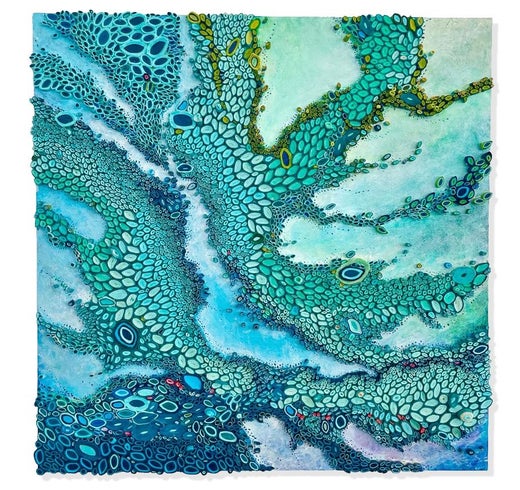 Die Mixed-Media-Künstlerin Amy Genser stellt dimensionale Papiercollagen her. Diese farbenfrohen, strukturierten, einzigartigen Wandarbeiten verkörpern Bewegung und Prozesse. Sie man...