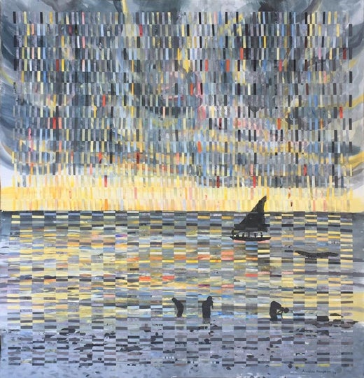 Anushka Kempken ist eine aufstrebende Künstlerin aus Kapstadt und hat einen Honours-Abschluss in Fine Art. Sie erforscht verschiedene Möglichkeiten der Manipulation von Oberflächenmaterialien durch Webtechniken, die Mehrdeutigkeit und Tiefe erzeugen. Anushka sieht ihre Arbeit als eine Fortsetzung der organischen Harmonie in der Natur und im Leben. Ihr künstlerischer Prozess ist eine Reihe von intuitiven Entscheidungen, die zu einem Chaos und einer Harmonie von individuellen Geschichten führen, die sich zusammenfügen. Ein Prozess von Chaos und Ordnung. Für ihre Webarbeiten malt sie mehrere Kunstwerke auf Papier, bevor sie sie zerschneidet, um ein endgültiges Bild zu schaffen. In einer Reihe von Kunstwerken kann man sehen, dass die Webarbeiten alle Teile voneinander tragen. In der sich wiederholenden Bewegung des Schneidens und Webens entdeckt Anushka einen meditativen Raum, durch den sie