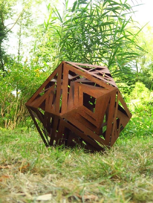 Kein normaler Kamin oder eine Feuerstelle. Diese hochkarätige Skulptur aus rohem Stahl ist ein echter Blickfang in jedem Außenbereich. An kalten Abenden erfüllt er perfekt seine Funk...