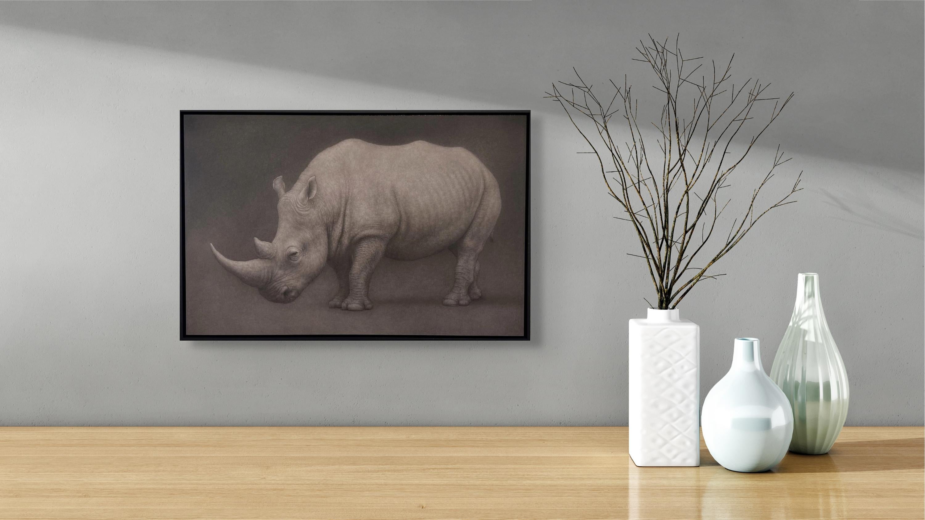 Rhinoceros (State II), Wildtierkunst, Realismus-Kunst, Schwarz-Weiß- und Goldkunst