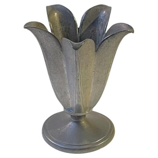 Der dänische Designer und Silberschmied Just Andersen hat nicht nur eine Legierung erfunden, die die Produktionskosten für die Herstellung von Bronze, Kupfer und Messing drastisch senkt, sondern auch skulpturale Möbel, Accessoires und Dekorationsgegenstände geschaffen, die heute sehr begehrt sind und gesammelt werden. Disko, eine Legierung aus Blei, Zinn und Antimon, weist ähnliche Eigenschaften wie Messing auf, und viele der antiken Kerzenständer, Vasen und Gefäße und andere Dekorationsobjekte von Andersen - hergestellt im Jugendstil, skandinavischen neoklassischen und Art Deco - enthalten dieses Material.