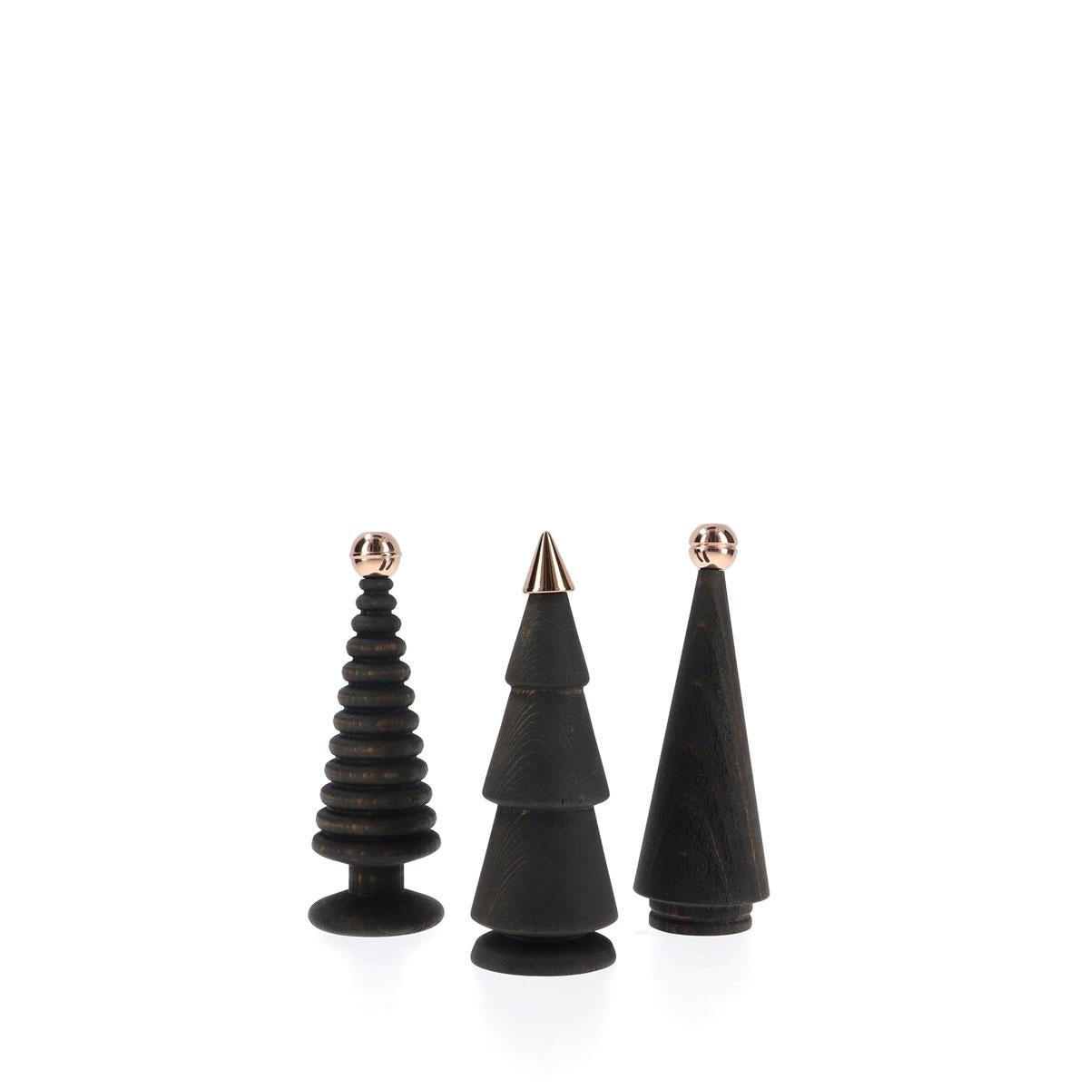 Holz-Weihnachtsbaum-Set - Braunes Zedernholz mit Messingspitzen, mittelgroß