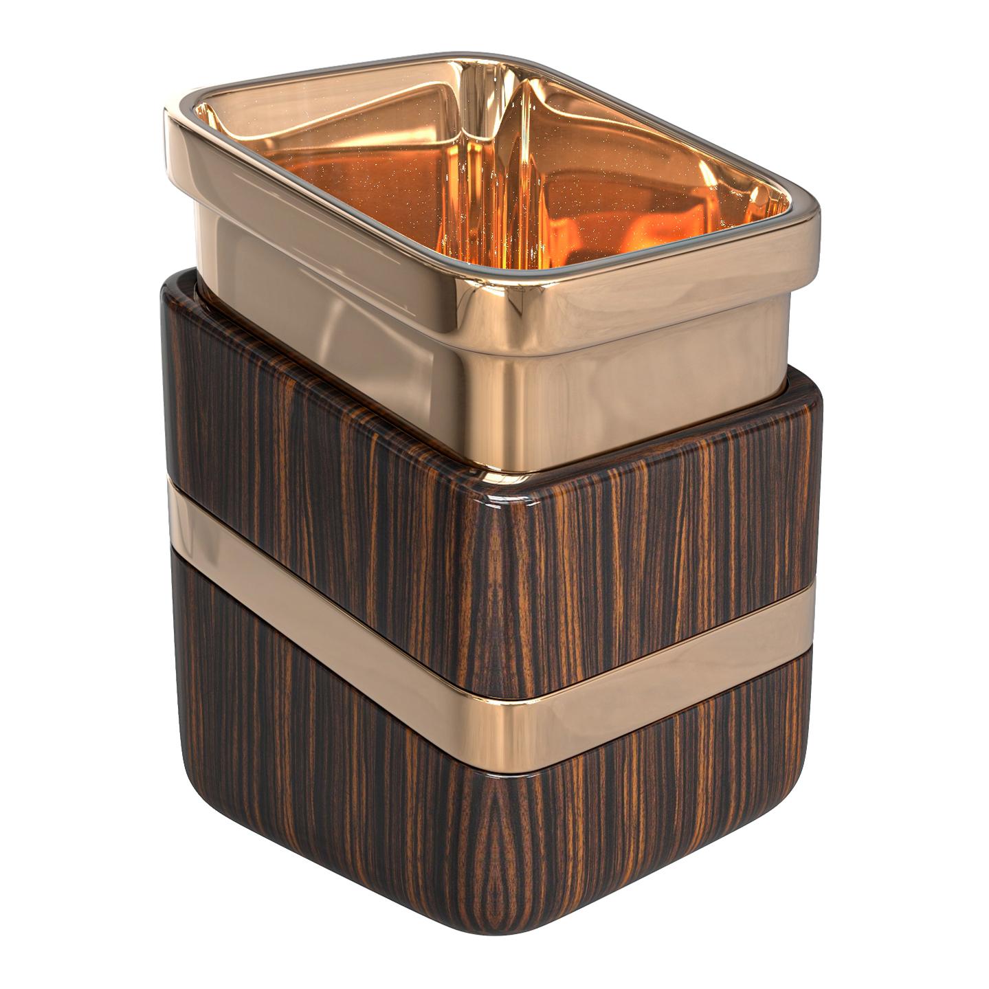 „Arcadia“-Eiskübel mit Bronze und fein gearbeitetem Holz, handgefertigt, Istanbul