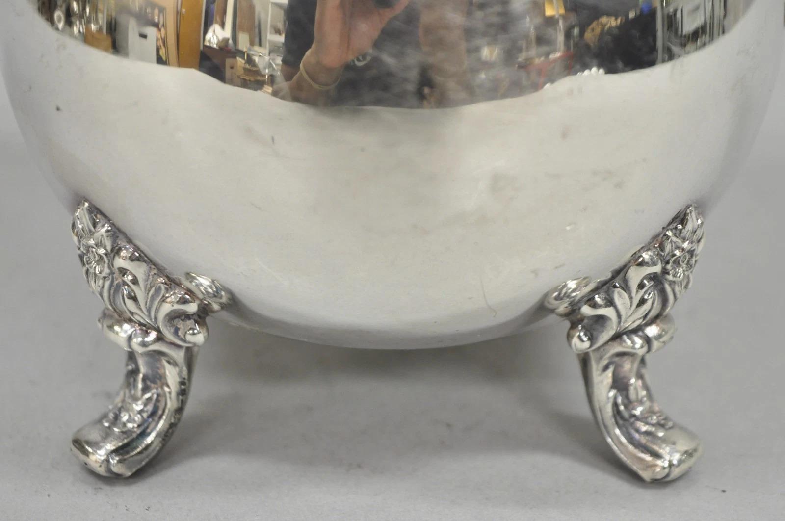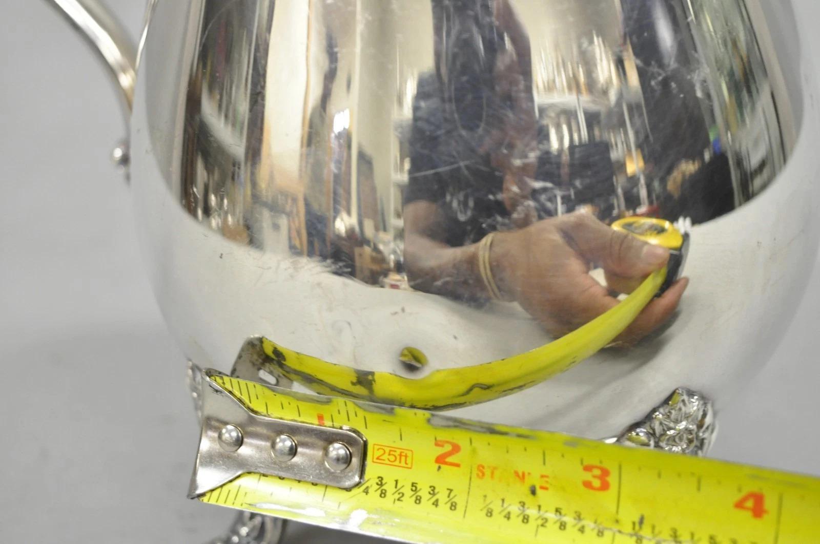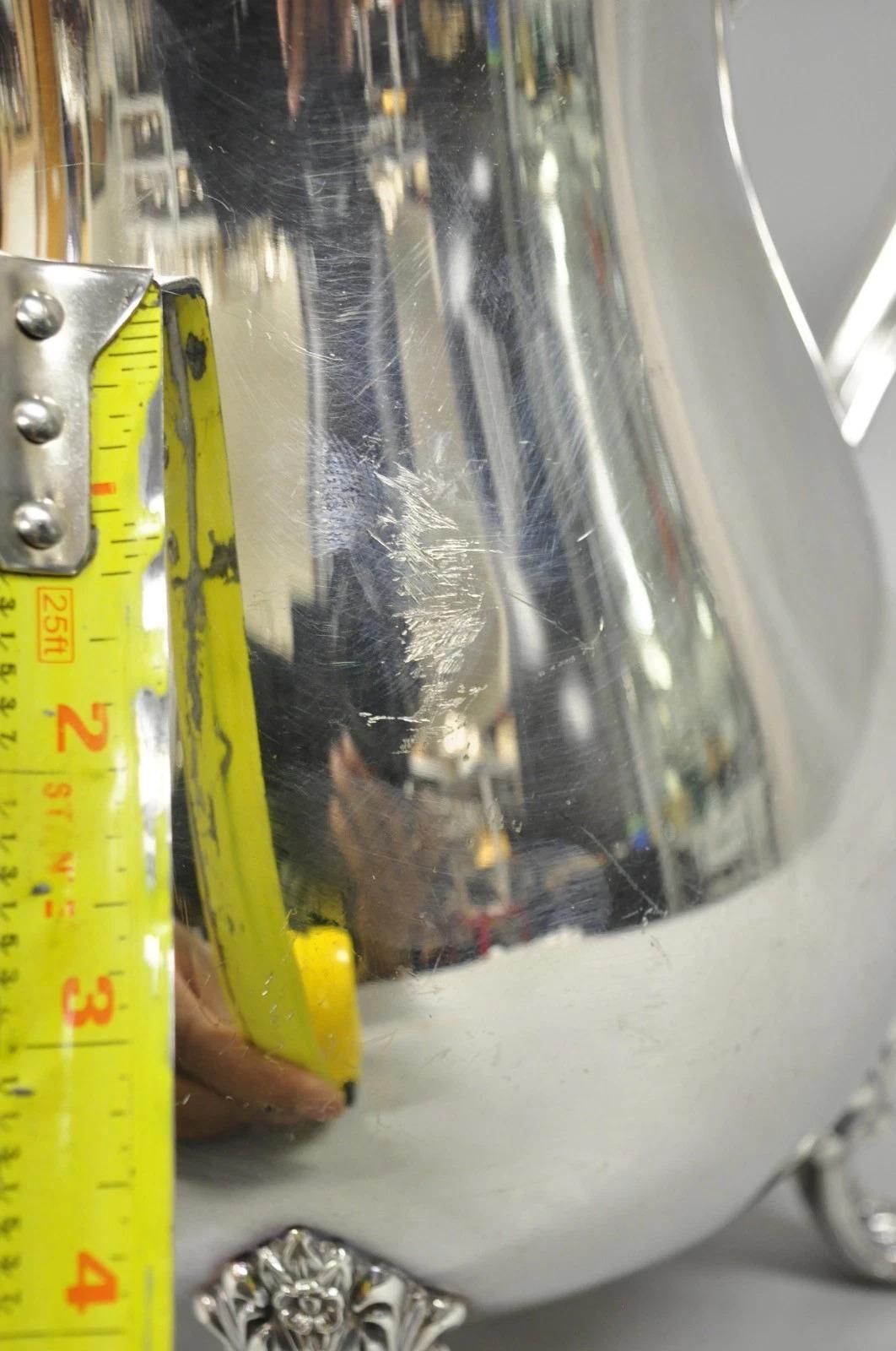 Vintage Crescent Victorian Silver Plated Bulbous Water Pitcher on Paw Feet. CIRCA Anfang des 20. Jahrhunderts. Abmessungen: 10" H x 9" B x 6" T.