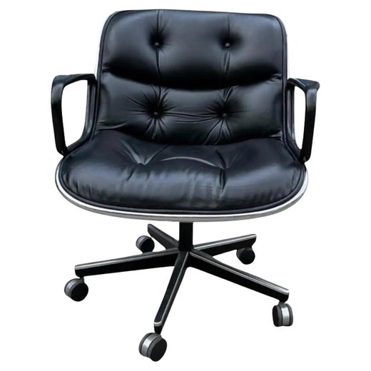 Pollocks 657 Sling Chair für Knoll debütierte 1960 und brachte ihm einen umfangreichen Vertrag mit der Marke ein. Dies ebnete den Weg für seinen berühmtesten Entwurf: den Chefsessel. Der 1963 eingeführte Chefsessel wurde zu einem der meistverkauften und bekanntesten Bürostühle der Geschichte. Pollock arbeitete fünf Jahre lang an der Perfektionierung des Sitzes, und seine patentierte Felgentechnik ermöglichte eine einfache Montage, was zu seinem Erfolg und seiner Beliebtheit beitrug.