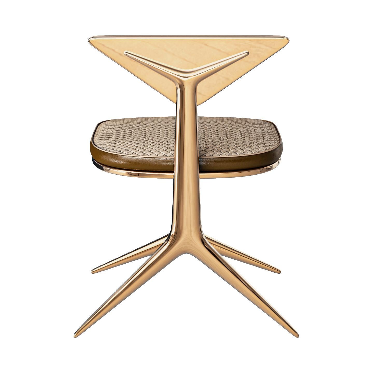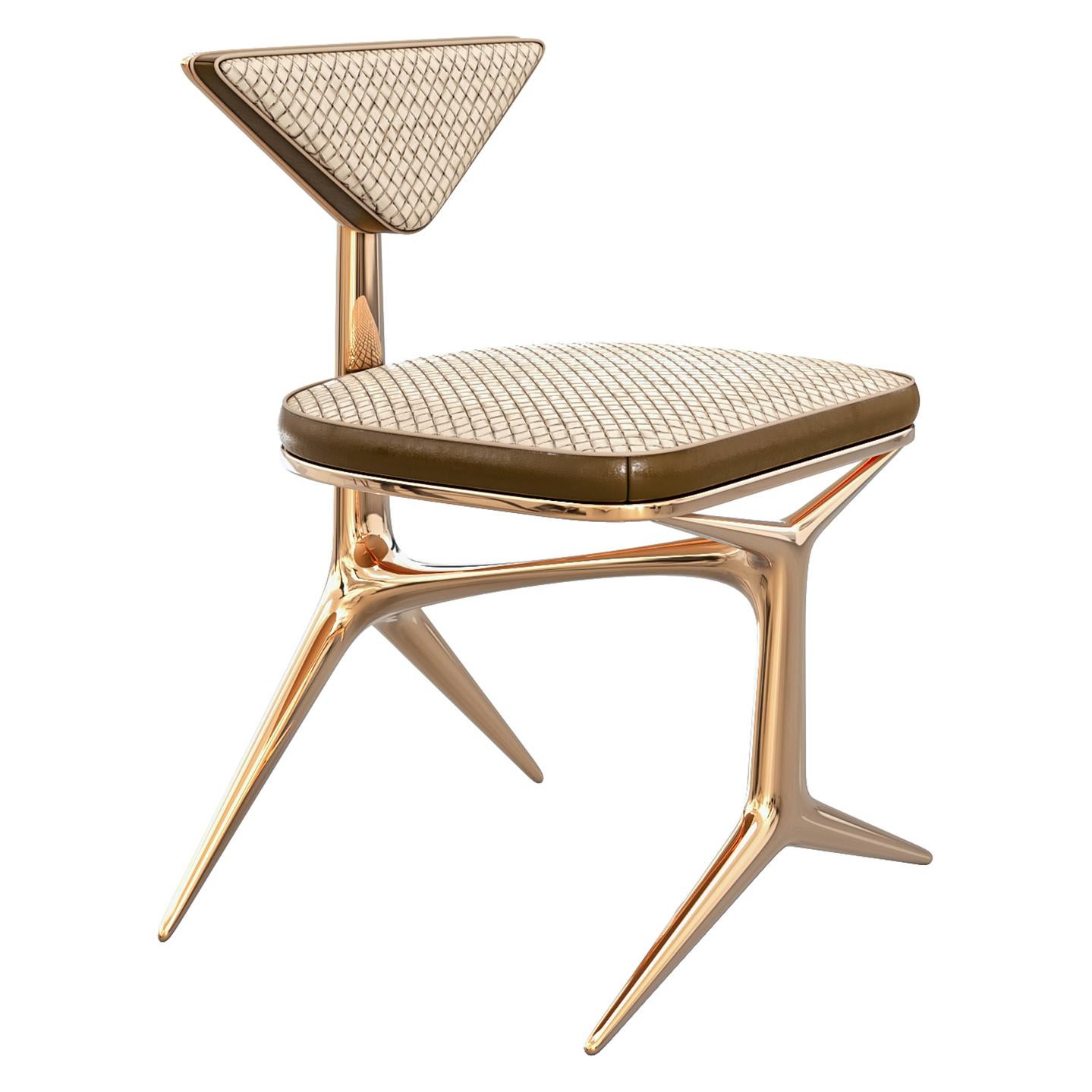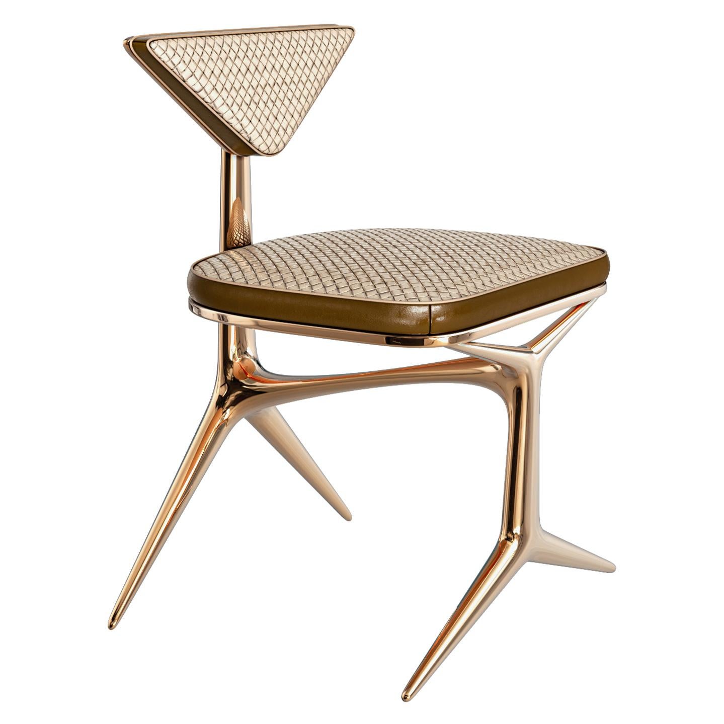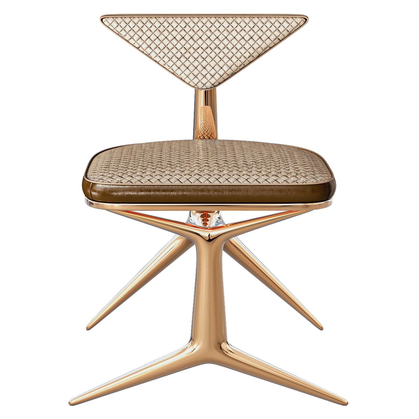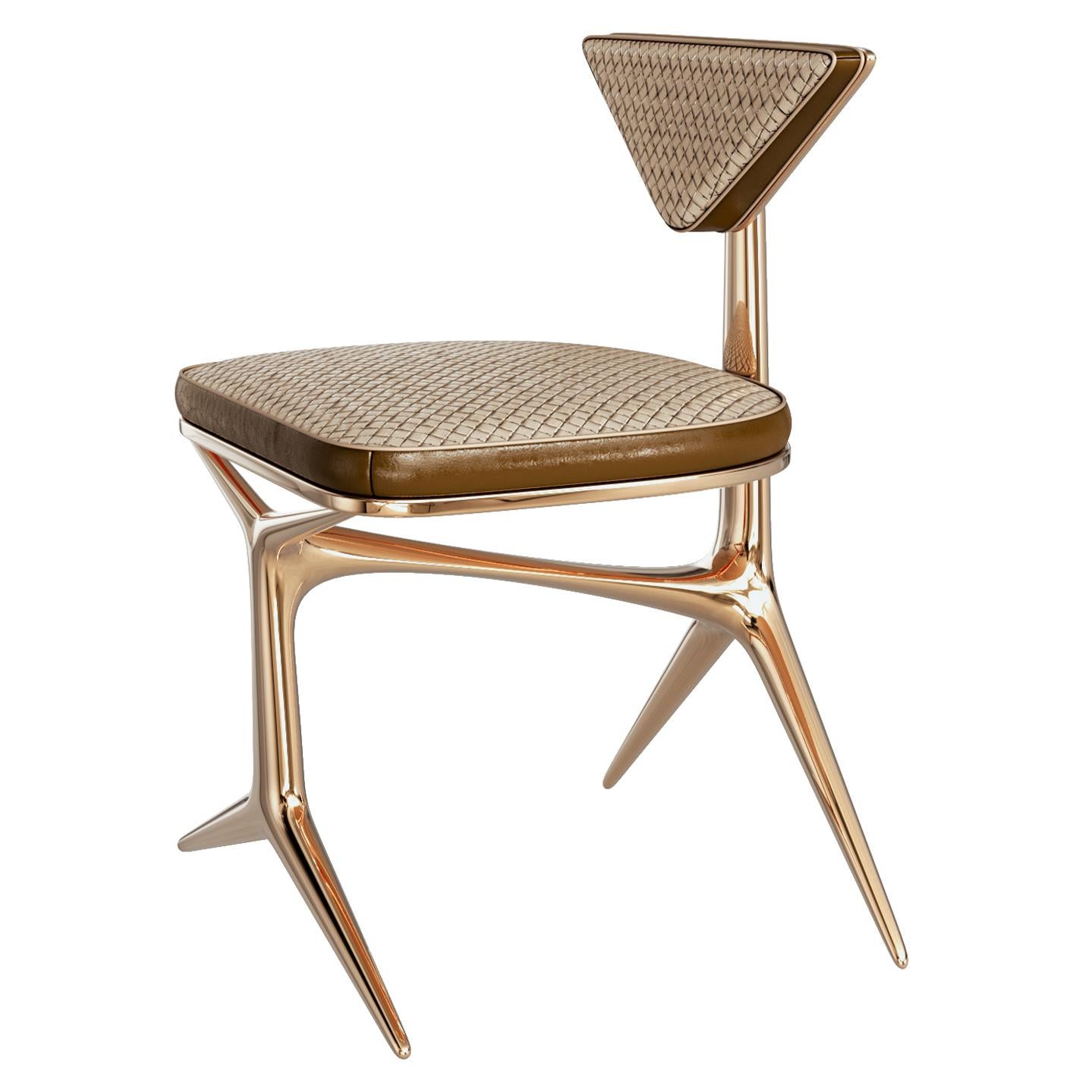 Stuhl „Stella“ mit Bronze und exklusivem gewebtem Leder, maßgeschneidert, Istanbul