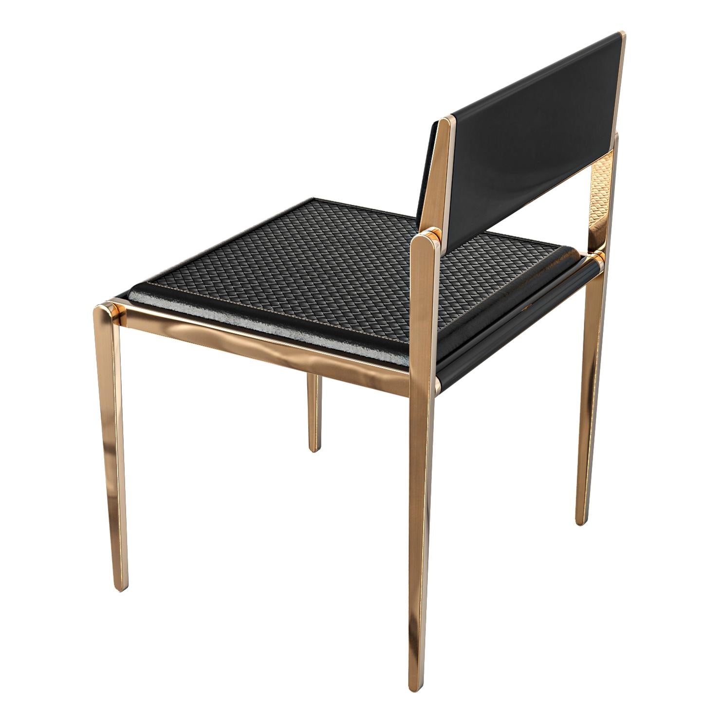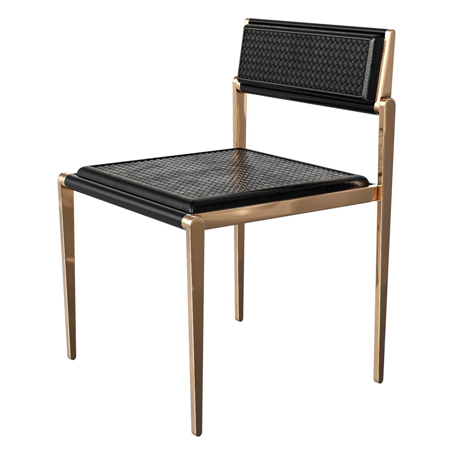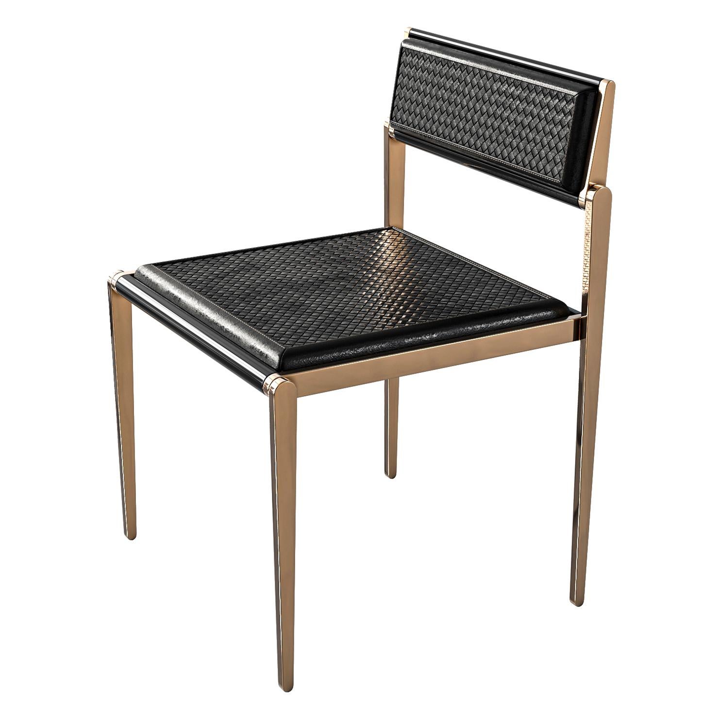 Stuhl „Stella“ mit Bronze und exklusivem gewebtem Leder, maßgeschneidert, Istanbul