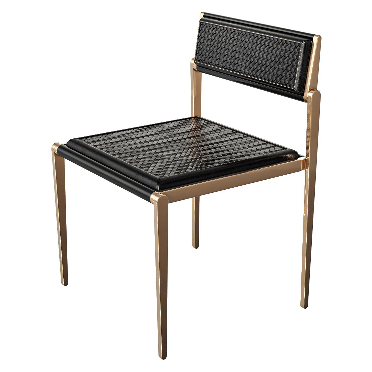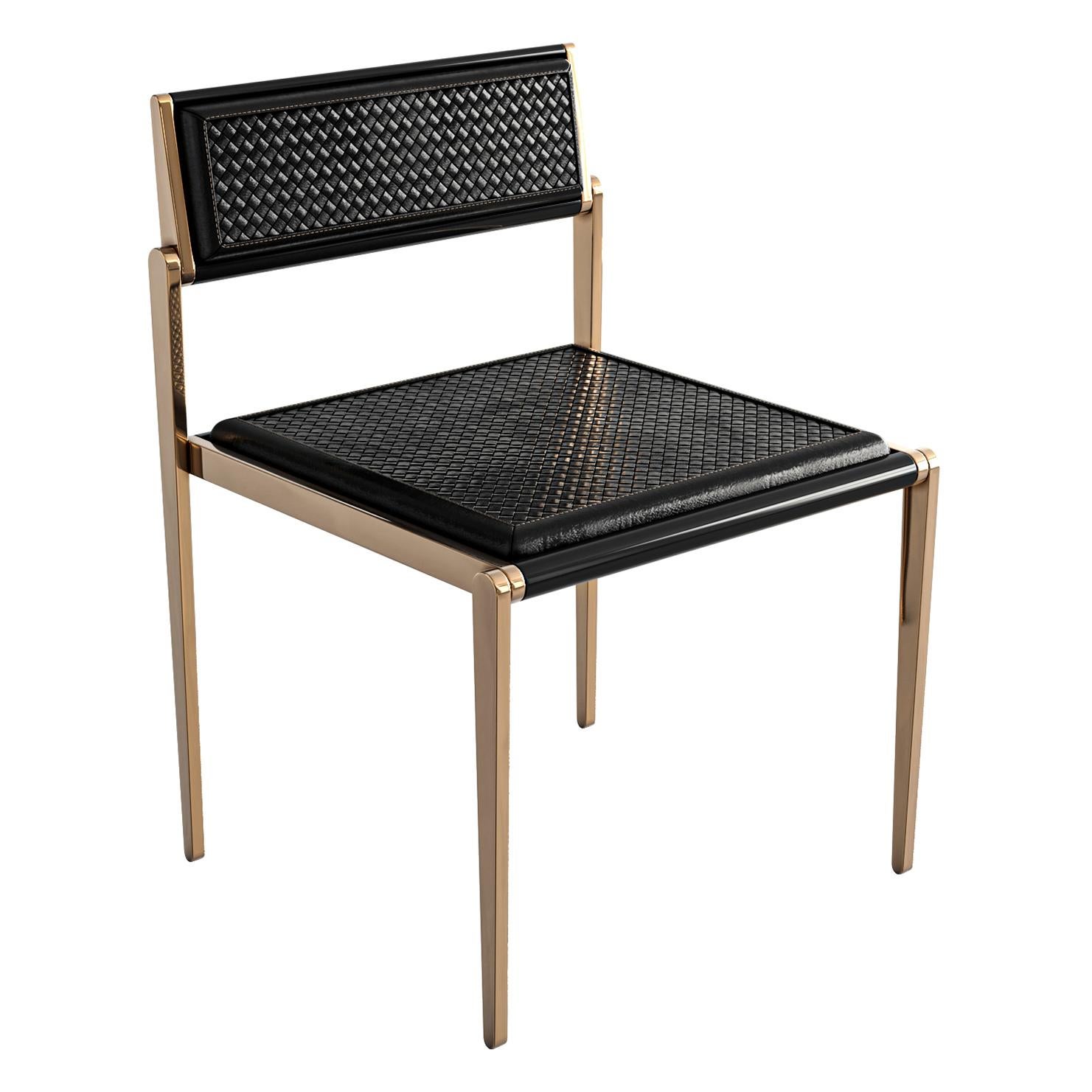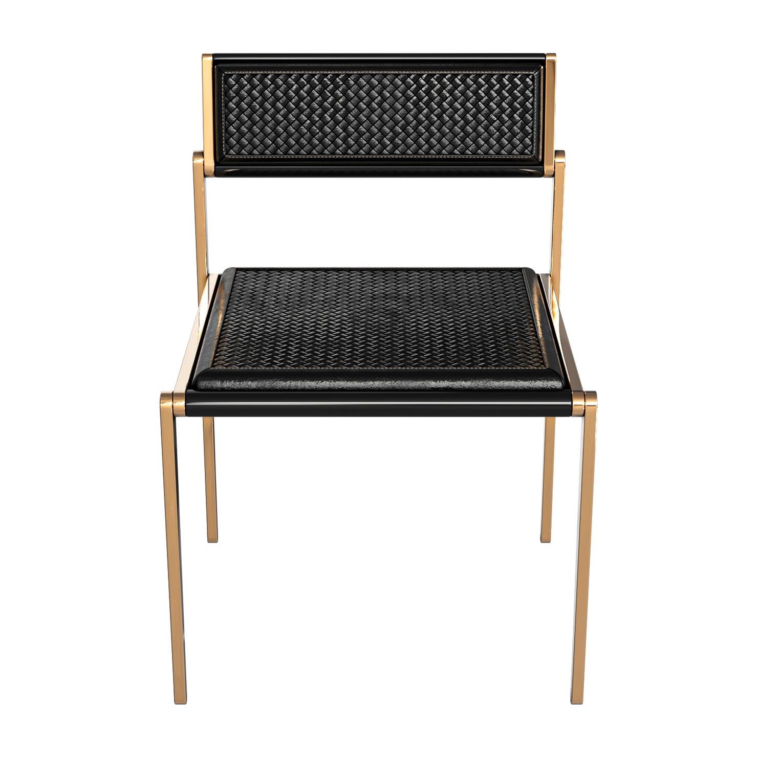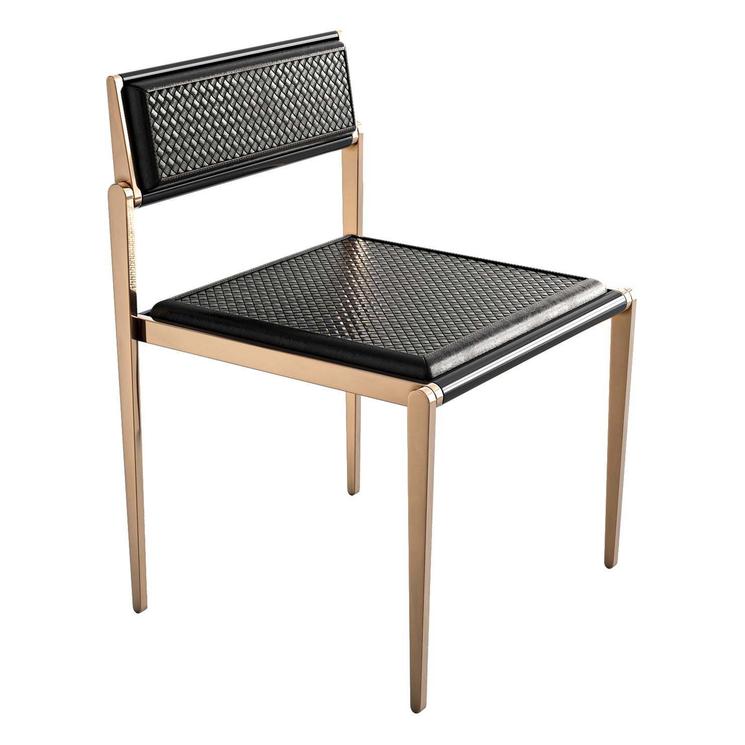 Stuhl „Stella“ mit Bronze und exklusivem gewebtem Leder, maßgeschneidert, Istanbul