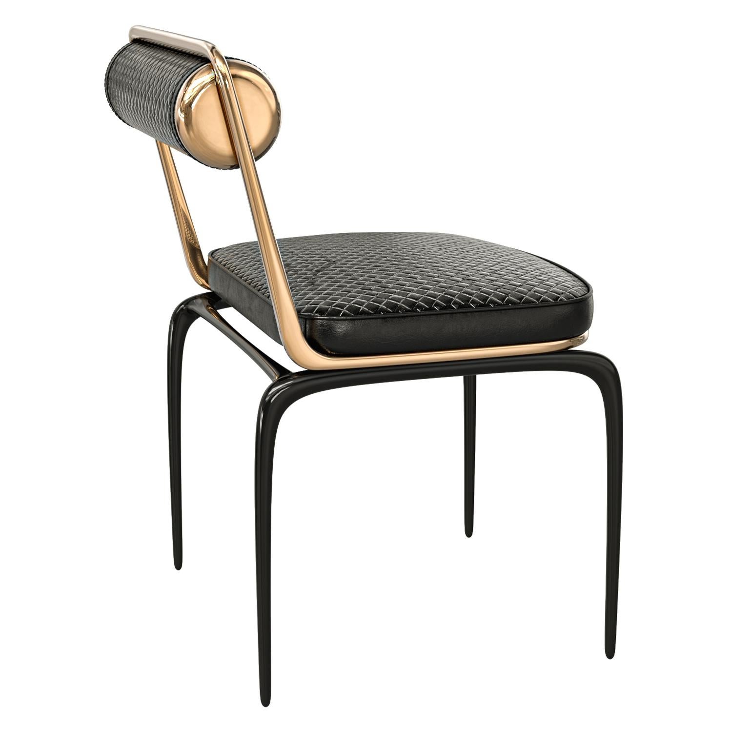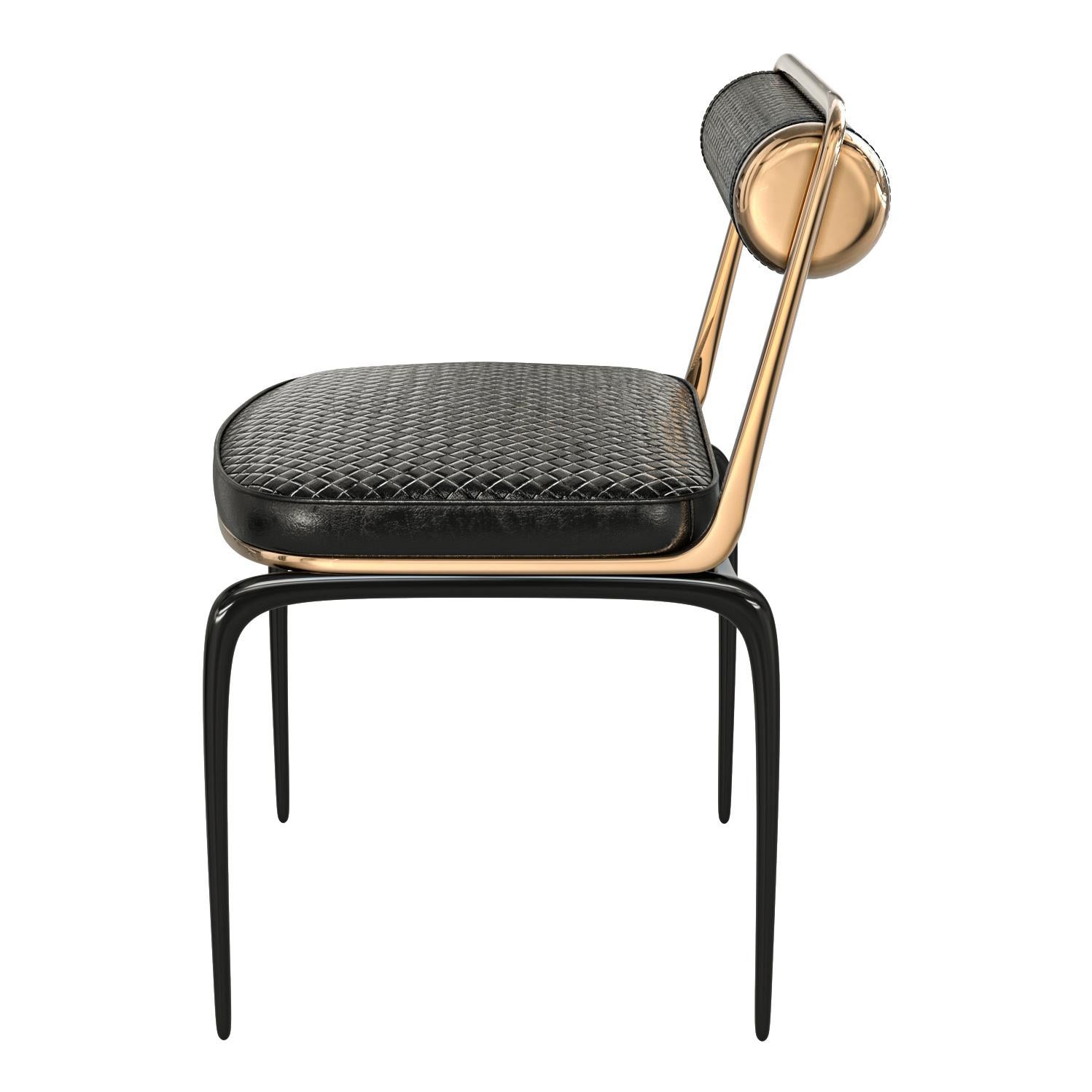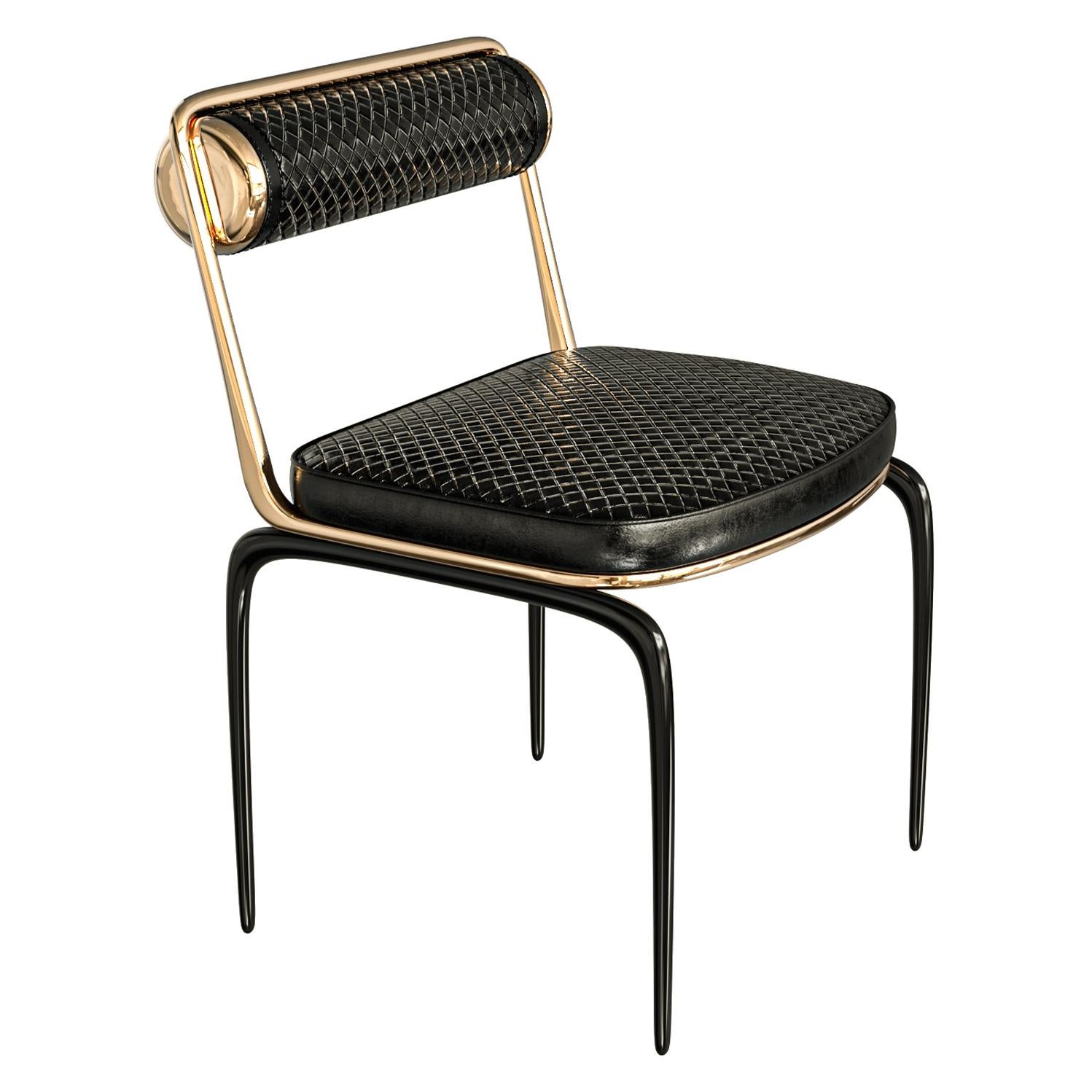 Stuhl „Stella“ mit Bronze und exklusivem gewebtem Leder, maßgeschneidert, Istanbul