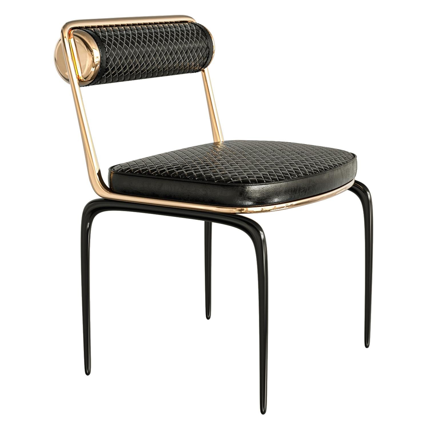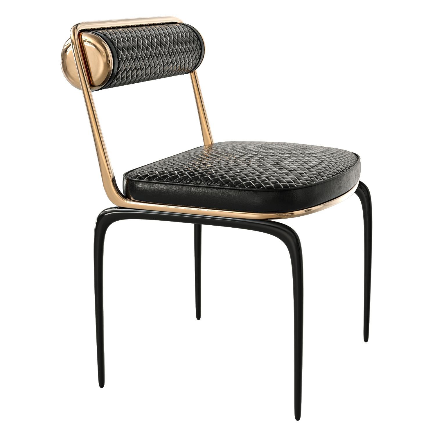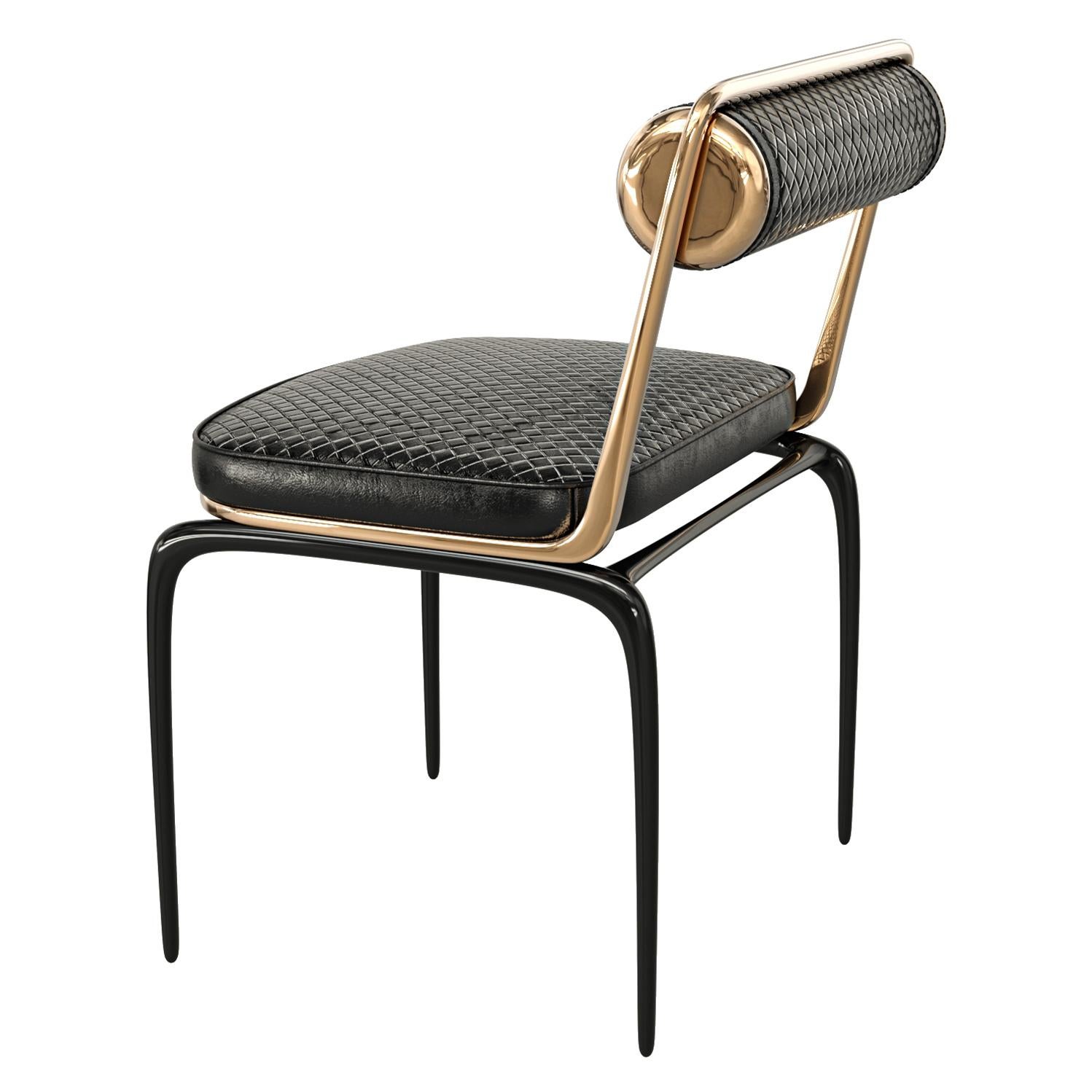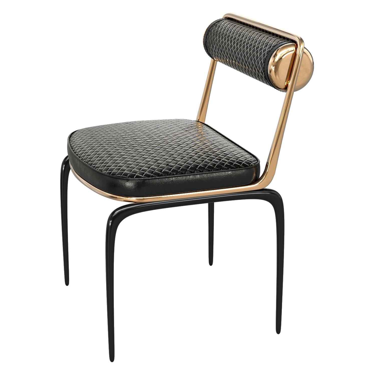 Stuhl „Stella“ mit Bronze und exklusivem gewebtem Leder, maßgeschneidert, Istanbul