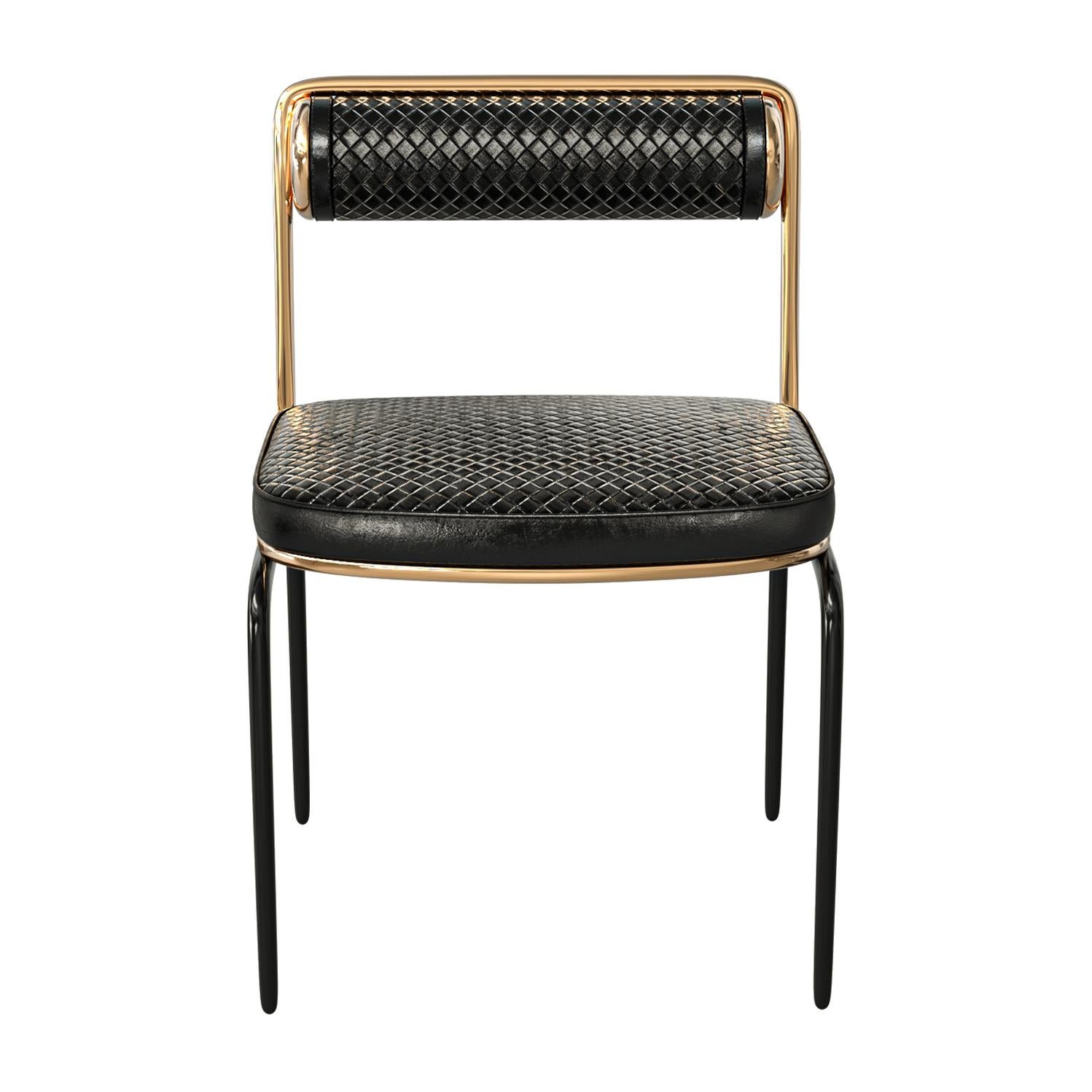 "Stella" Stuhl mit Bronze und exklusivem gewebtem Leder, handgefertigt, Istanbul.