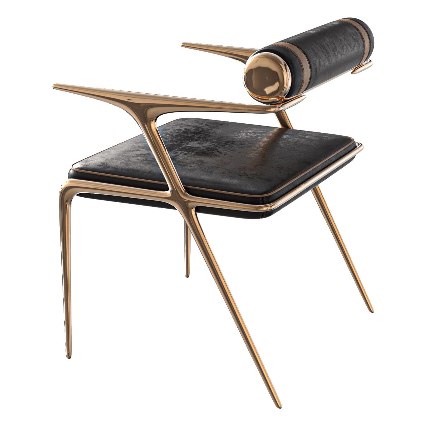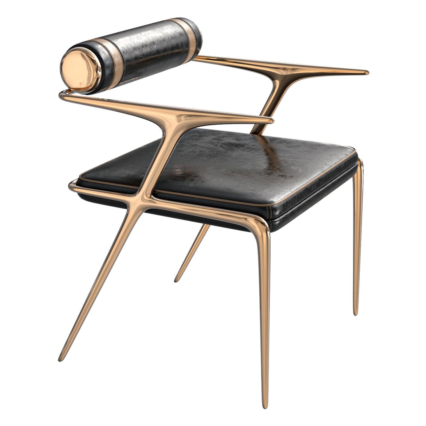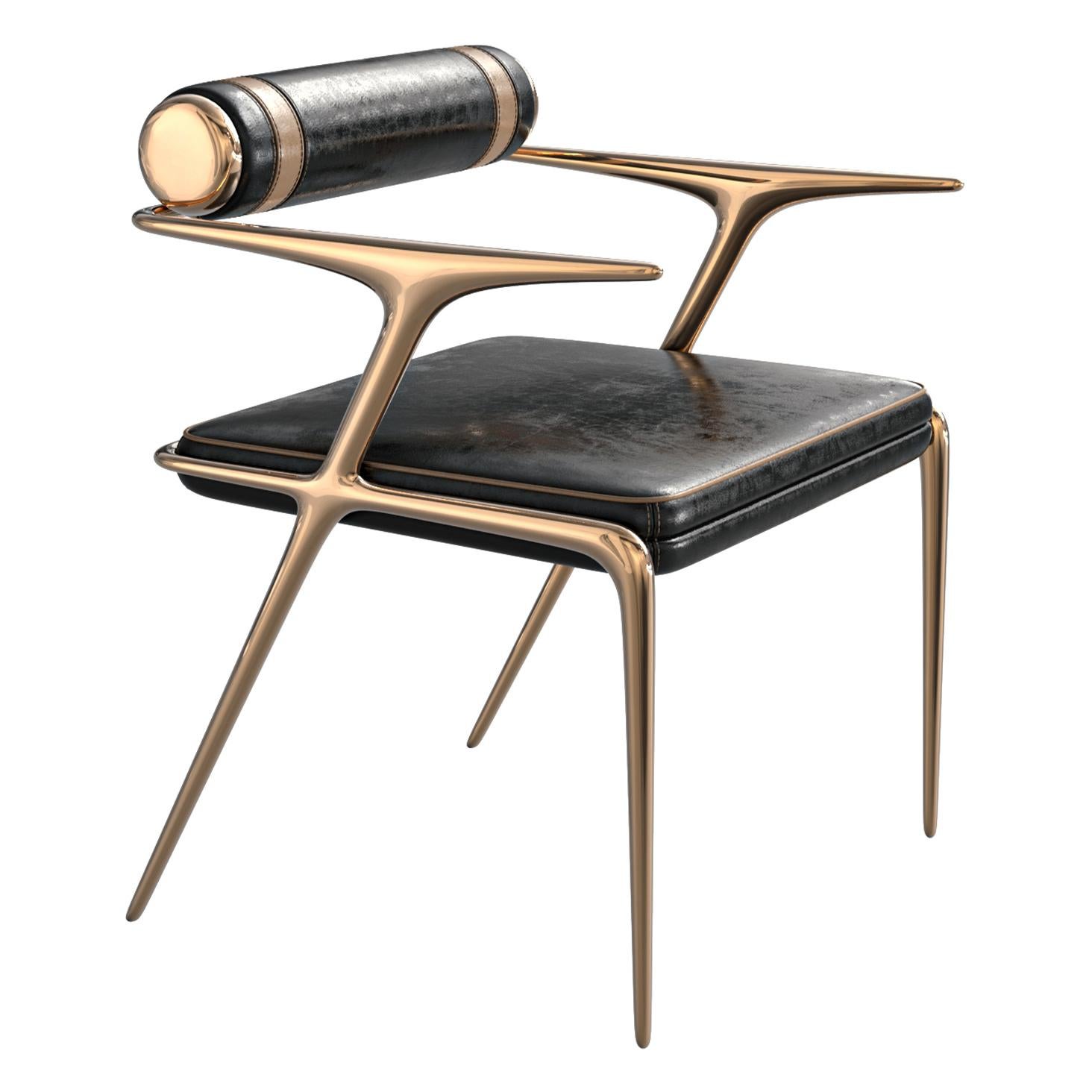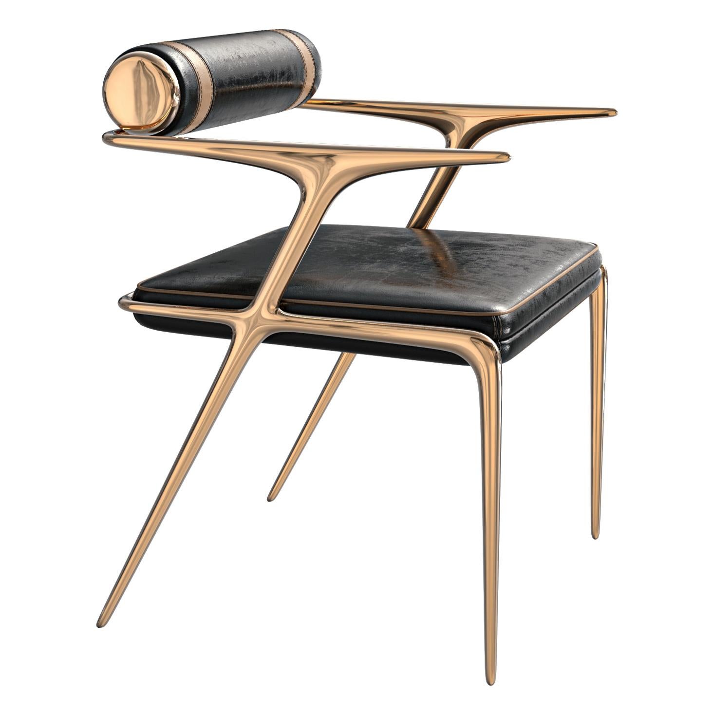 Stuhl "Grecale", mit Bronze und Edelstahl, maßgeschneidertes Leder, Istanbul