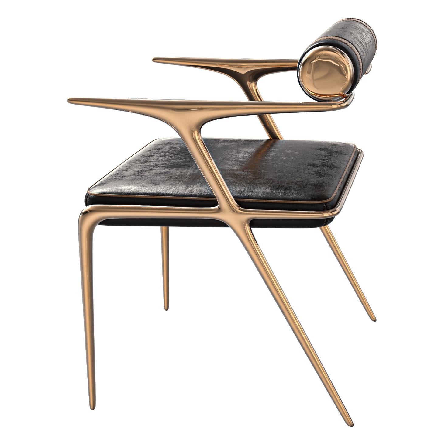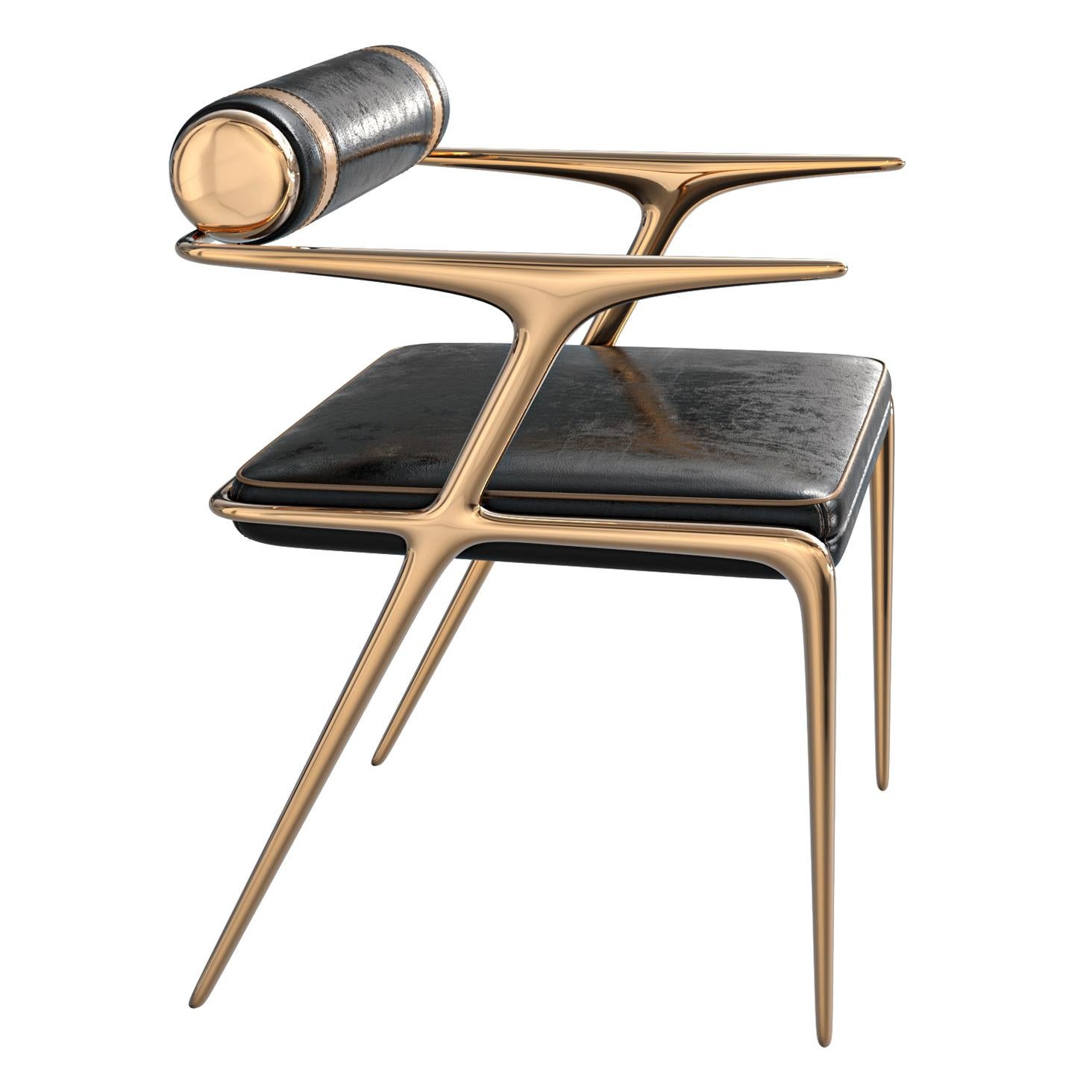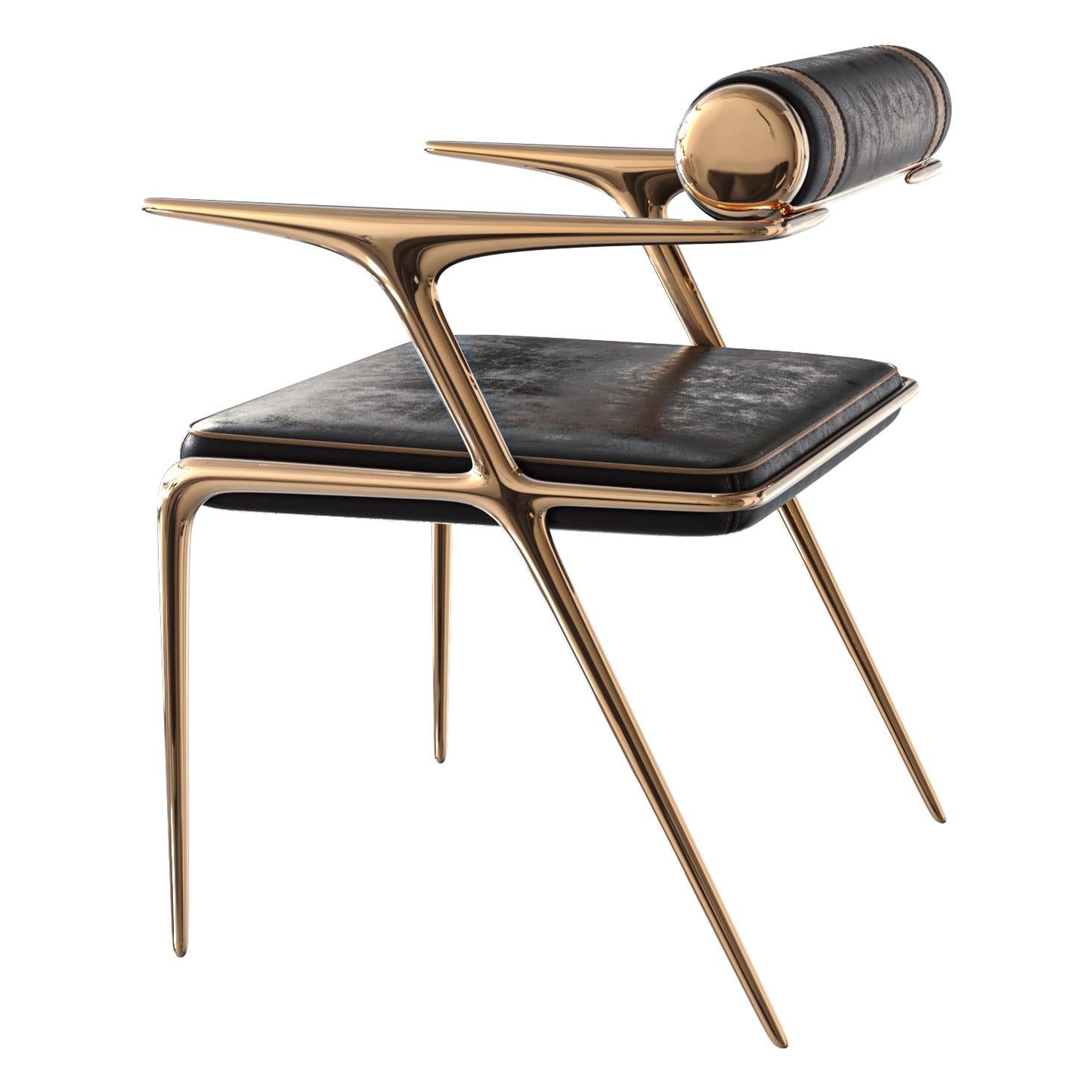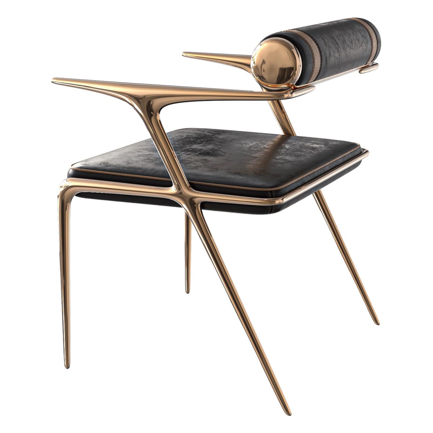 Stuhl "Grecale", mit Bronze und Edelstahl, maßgeschneidertes Leder, Istanbul