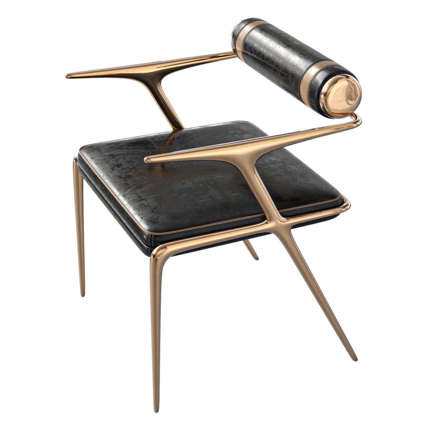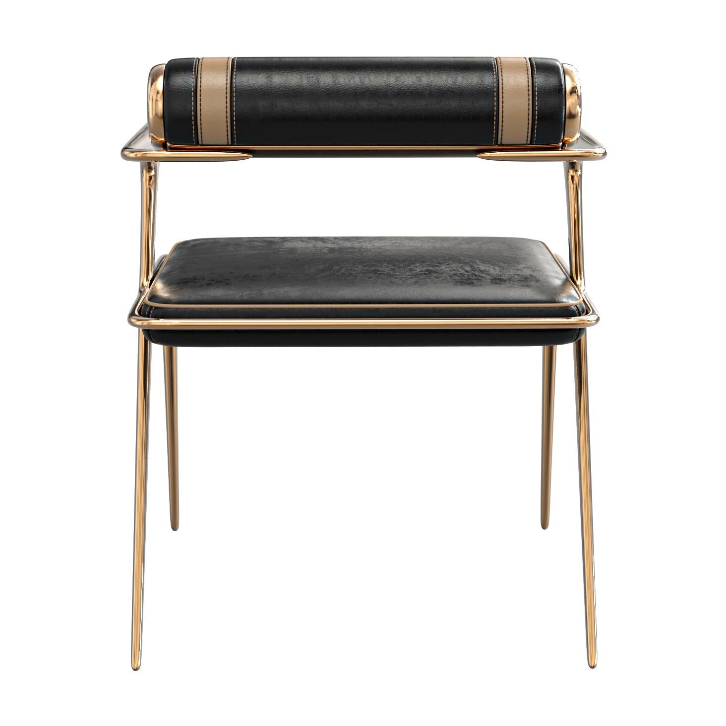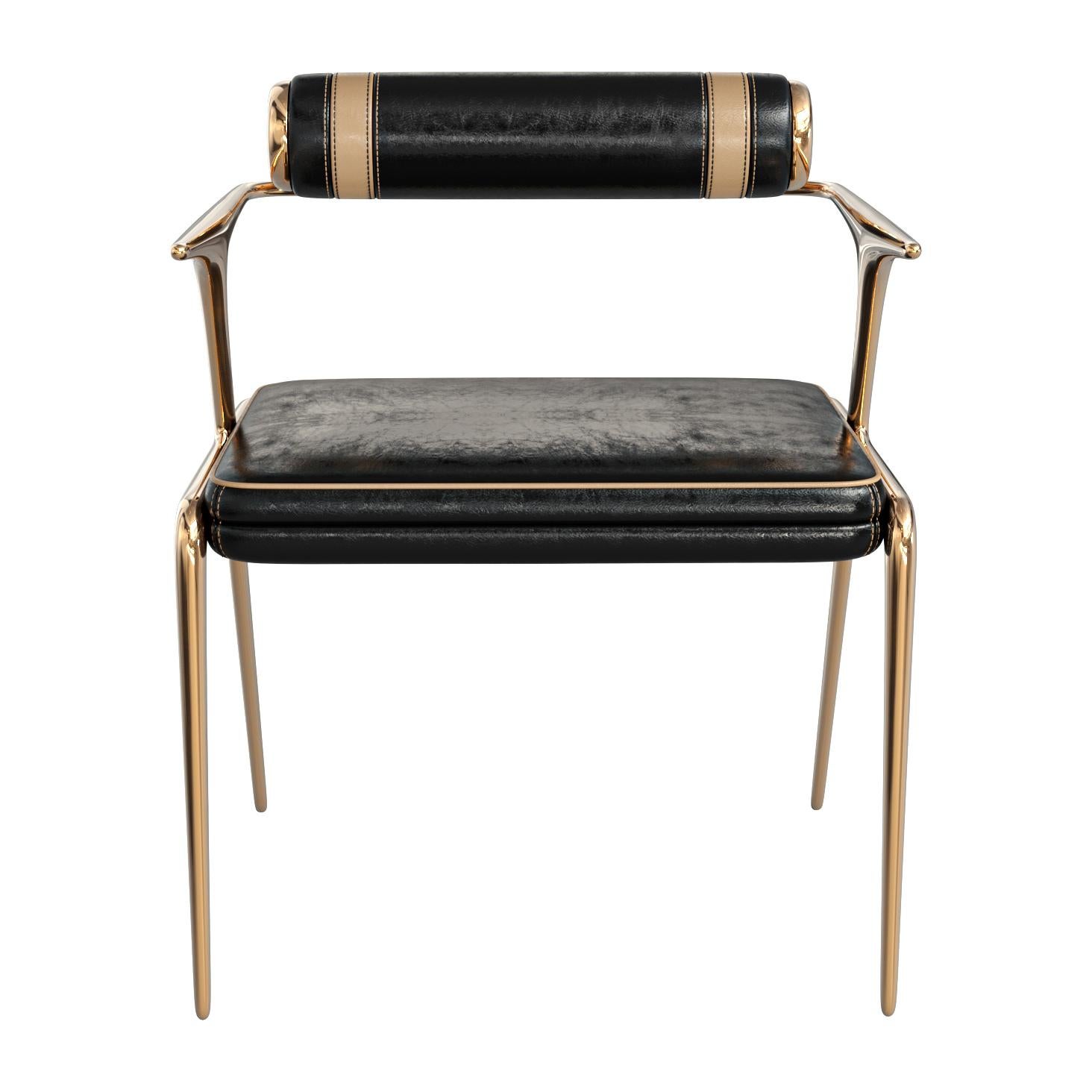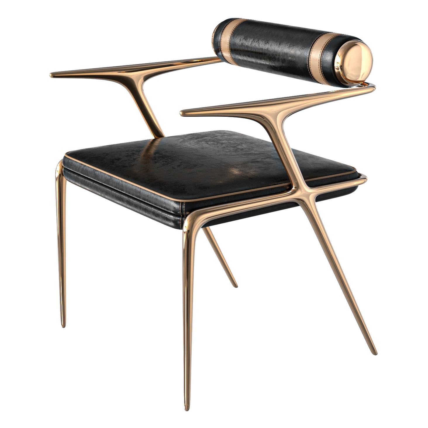 Stuhl "Grecale", mit Bronze und Edelstahl, maßgeschneidertes Leder, Istanbul