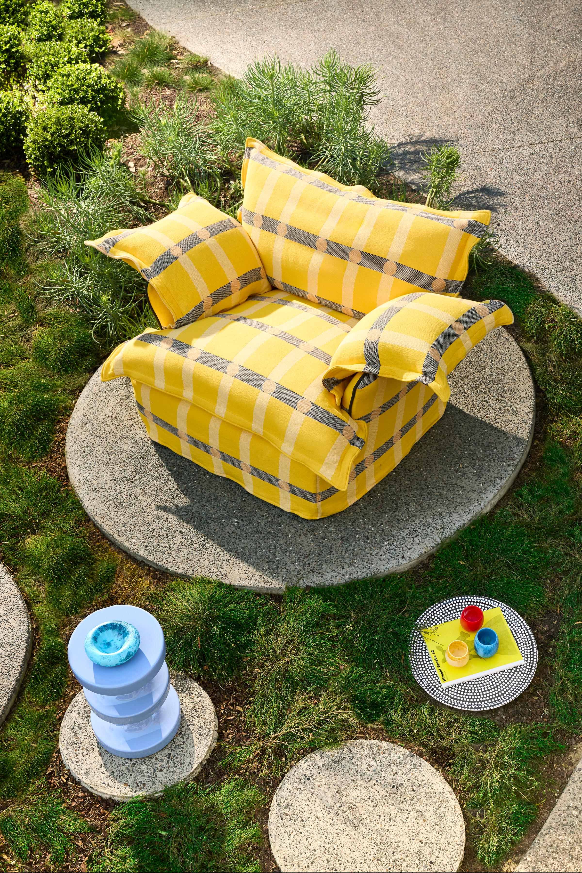 Der Ausgangspunkt ist der Sessel selbst - dieses unwahrscheinlich großzügige Möbelstück wird oft als der bequemste Sessel der Welt bezeichnet. Die Leute kaufen nicht einfach einen Maker & Son-Stuhl, sie behalten ihn, sie leben mit ihm, sie teilen ihn. Deshalb wirkt die Möglichkeit, seine Haut zu erneuern, den Bezug zu wechseln, ohne den Stuhl zu wechseln, wie eine kleine Revolution. Dauerhaftigkeit und Neuerfindung können in der Tat nebeneinander bestehen.