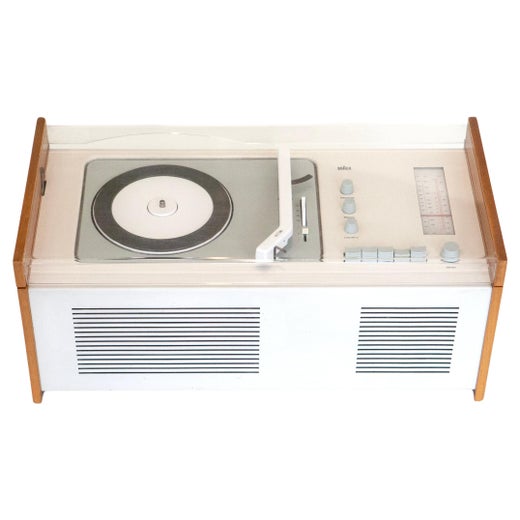 Zu den kultigsten Entwürfen von Rams gehört der SK 4 Phonograph und Radio, der 1956 entwickelt wurde und ein kompaktes weißes Metallgehäuse mit einem für die damalige Zeit revolutionären transparenten Plexiglasdeckel besaß, der im Inneren einfache graue Bedienelemente enthielt (er erhielt den Spitznamen "Schneewittchensarg"). Aber es ist das T3 Kofferradio aus dem Jahr 1958, das die Designliebhaber heute am meisten begeistert: Ein weißer, rechteckiger Kasten mit einem perforierten Quadrat für den Lautsprecher und einem runden Drehknopf, der unverkennbar an den ursprünglichen iPod von Apple erinnert. (Viele Leute bemerken auch, dass die Taschenrechner-App des iPhones dem Braun ET 66 Taschenrechner mit seinen kreisförmigen, farbcodierten Tasten verblüffend ähnlich sieht).