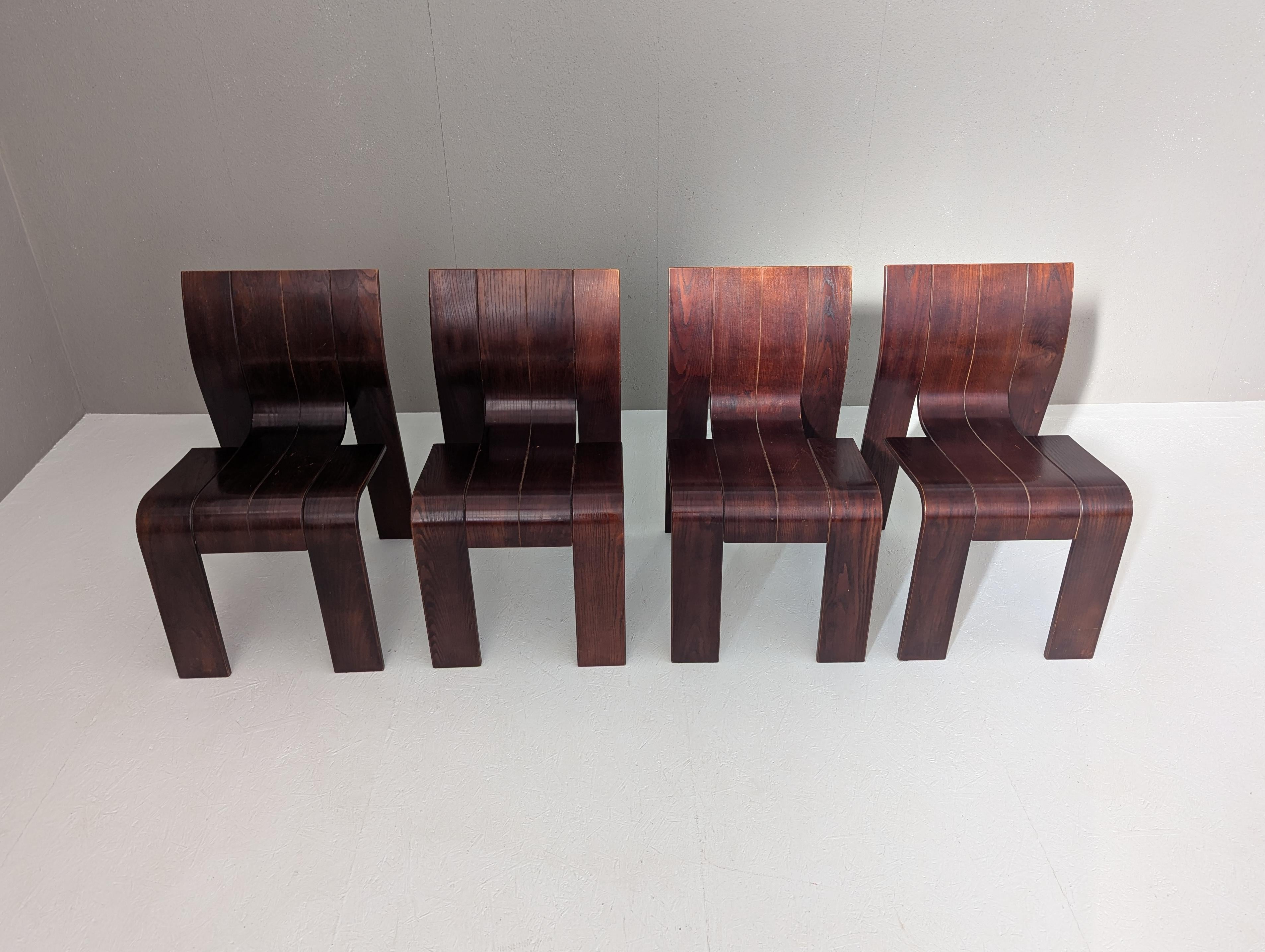Satz Sperrholz 'Strip' Stühle von Gijs Bakker für Castelijn, Niederlande, 1970er