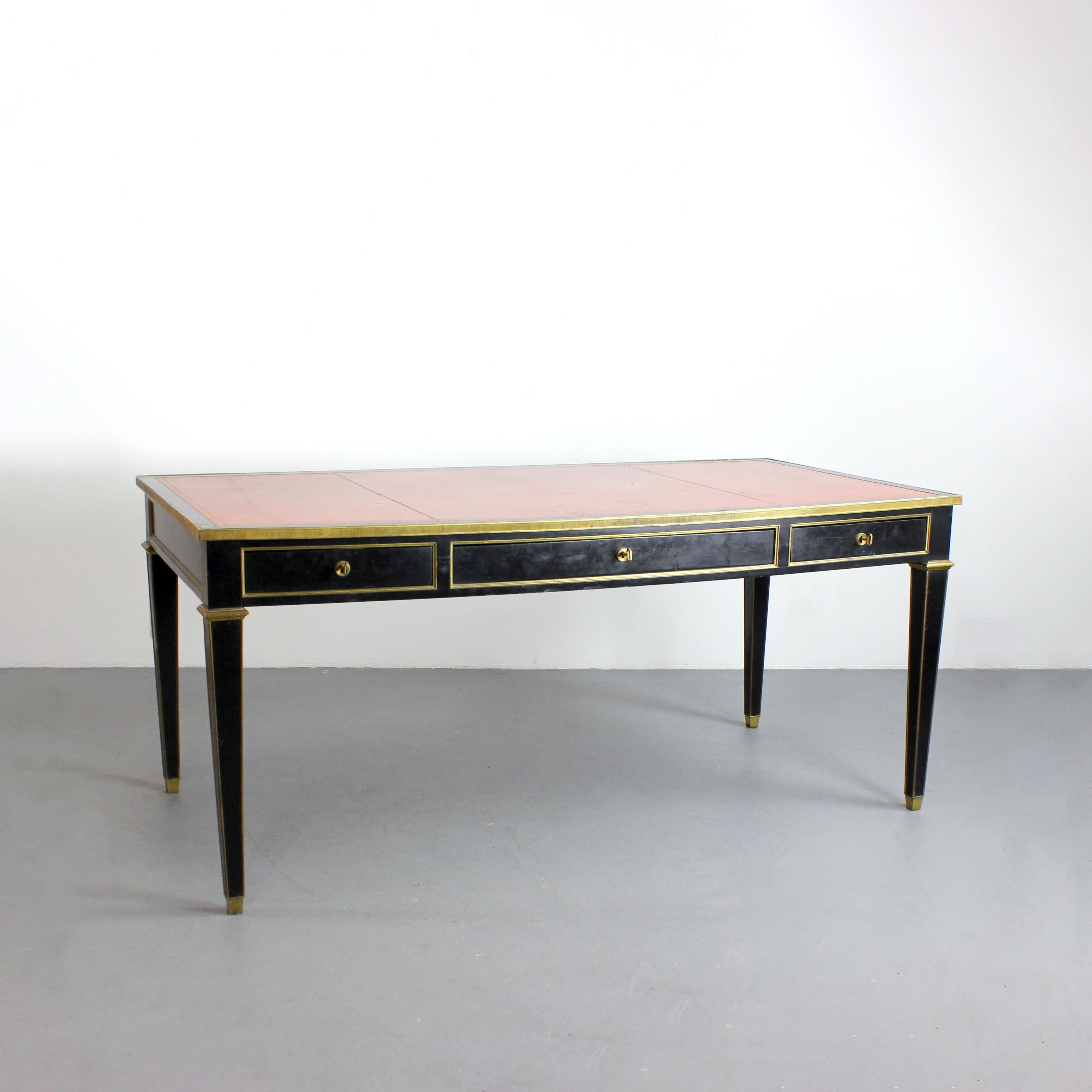 Objekte ähnlich wie Schreibtisch "Bureau Plat" aus ebonisiertem Holz mit vergoldeten Messingbeschlägen und geprägtem Leder