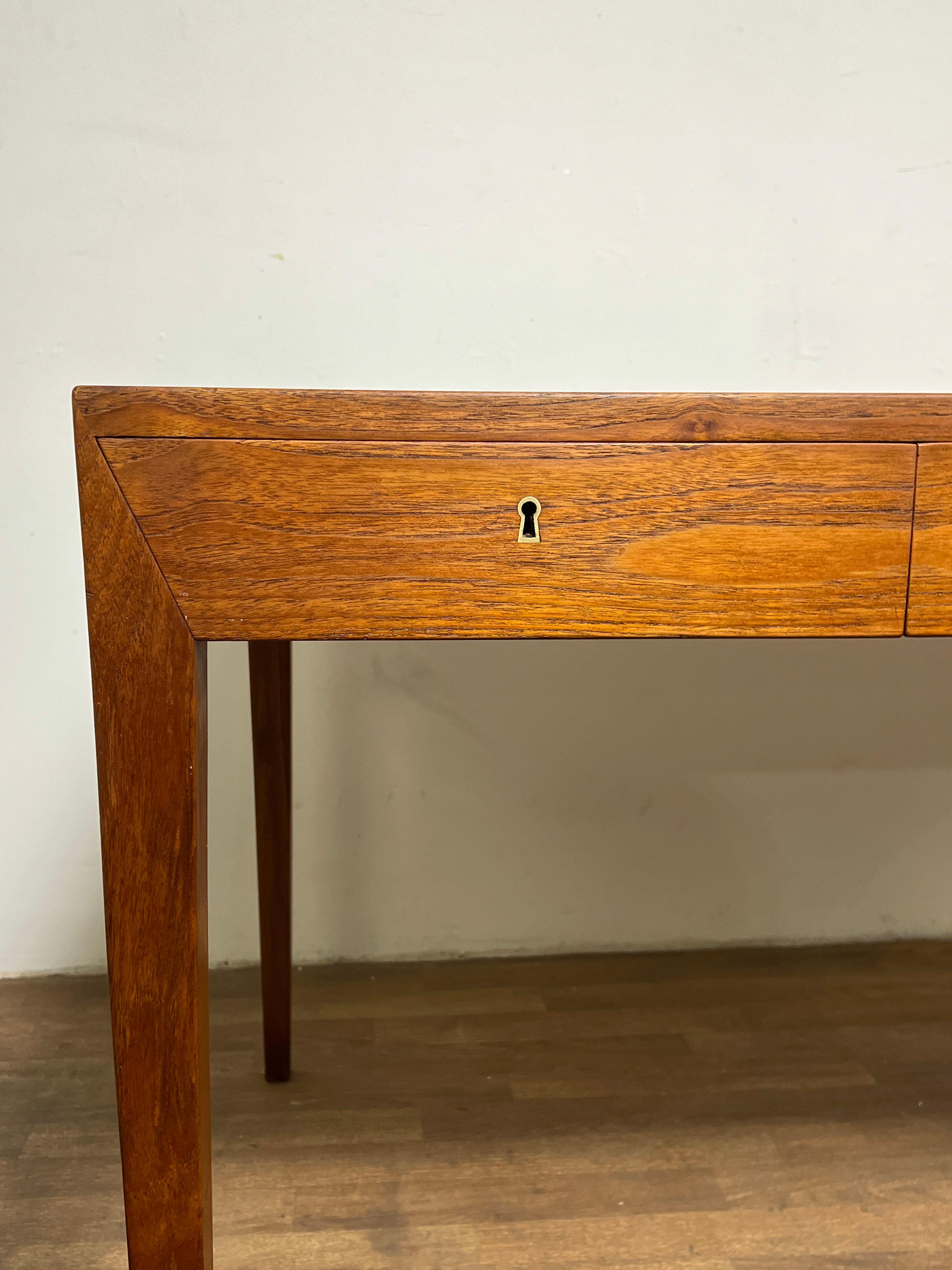 Severin Hansen Modell 36 Teakholz-Schreibtisch mit vier Schubladen für Haslev, Dänemark, 1960er Jahre. Jede Schublade ist leichtgängig und kann mit einem messingfarbenen Schlüssel ab...